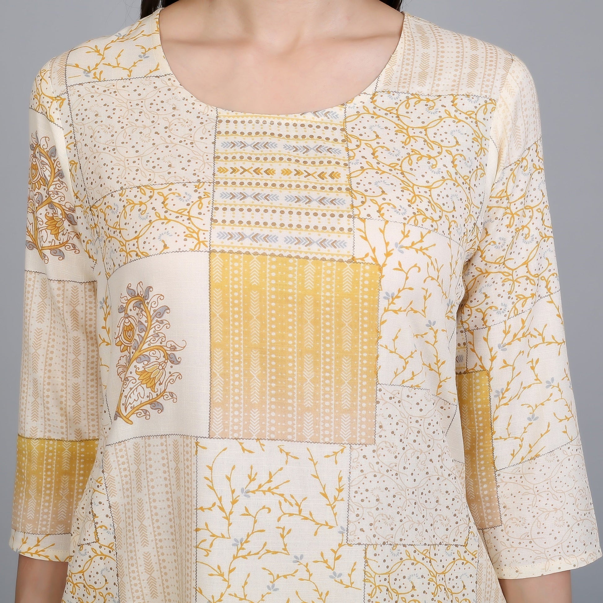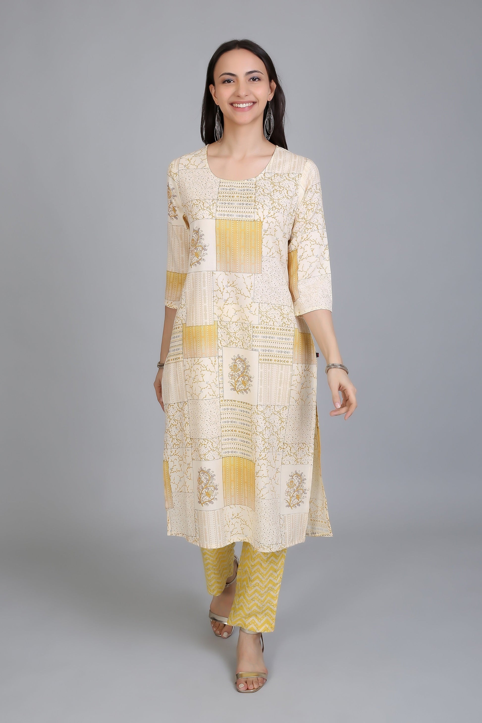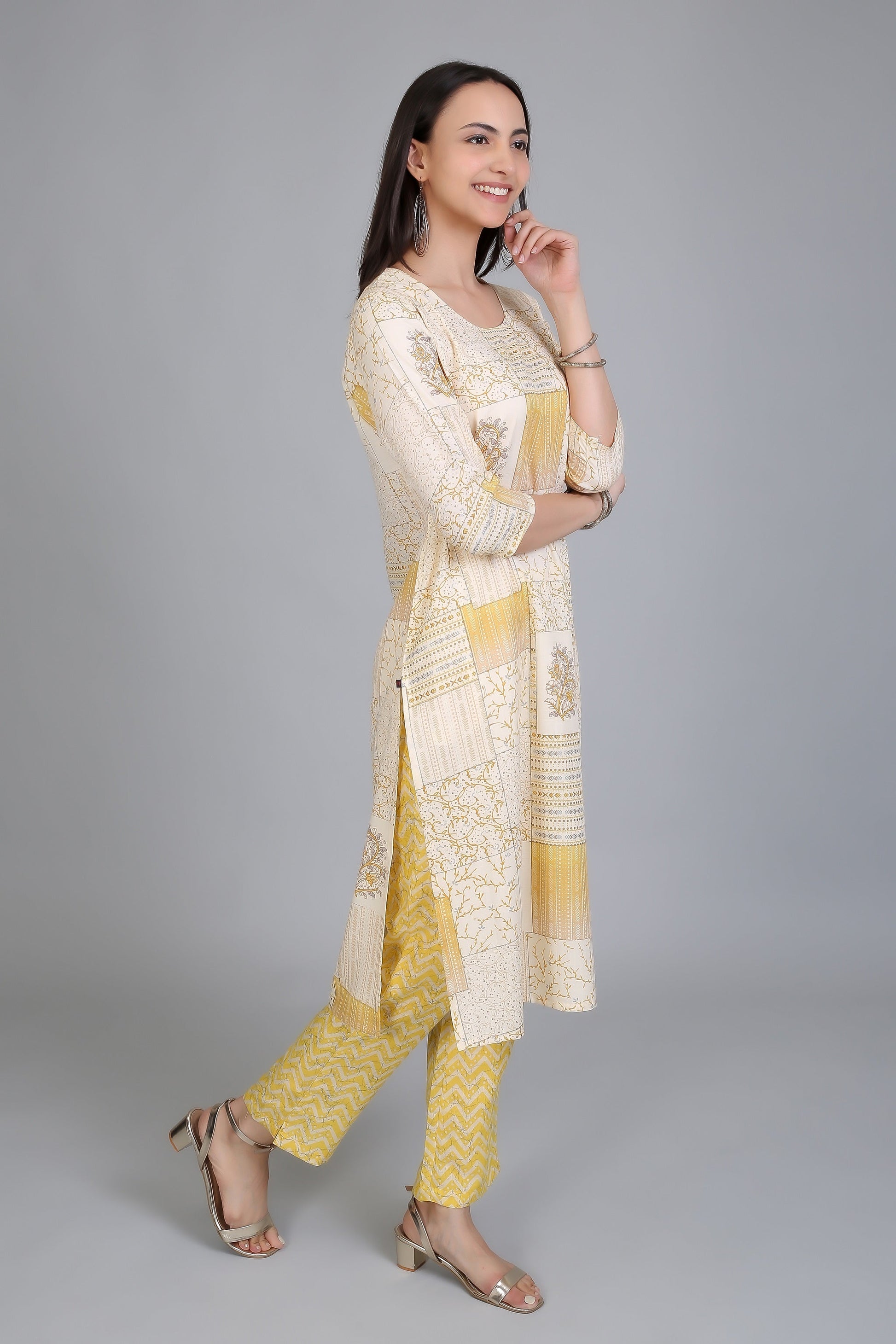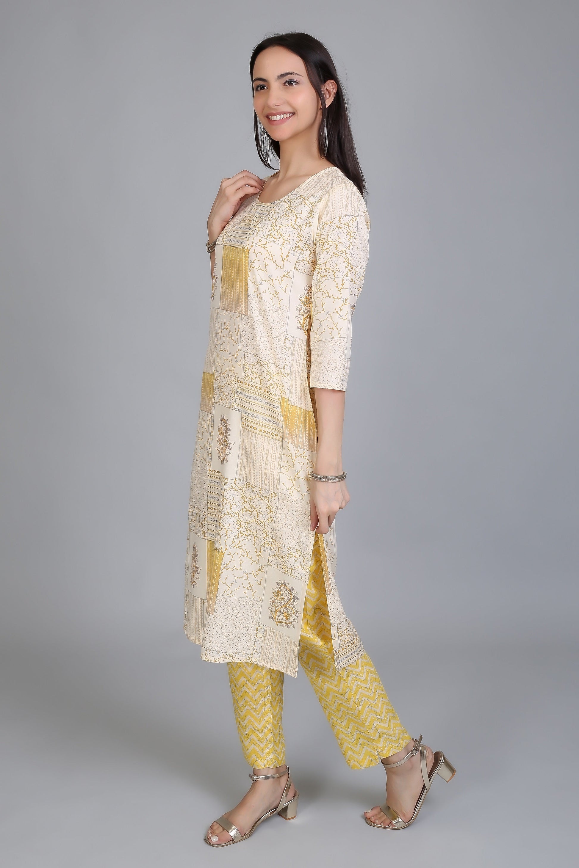 VAPPS Stylish Cotton Printed Kurtas with Pants for Women and Girls -Yellow
