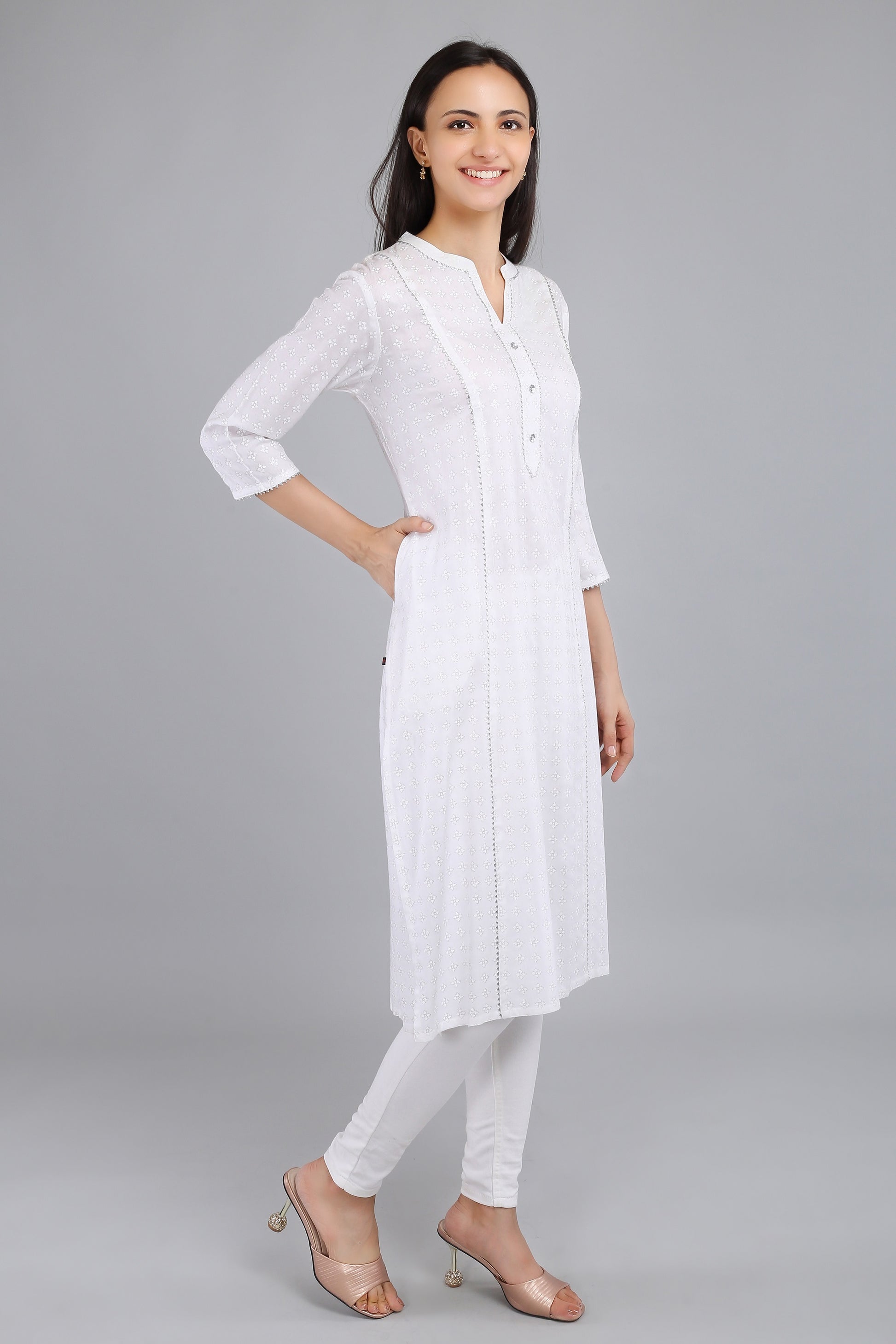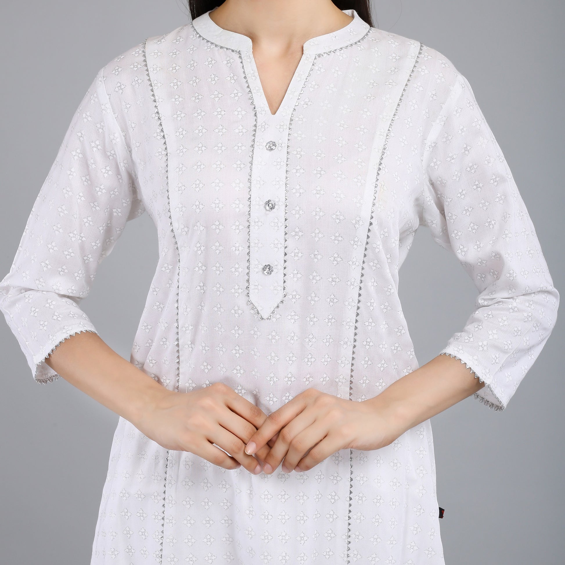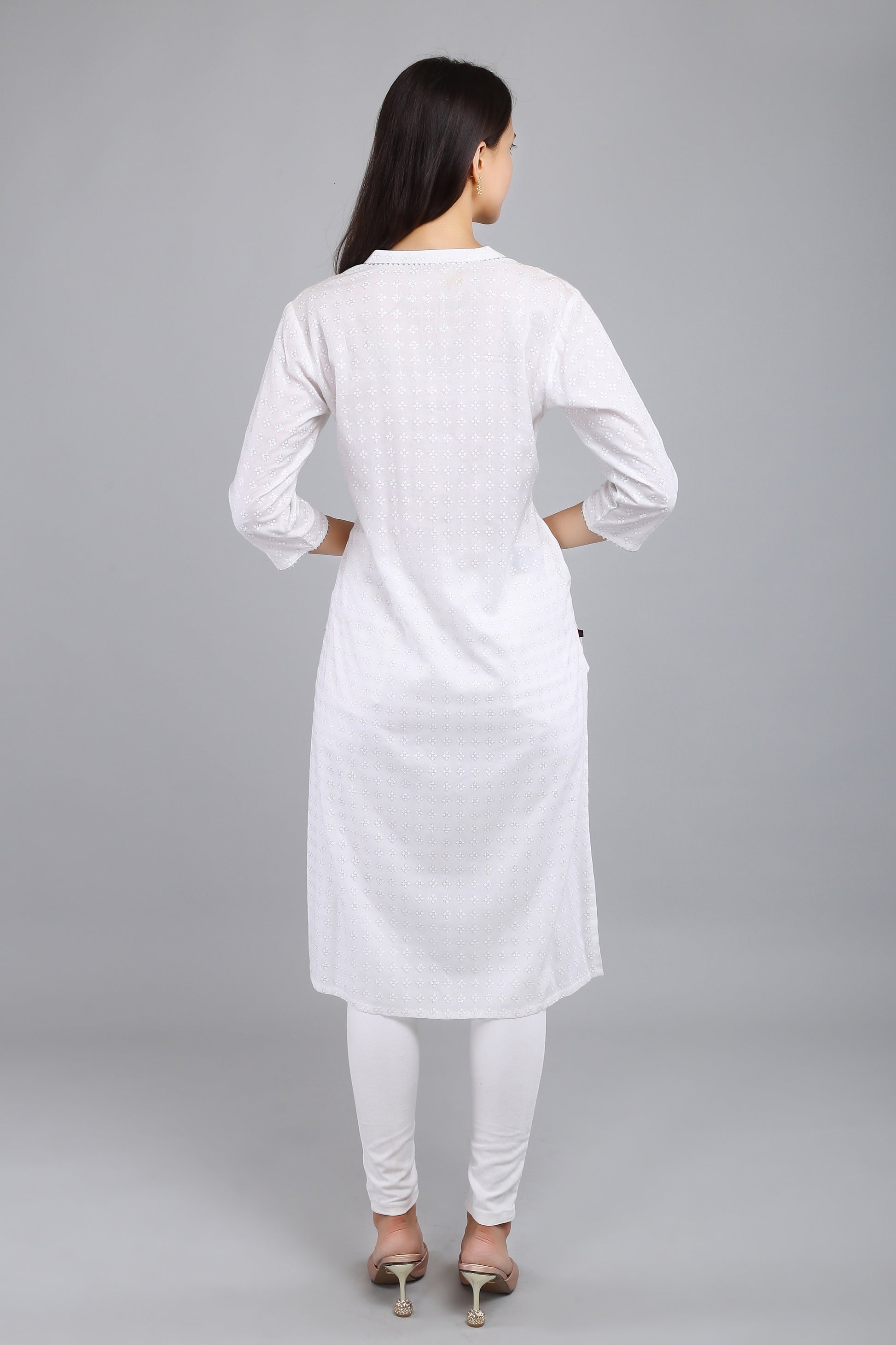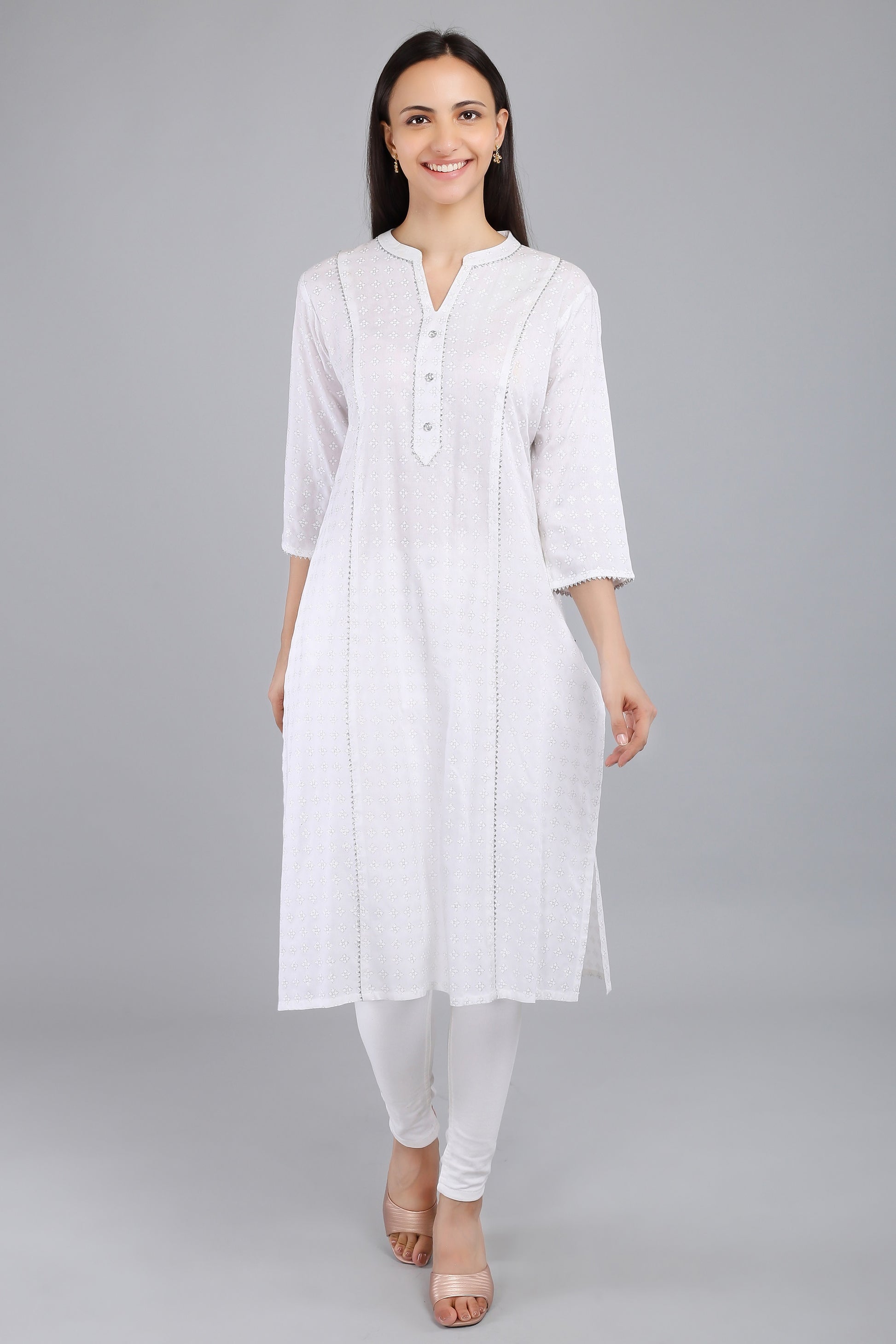 VAPPS Printed Rayon Floral Print Sequin Kurta - White