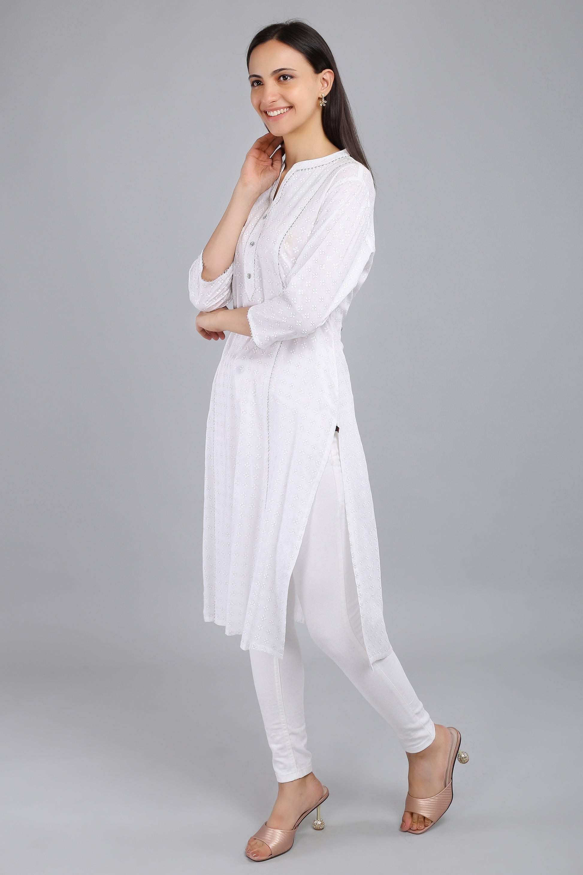 The A-line silhouette of the kurta flares out gracefully from the waist, providing a comfortable fit for all body types. The side slits add a touch of elegance and sophistication to the kurta, while also allowing for ease of movement.