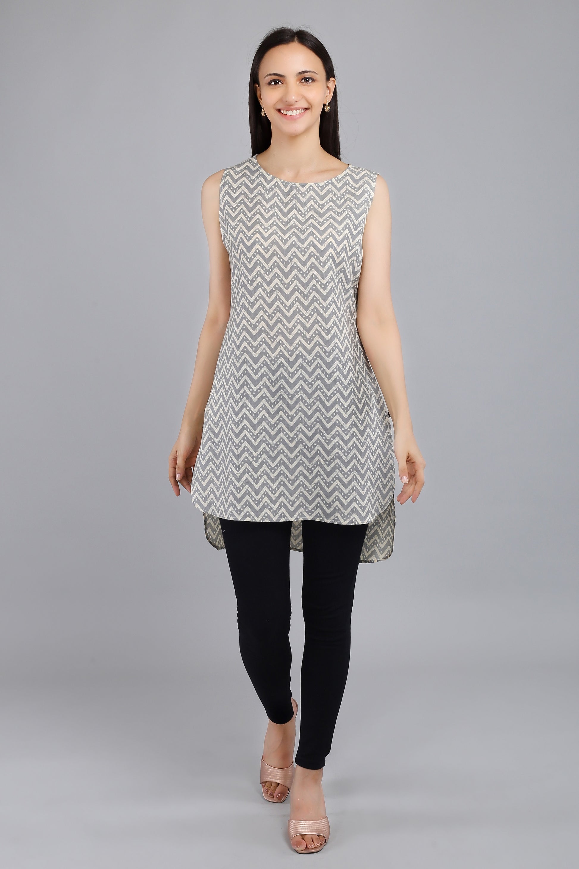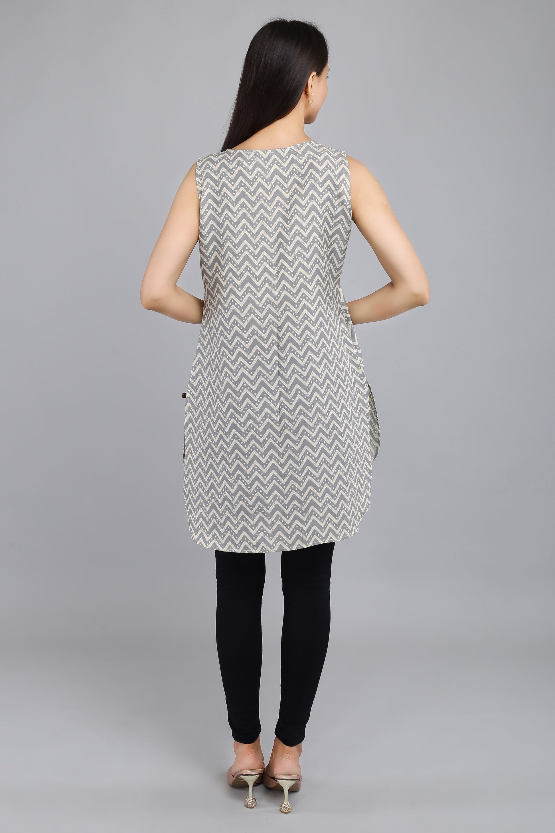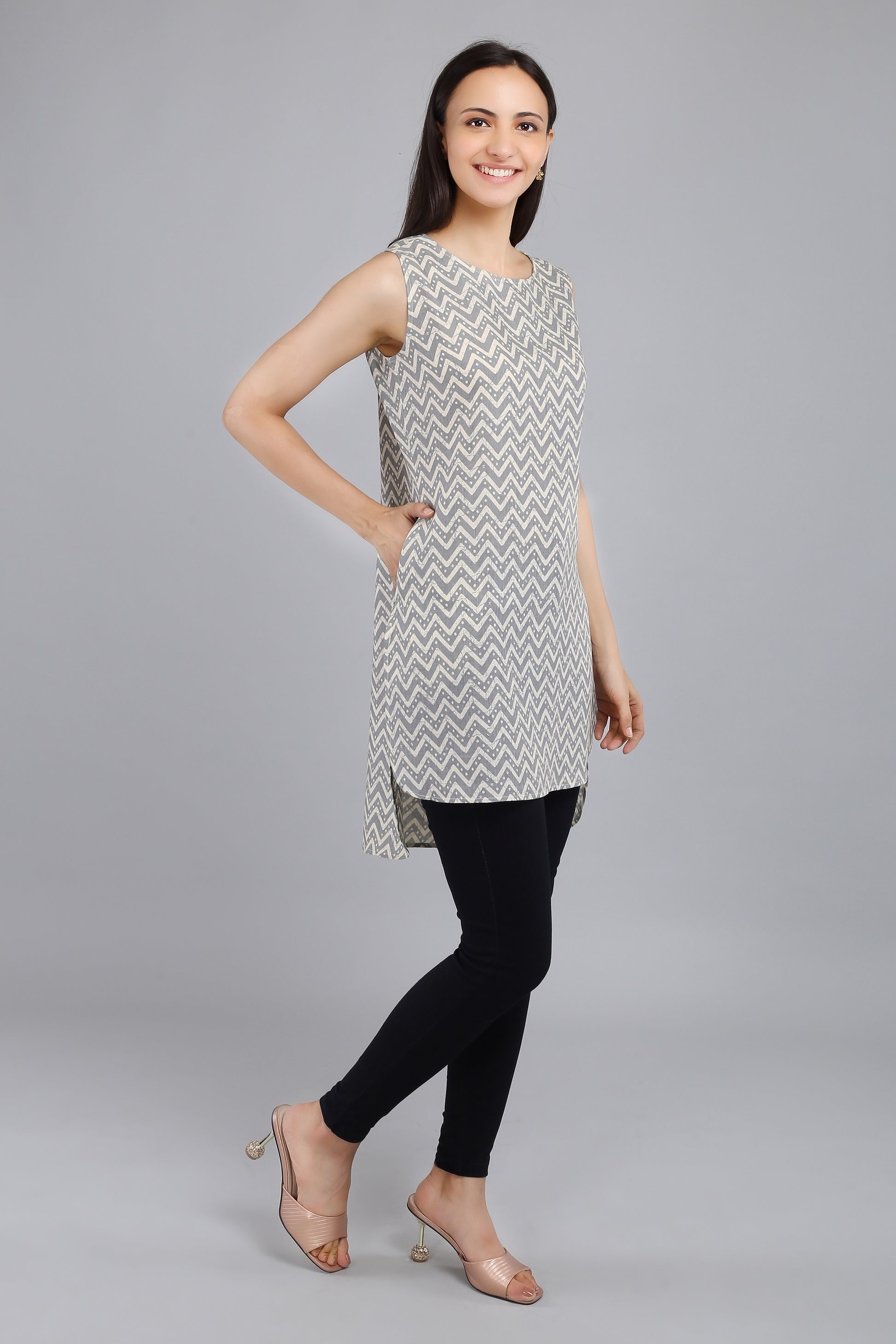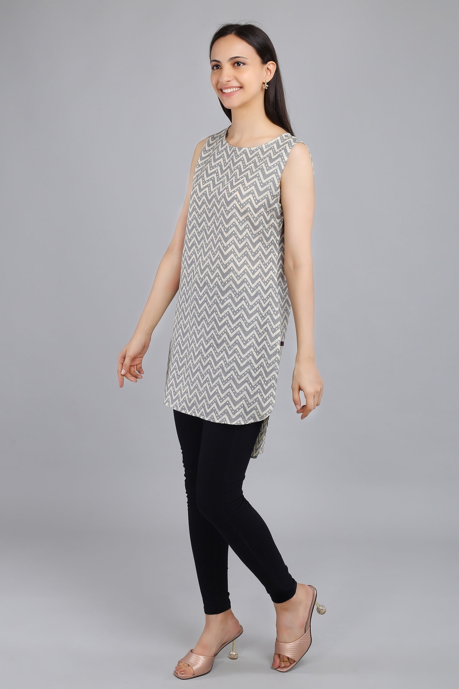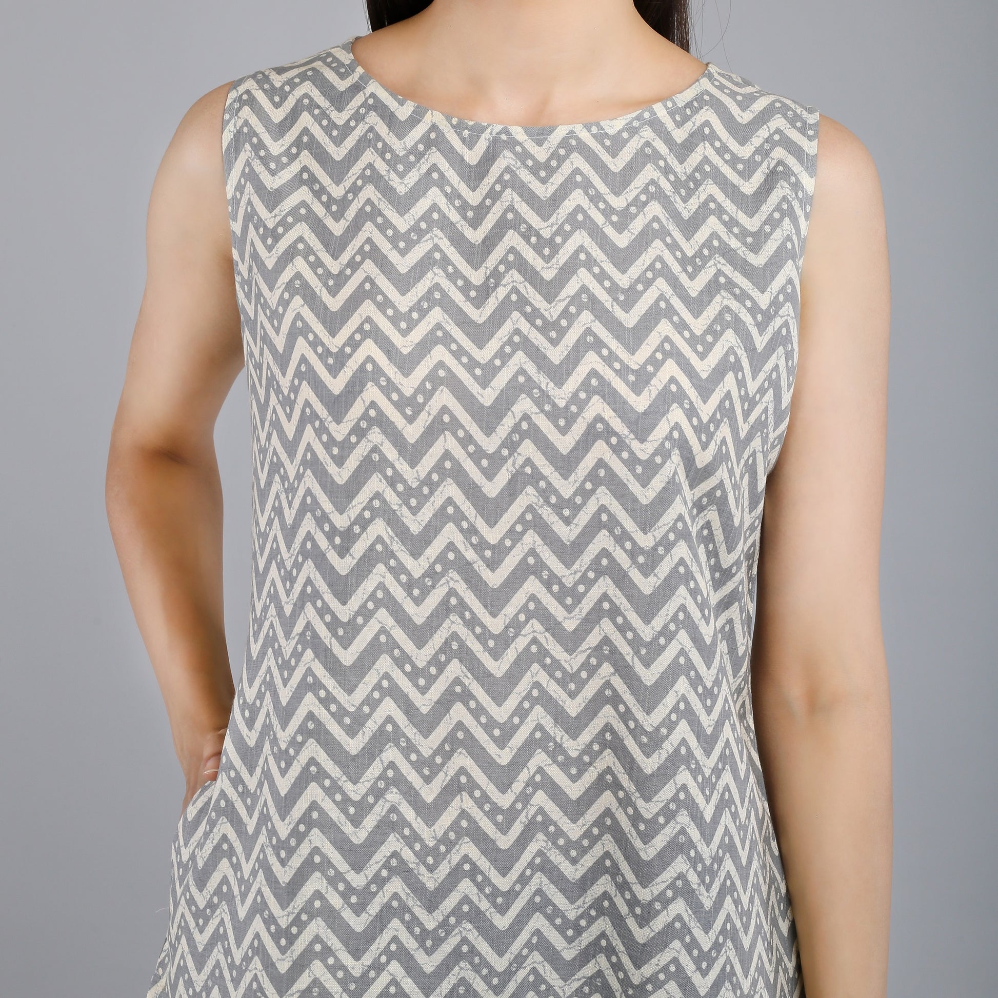 VAPPS Cotton Zig Zag Print Sleeveless Tunic - Grey