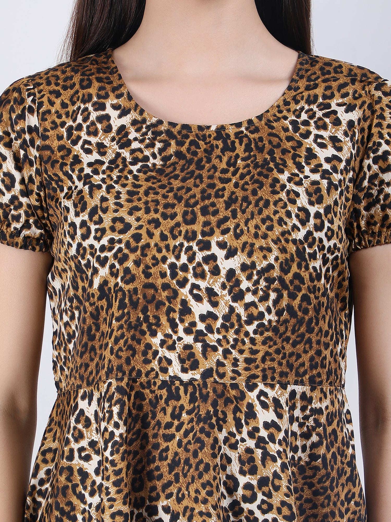 VAPPS Tiger / Panther Print Crepe Round Neck Top