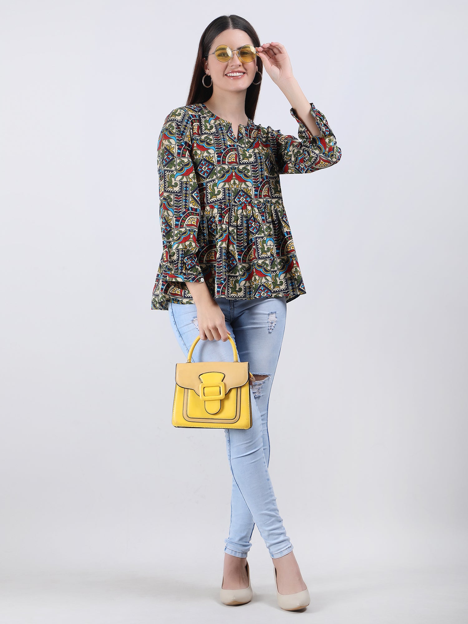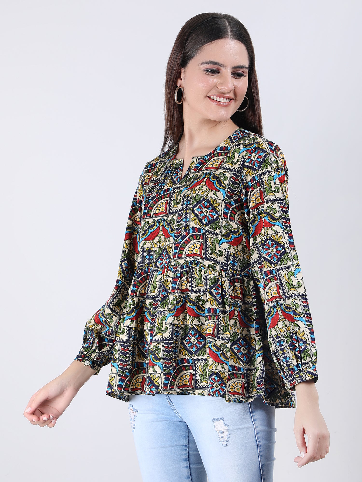 Overall, this printed top is a must-have in any fashion-conscious woman's wardrobe. With its beautiful print, comfortable fit, and high-quality fabric, it's sure to become a favourite for years to come.
