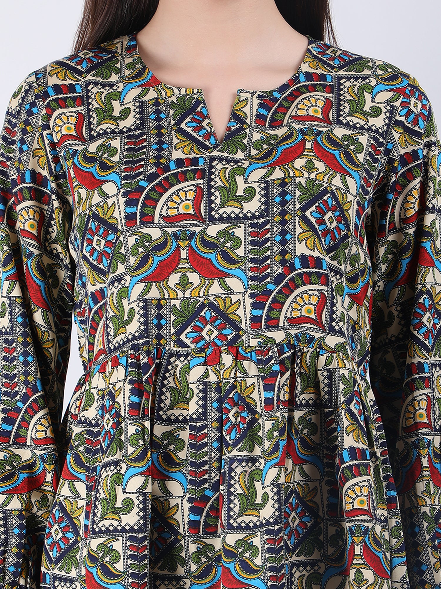 VAPPS Madhubani Print Crepe Round Neck Top