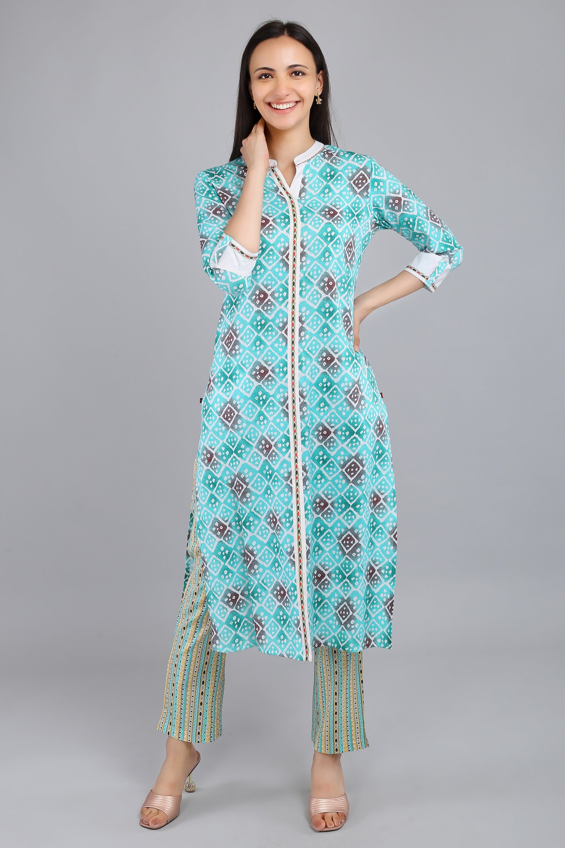VAPPS - your go-to destination for fashionable and trendy women's clothing! Our latest addition to our collection is the Cotton Printed Kurta with Pants, perfect for any occasion.