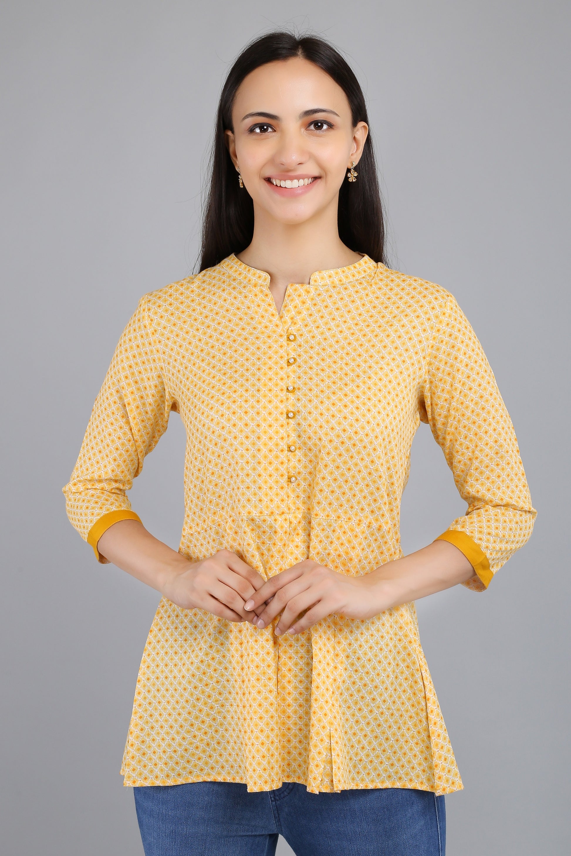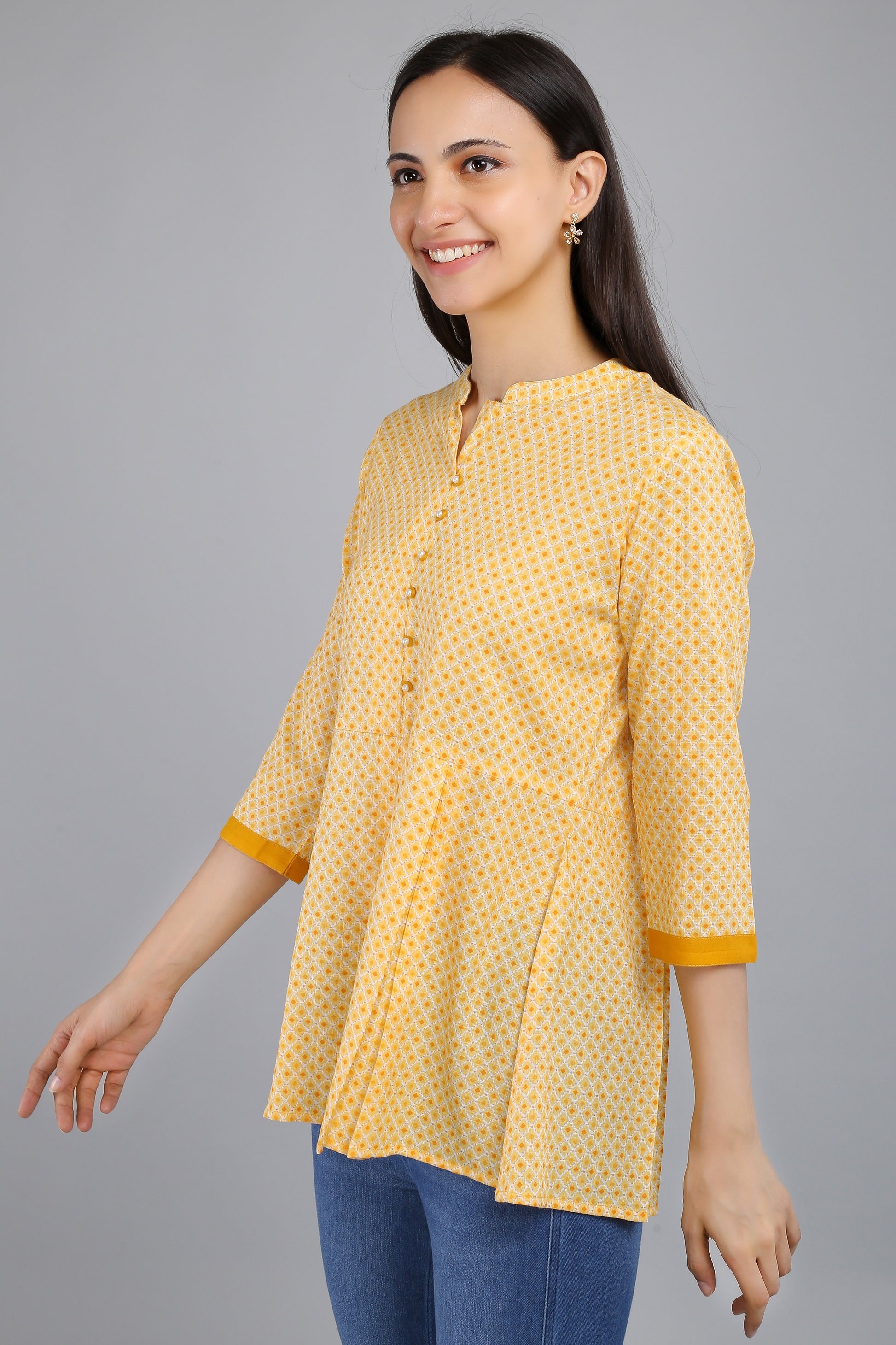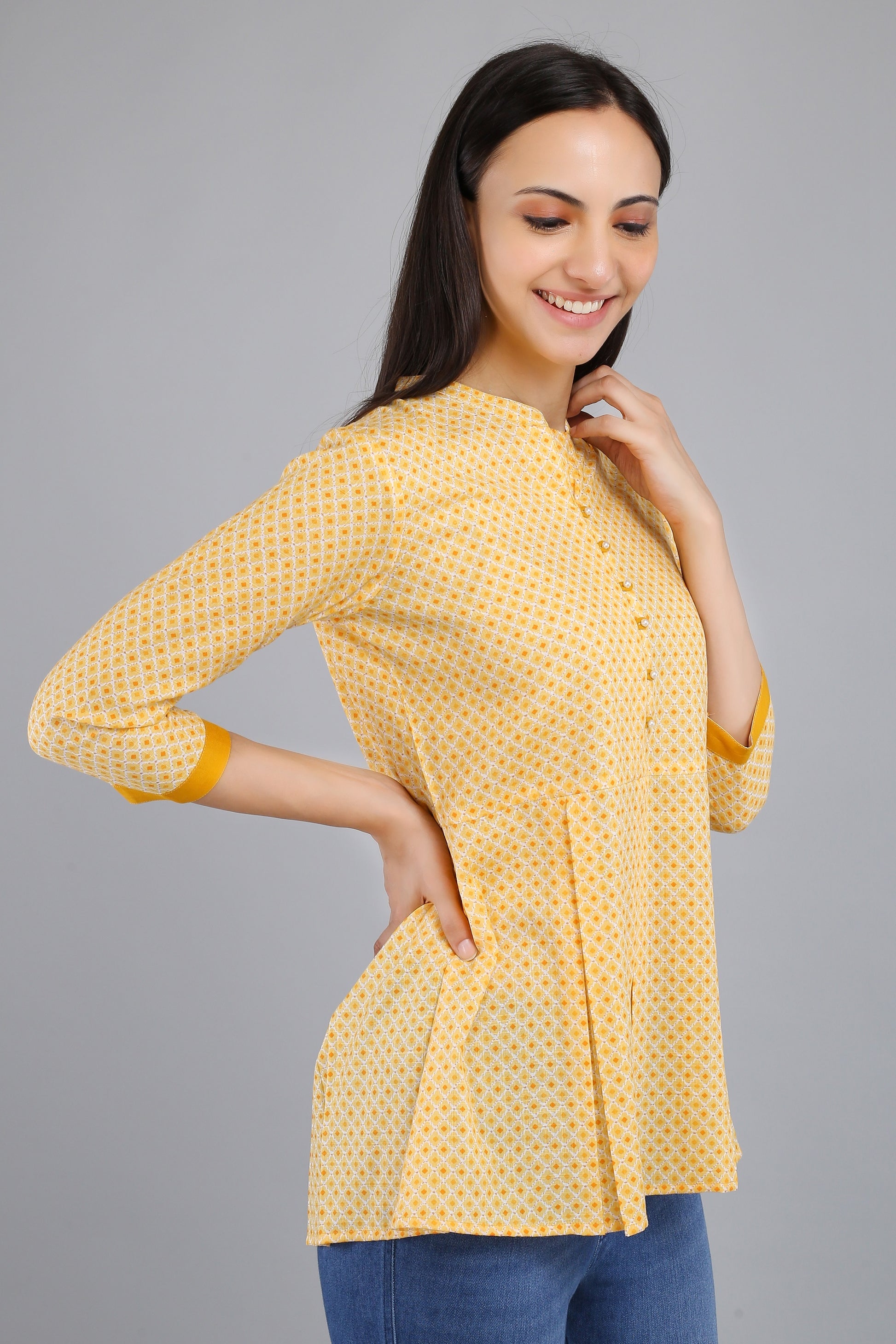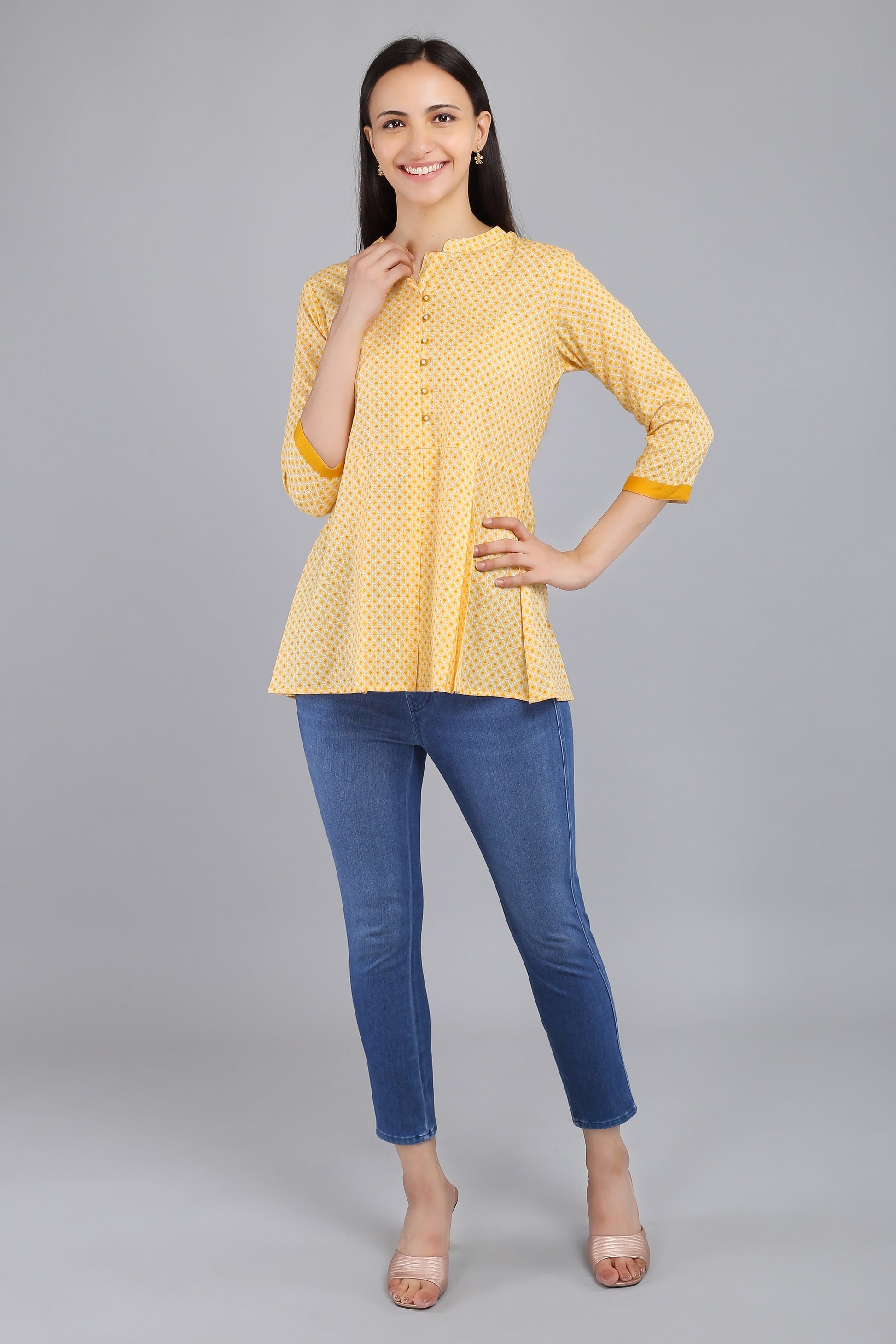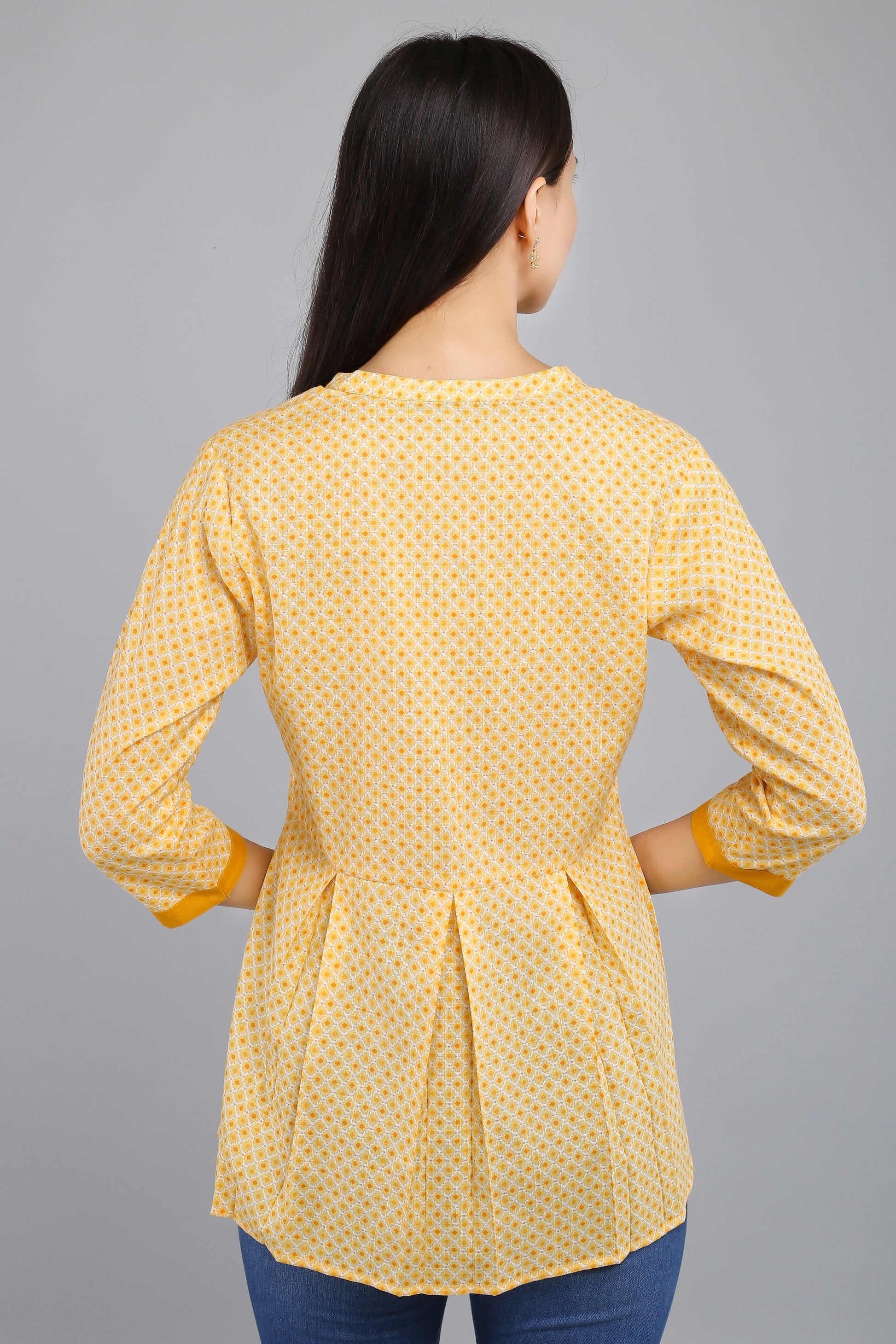 VAPPS Printed Cotton Flared Tunic - Yellow