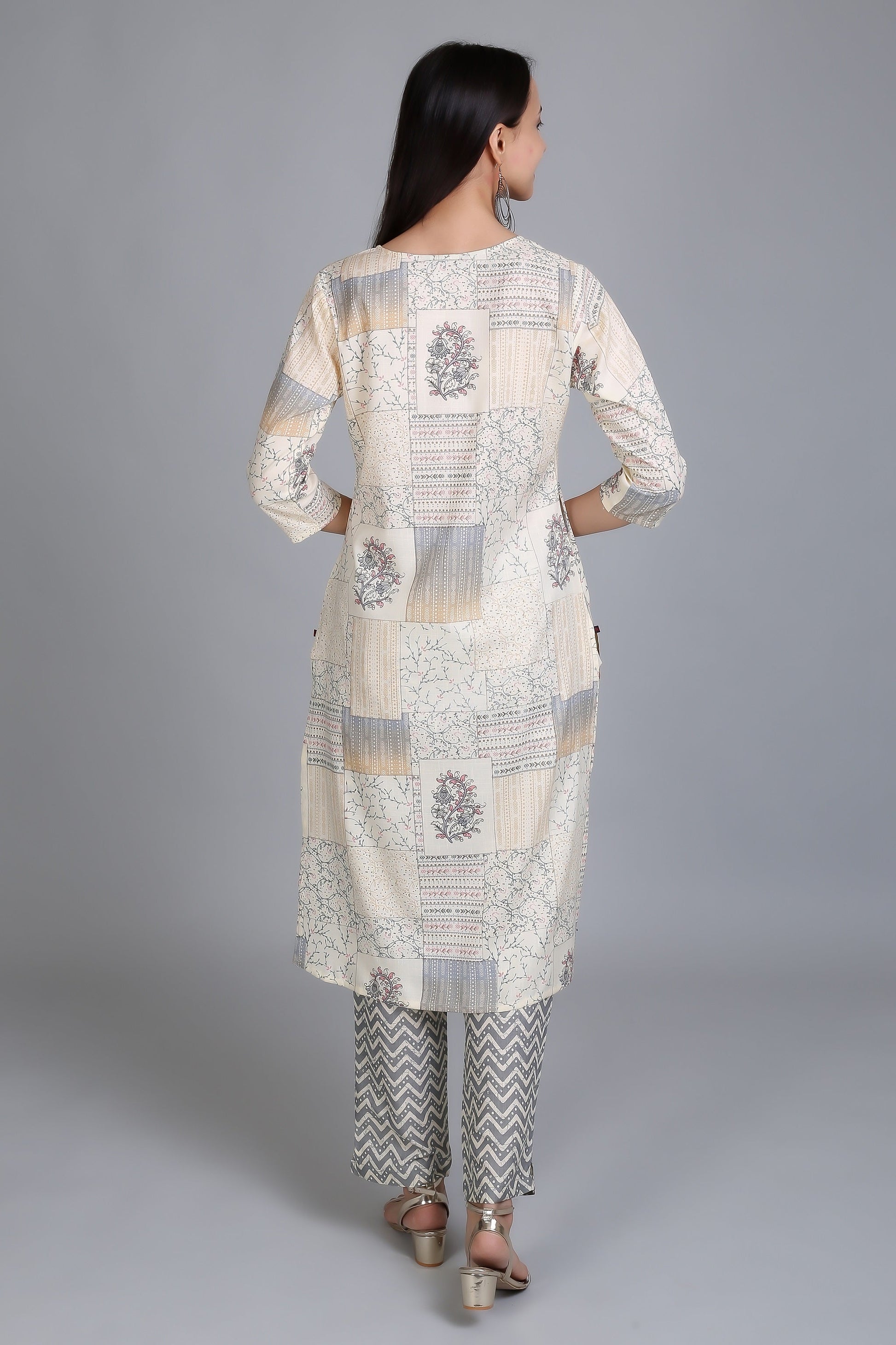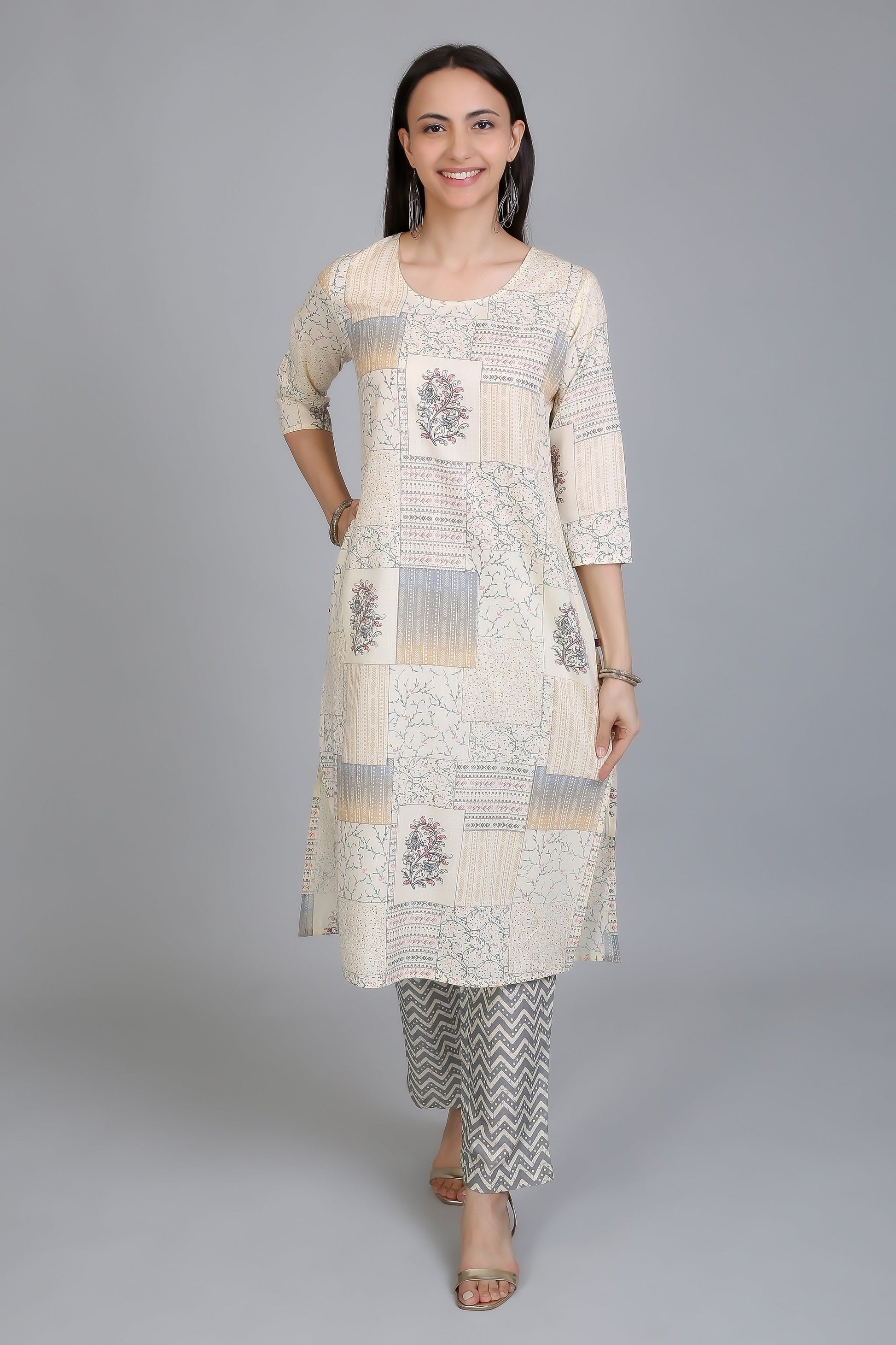 VAPPS Stylish Cotton Printed Kurtas with Pants for Women and Girls -Grey