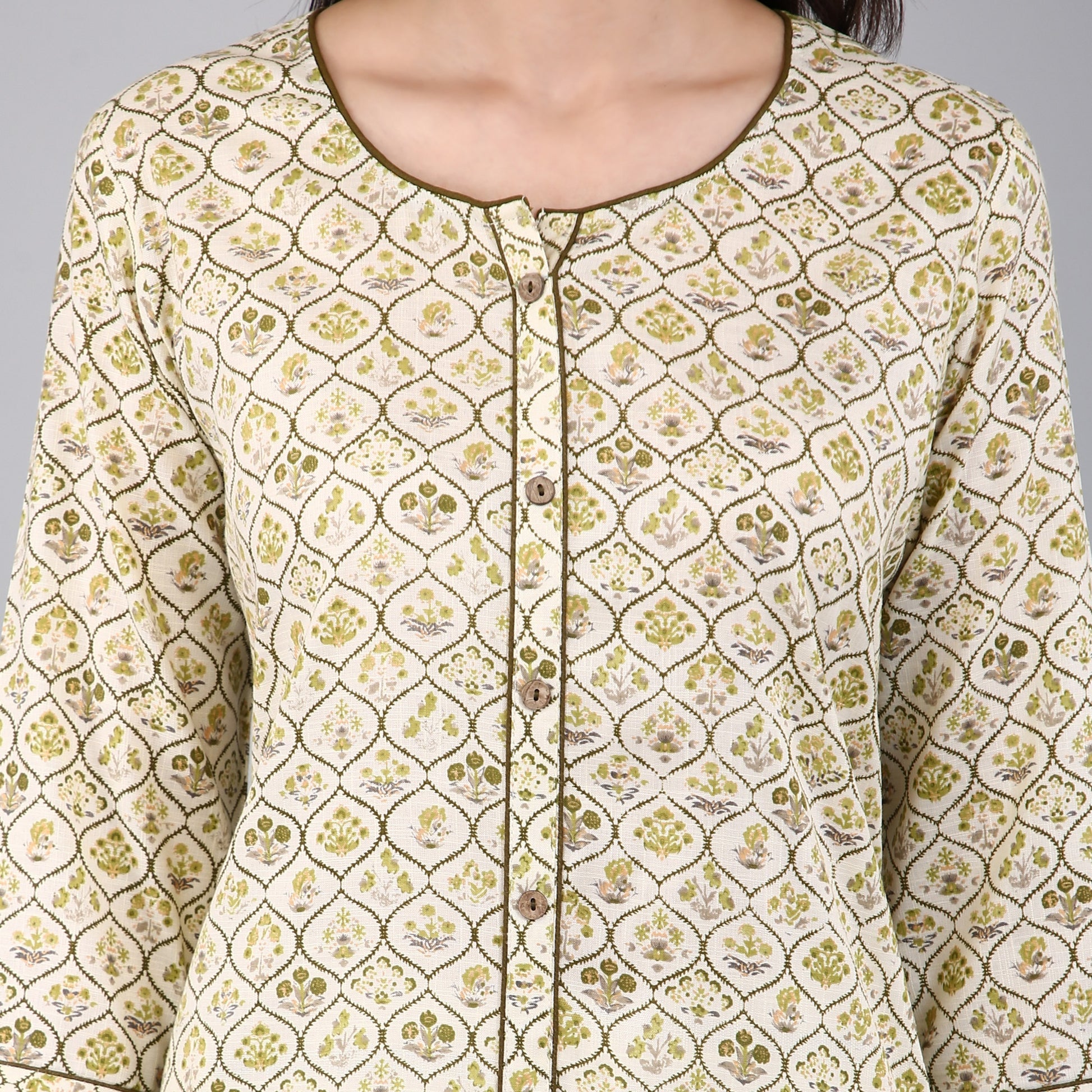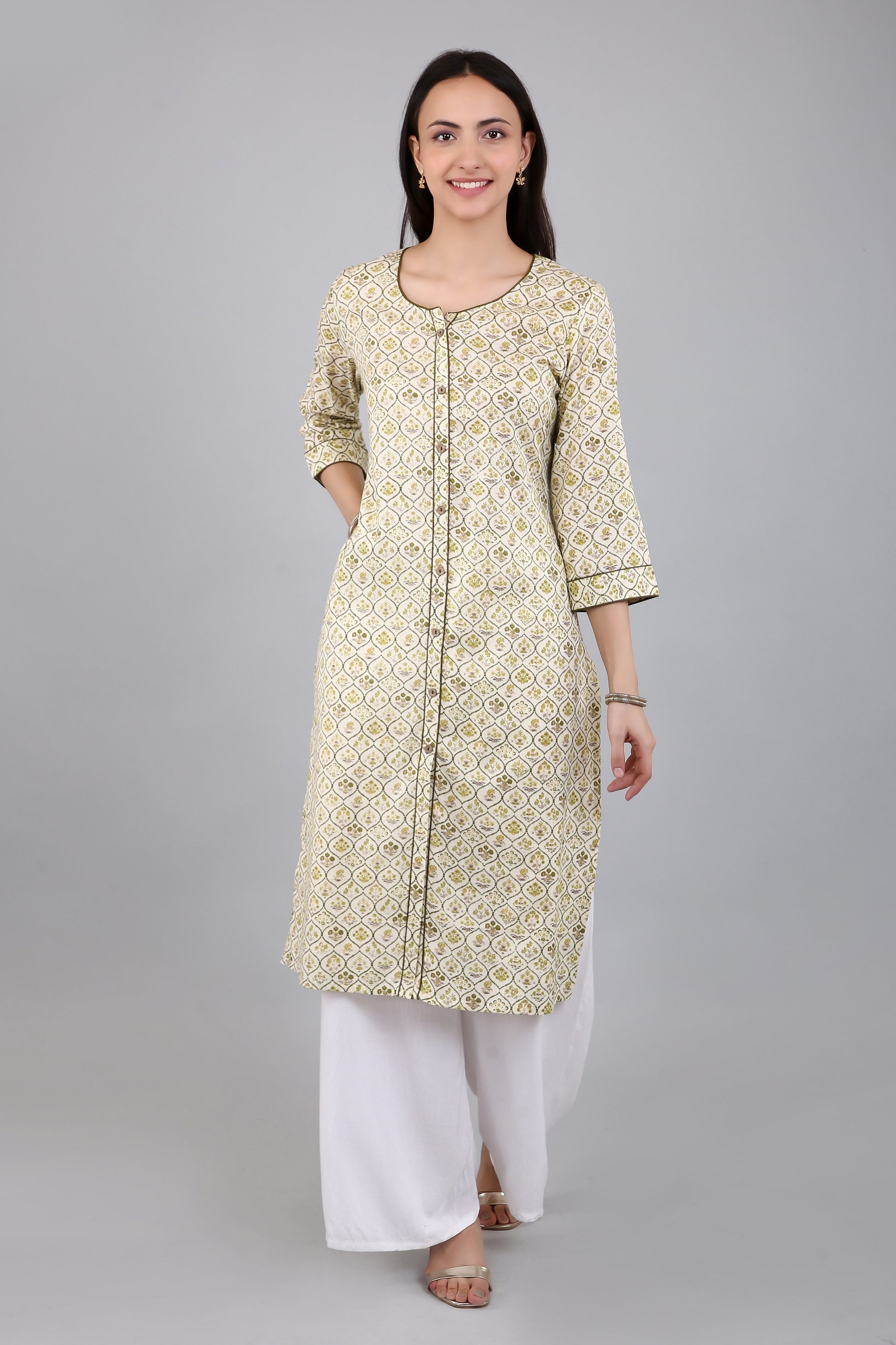 VAPPS Cotton A Line Printed Kurta for Women and Girls - Green