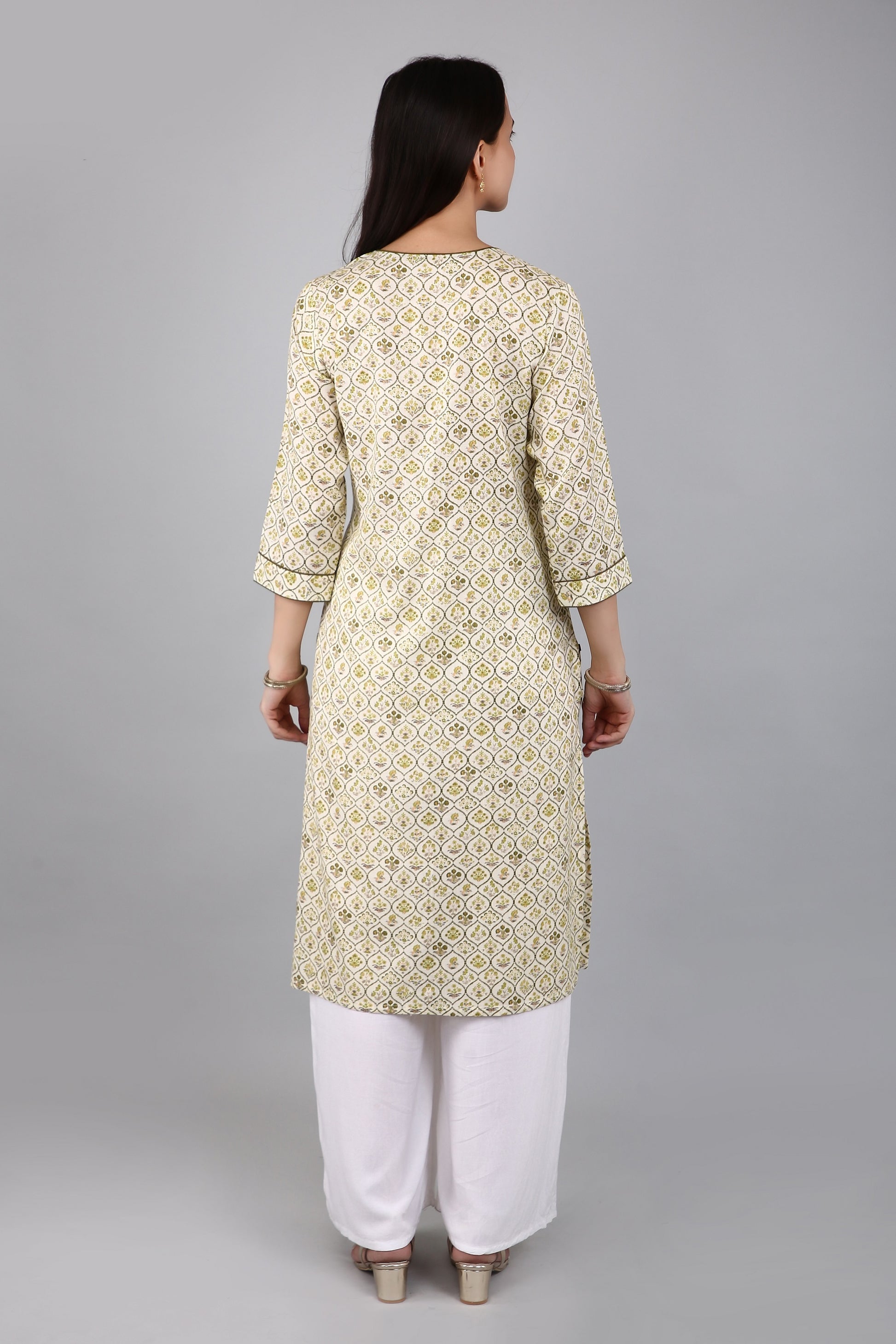 Overall, this printed kurta is a must-have in any fashion-conscious woman's wardrobe. With its beautiful print, comfortable fit, and high-quality fabric, it's sure to become a favorite for years to come.