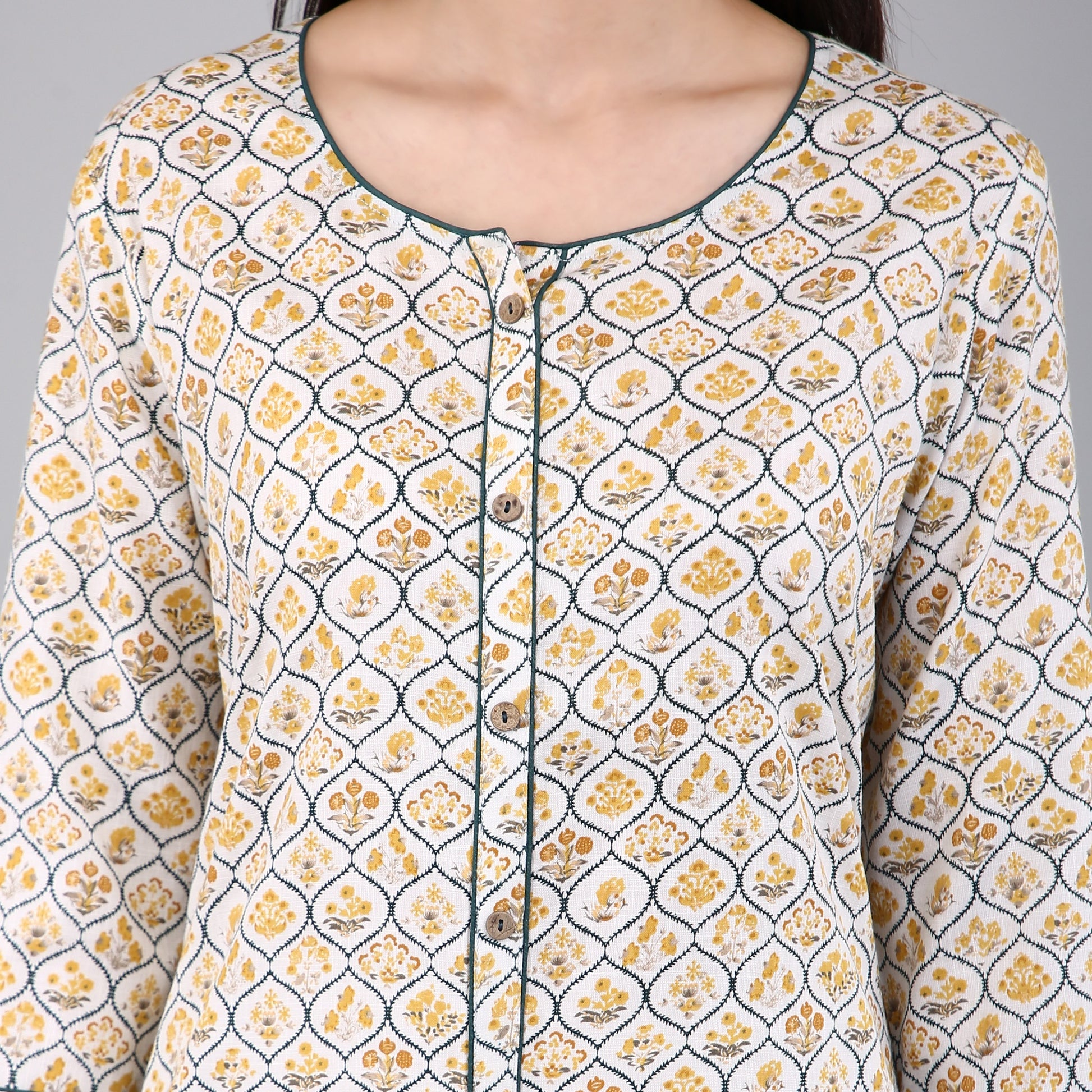 The print is intricately designed and printed onto the fabric, ensuring that the colors will not fade or bleed, even after multiple washes. The kurta is versatile and can be dressed up or down, making it perfect for any occasion.