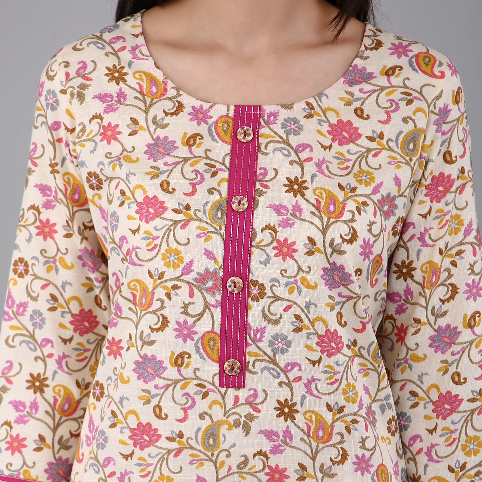 VAPPS Cotton Floral Printed Kurta for Women and Girls - Pink