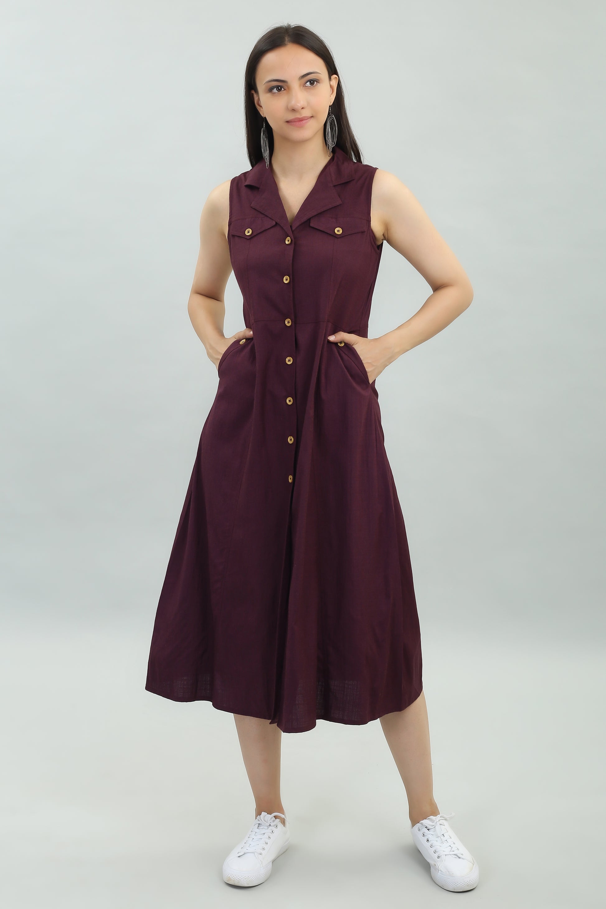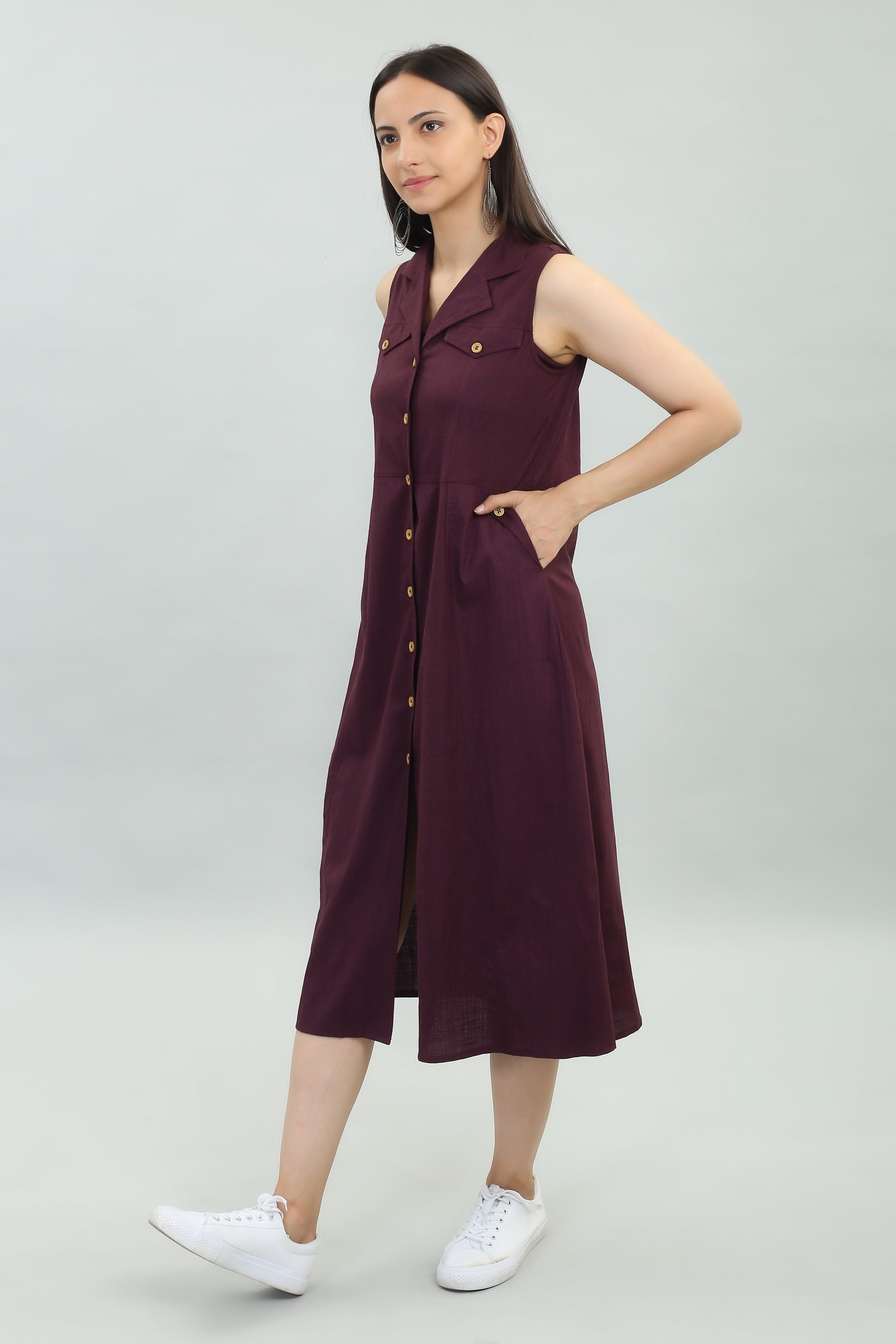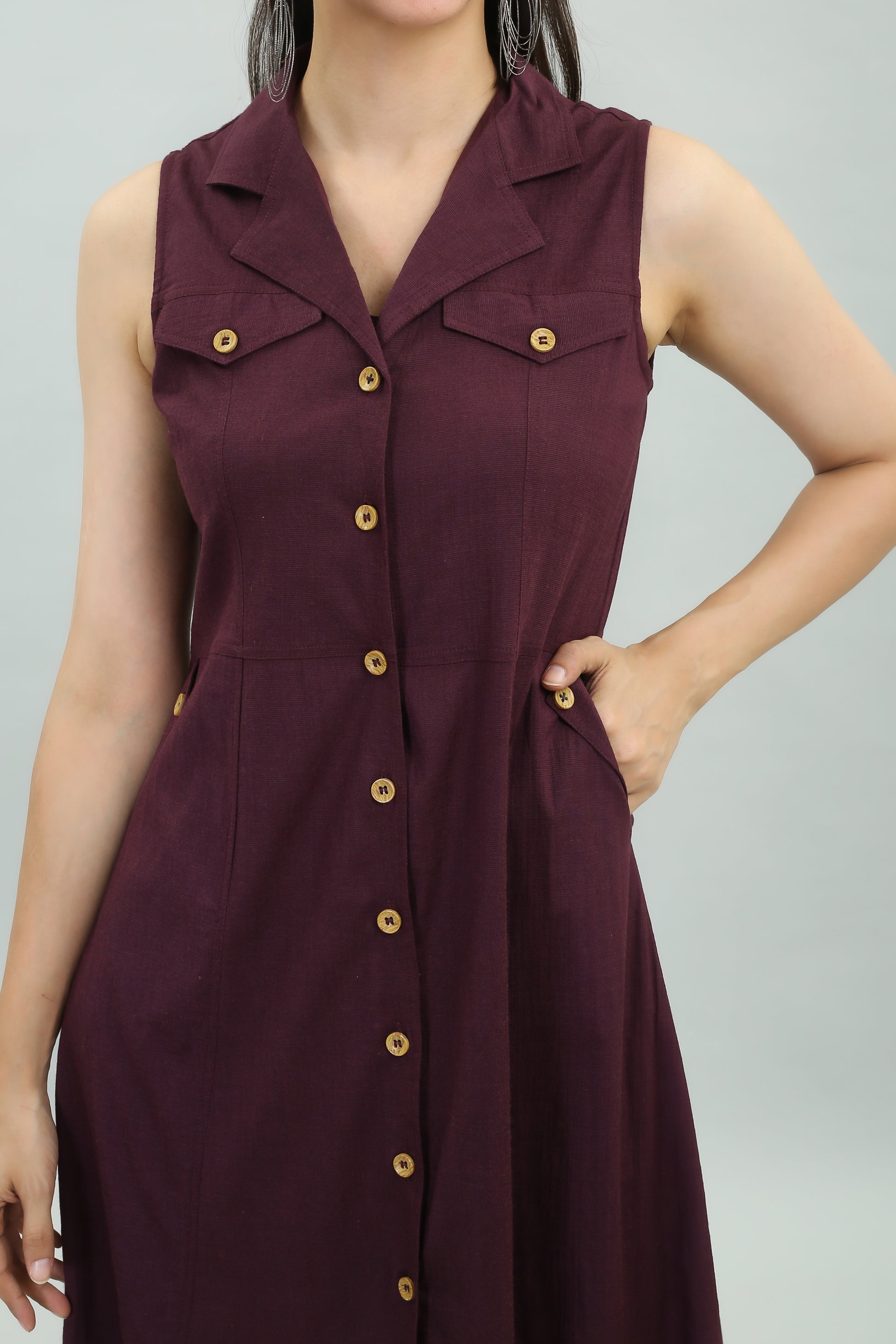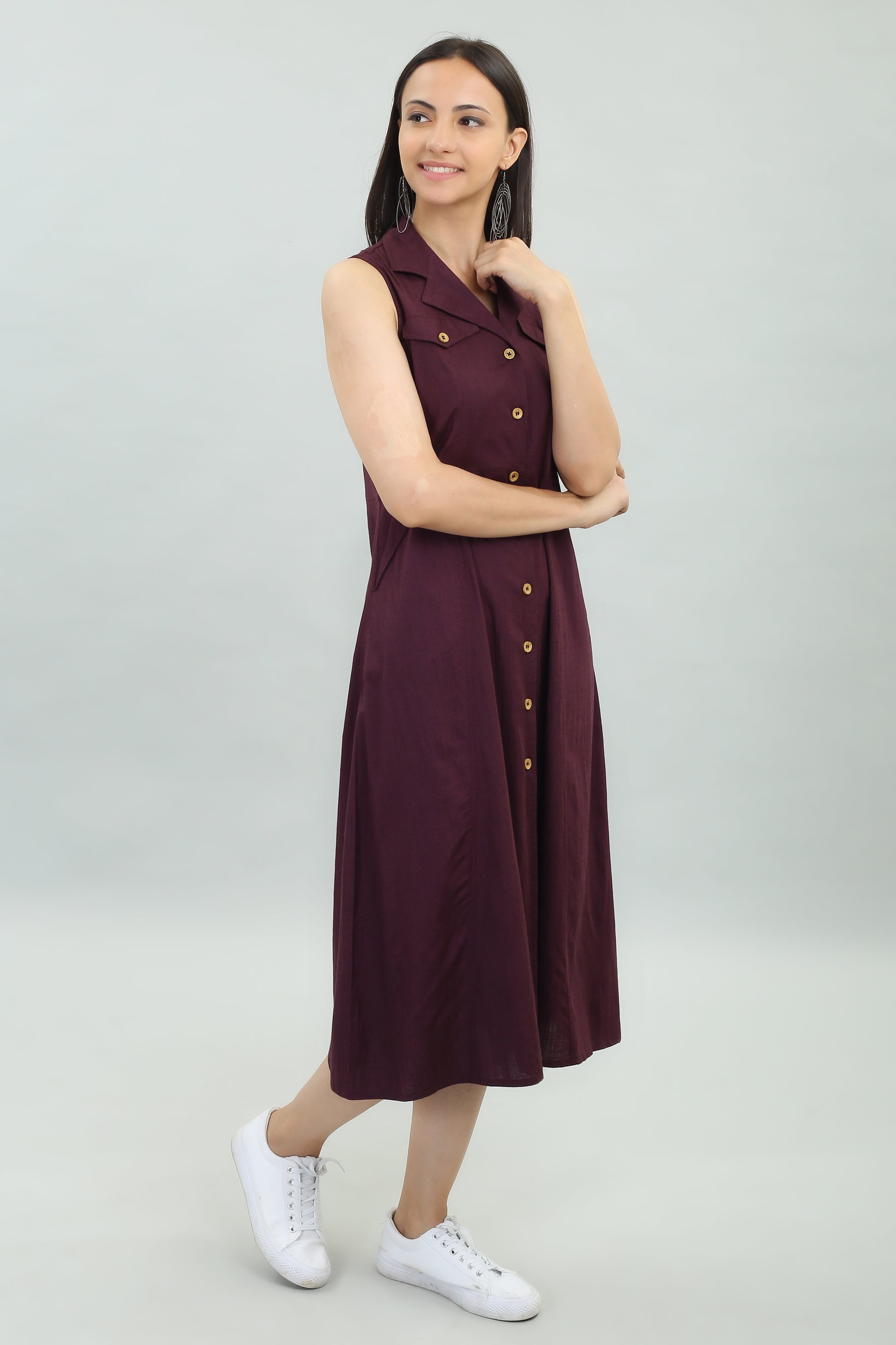 VAPPS Cotton Lycra Casual Wear Designer Long Western Dress -Maroon