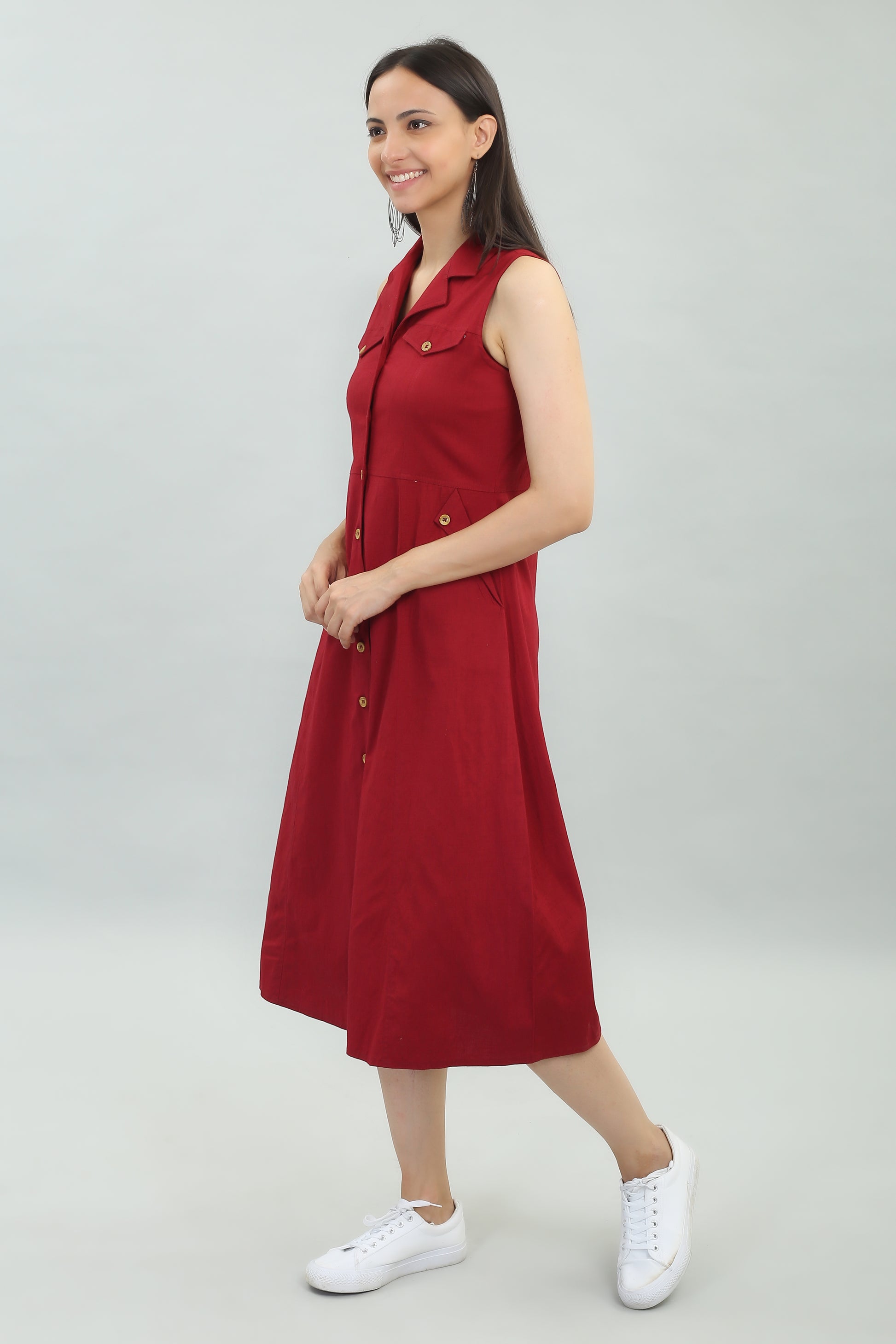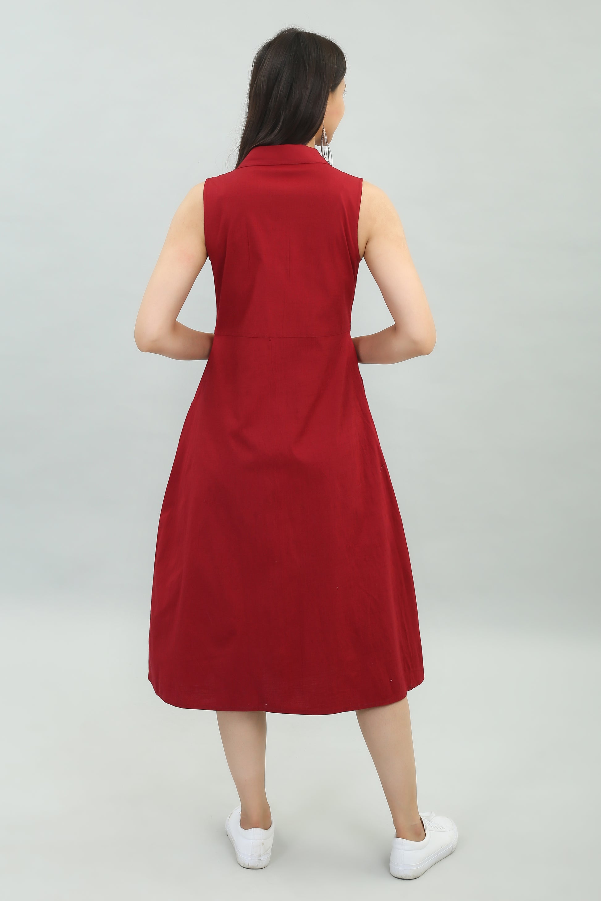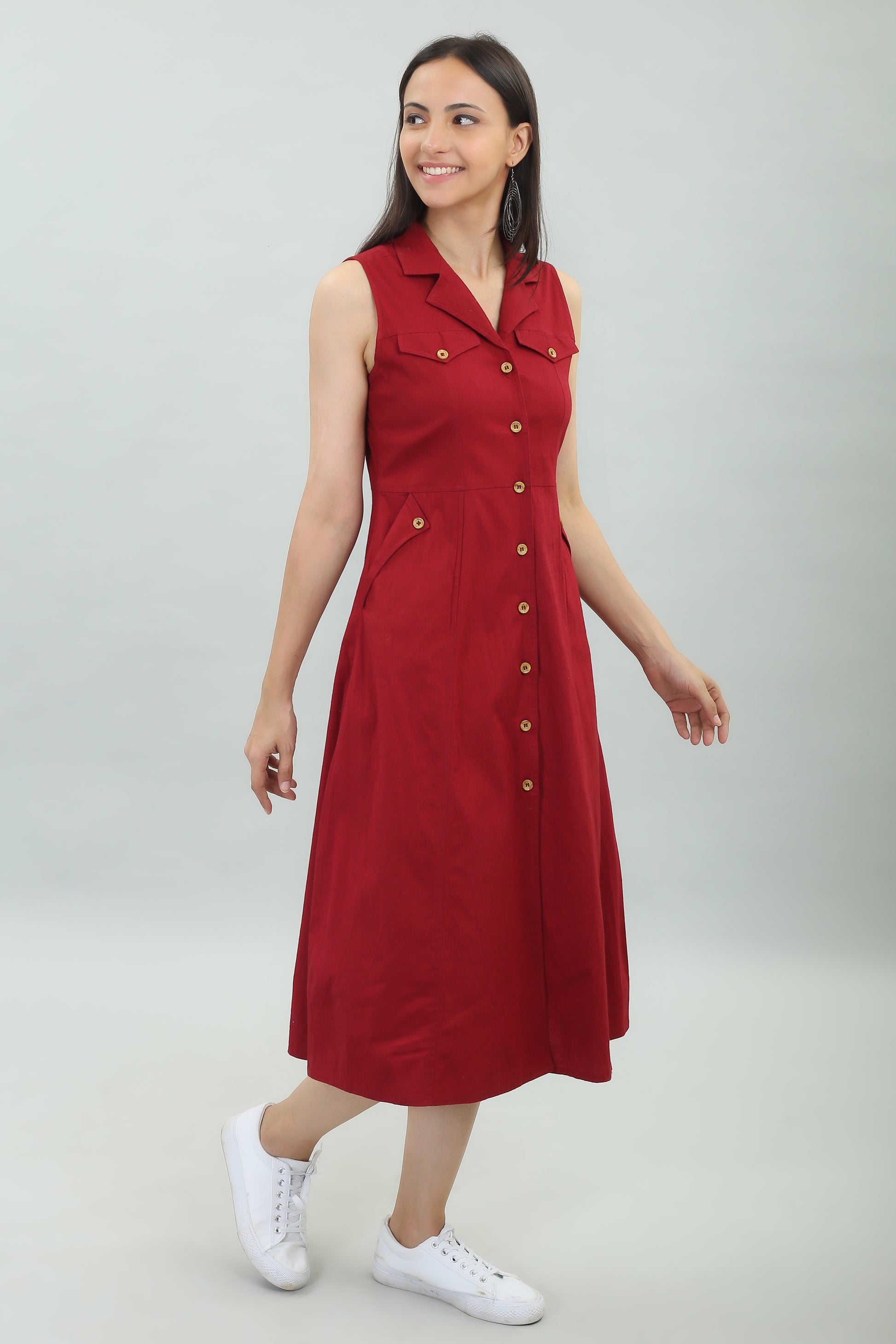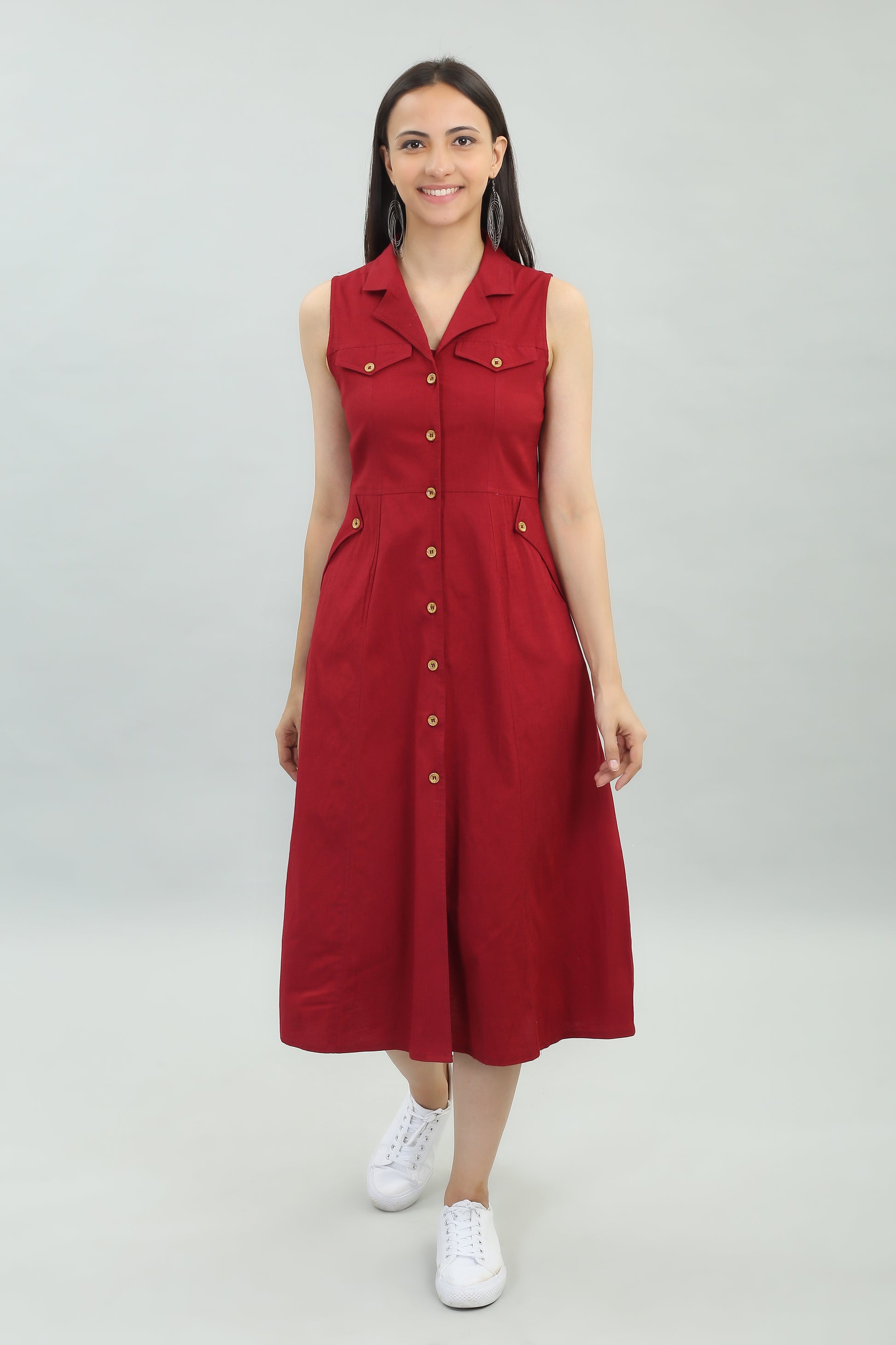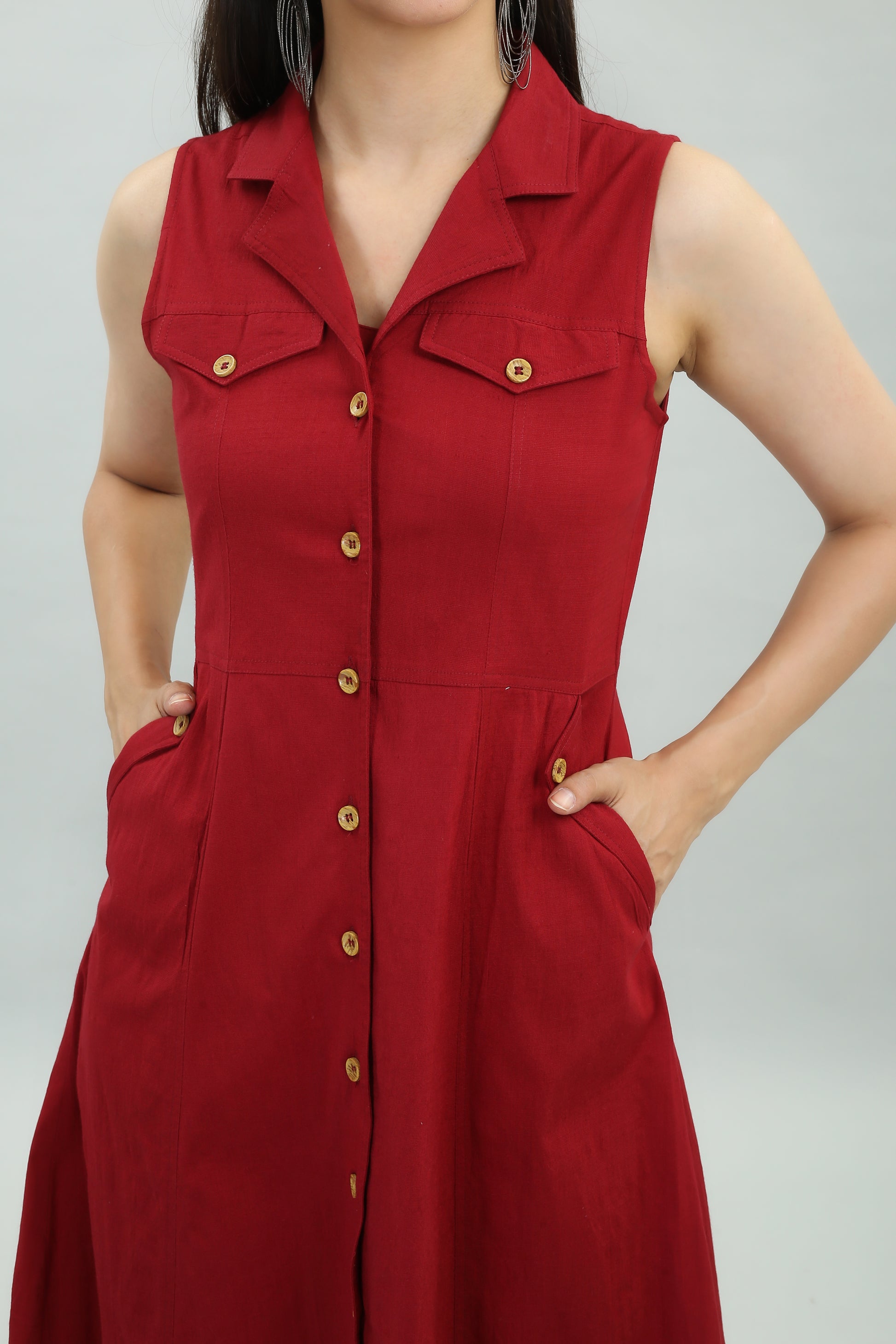 VAPPS Cotton Lycra Casual Wear Designer Long Western Dress -Red