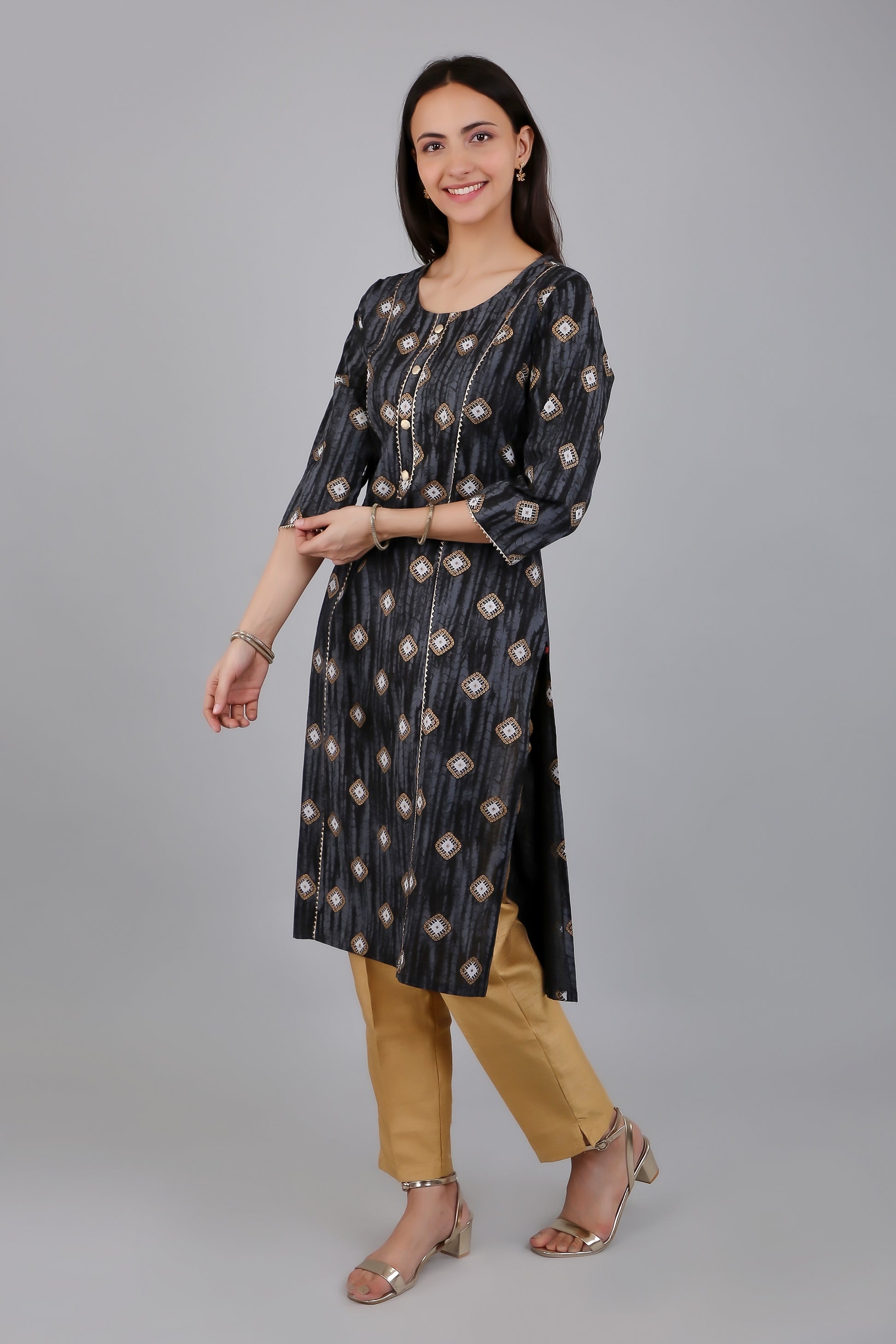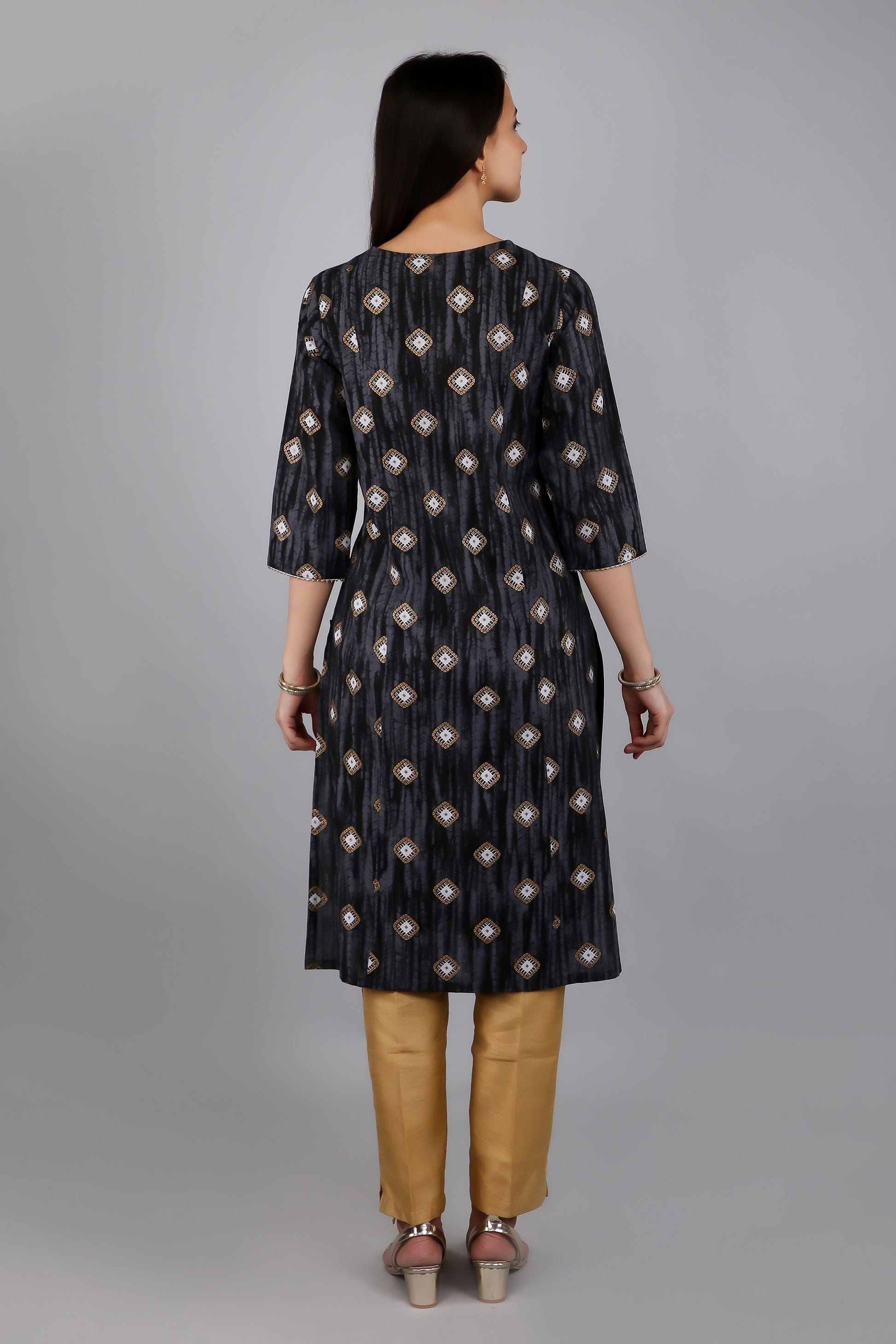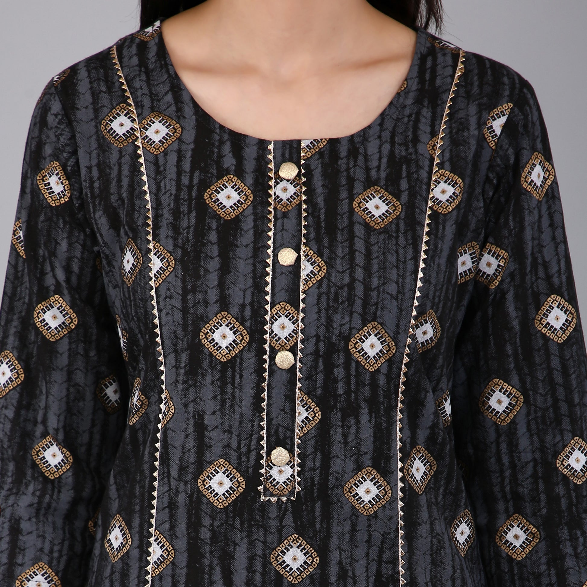 VAPPS Cotton Printed Kurta for Women and Girls - Black