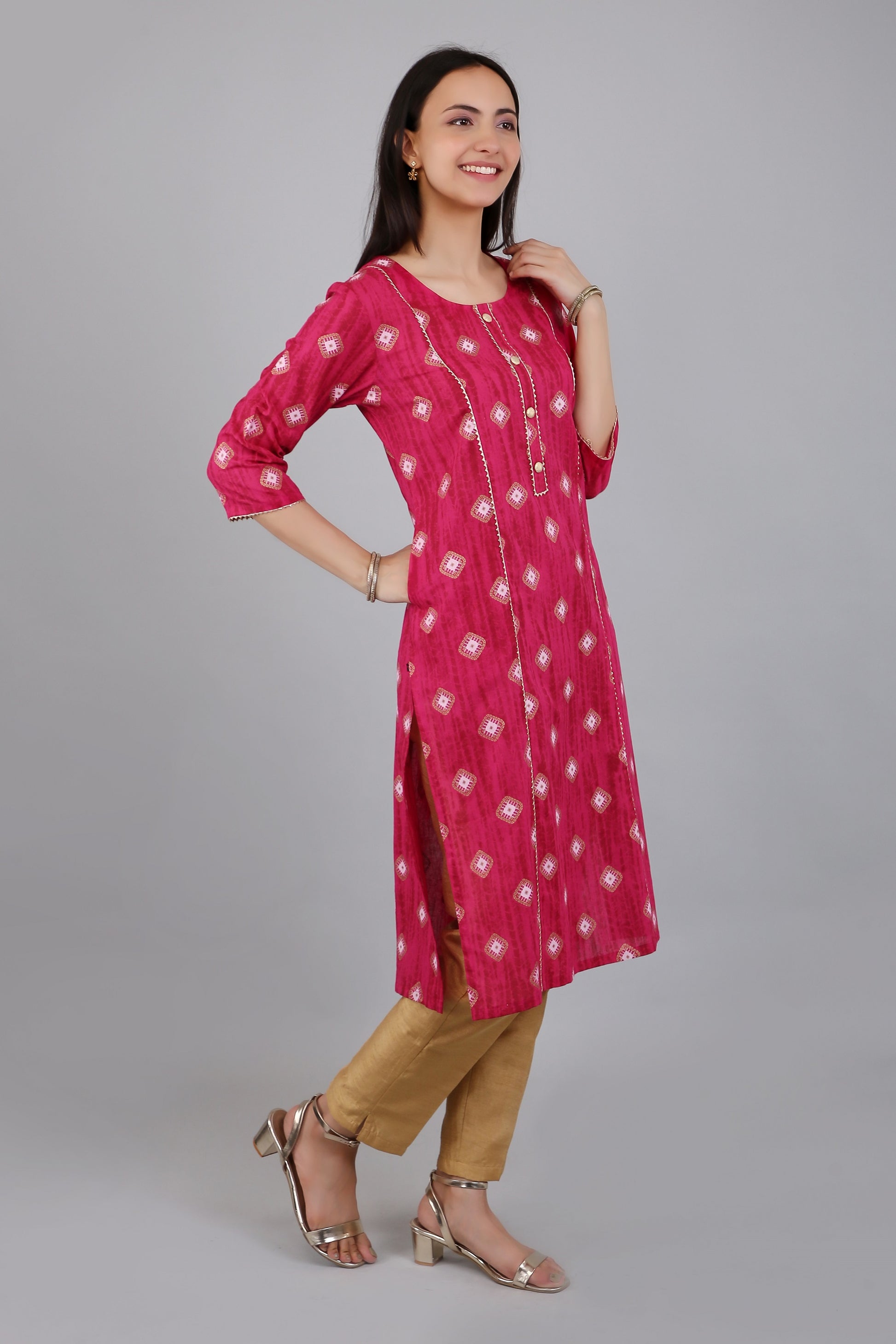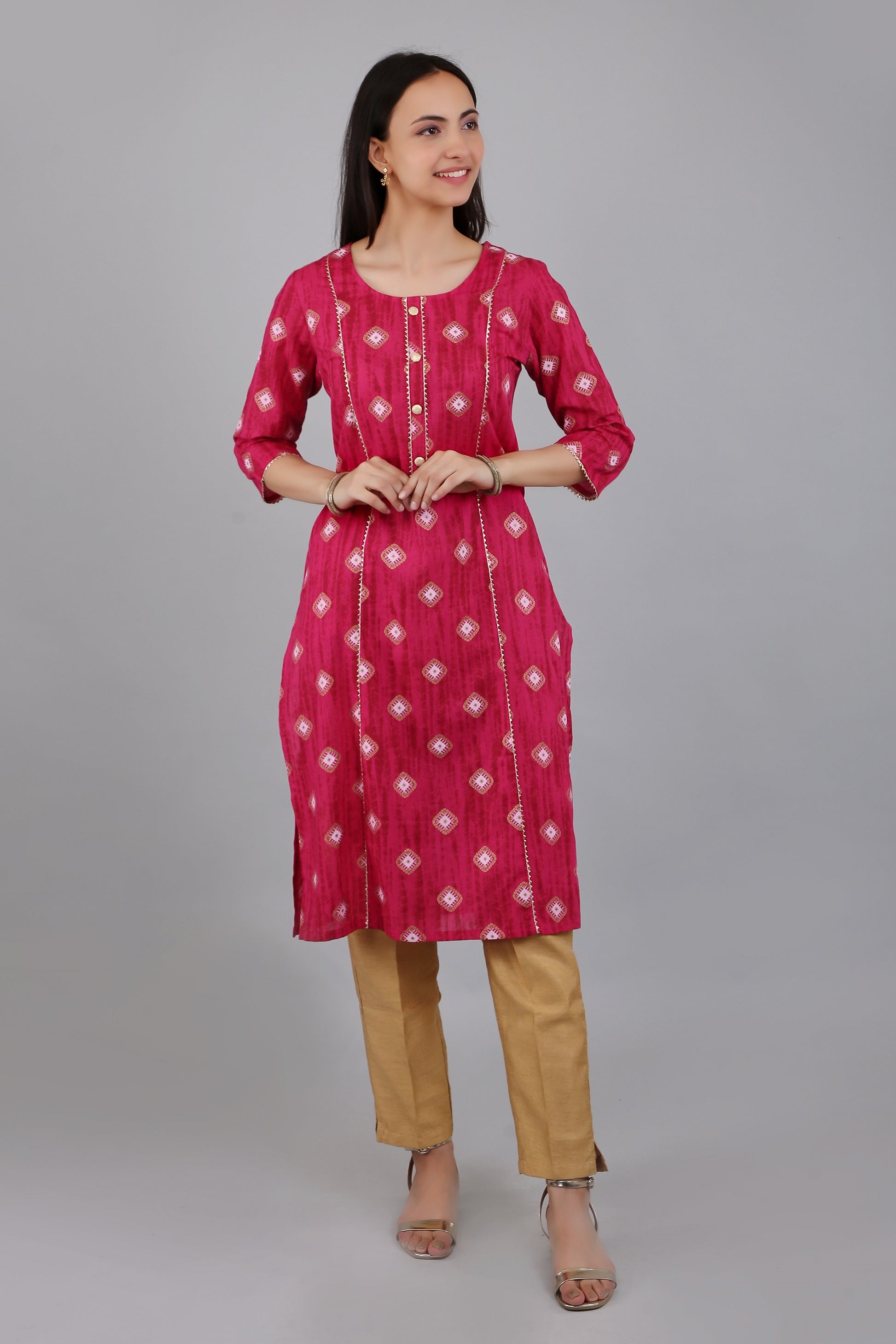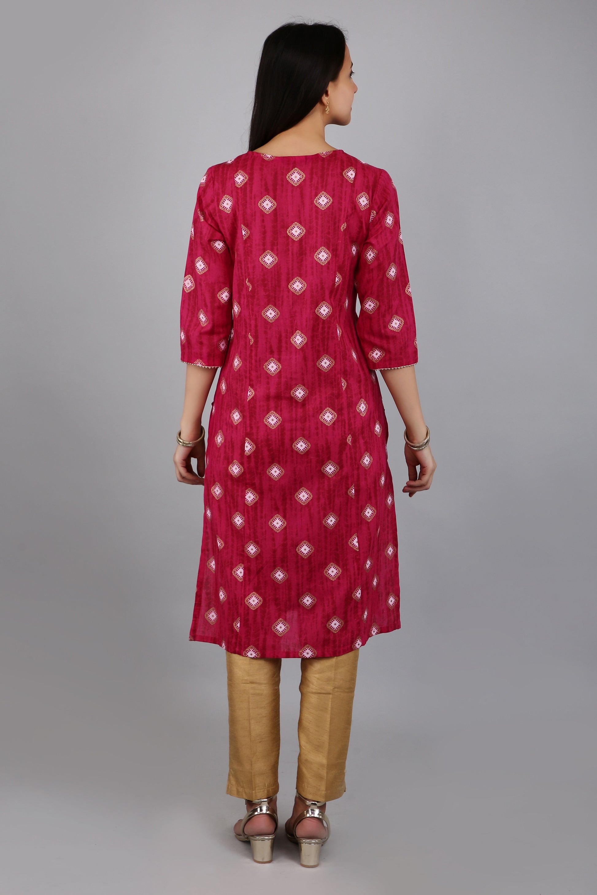 VAPPS Cotton Printed Kurta for Women and Girls - Pink