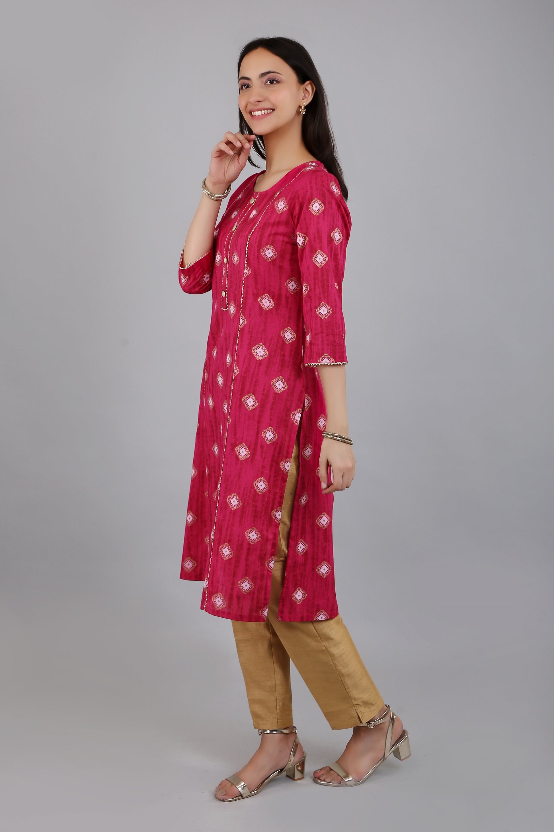 The A-line silhouette of the kurta flares out gracefully from the waist, providing a comfortable fit for all body types. The side slits add a touch of elegance and sophistication to the kurta, while also allowing for ease of movement.
