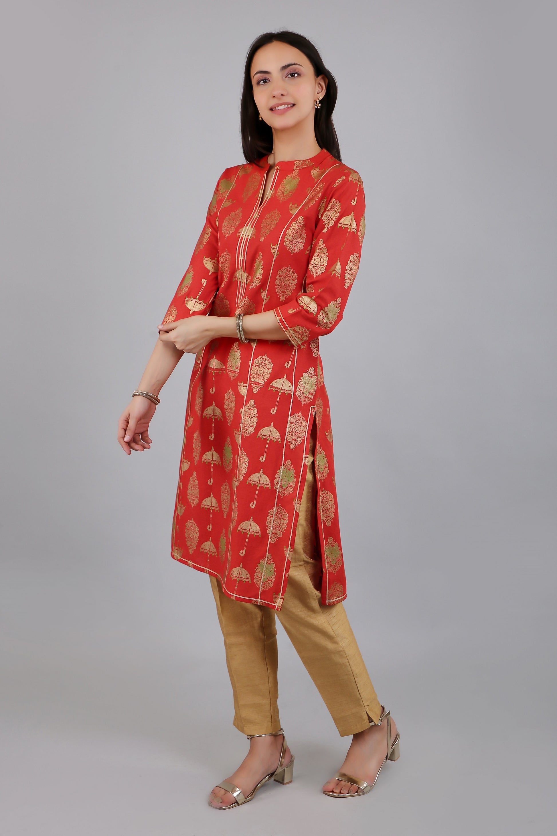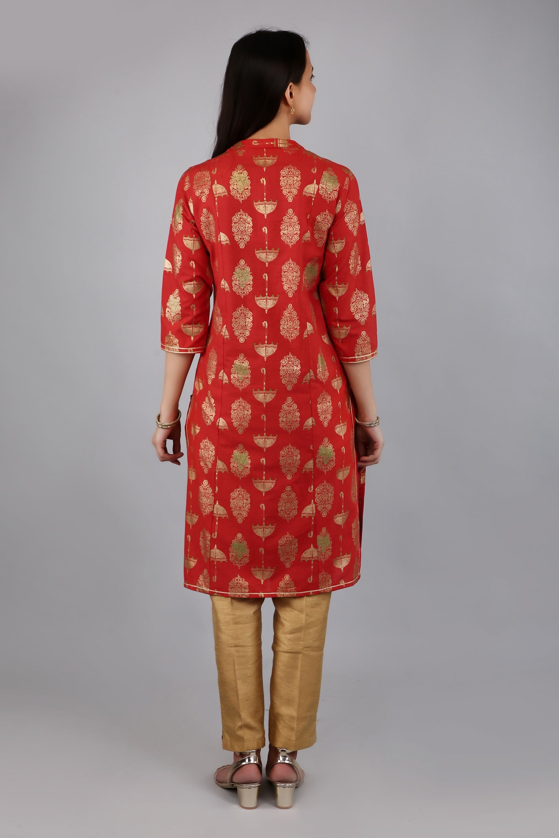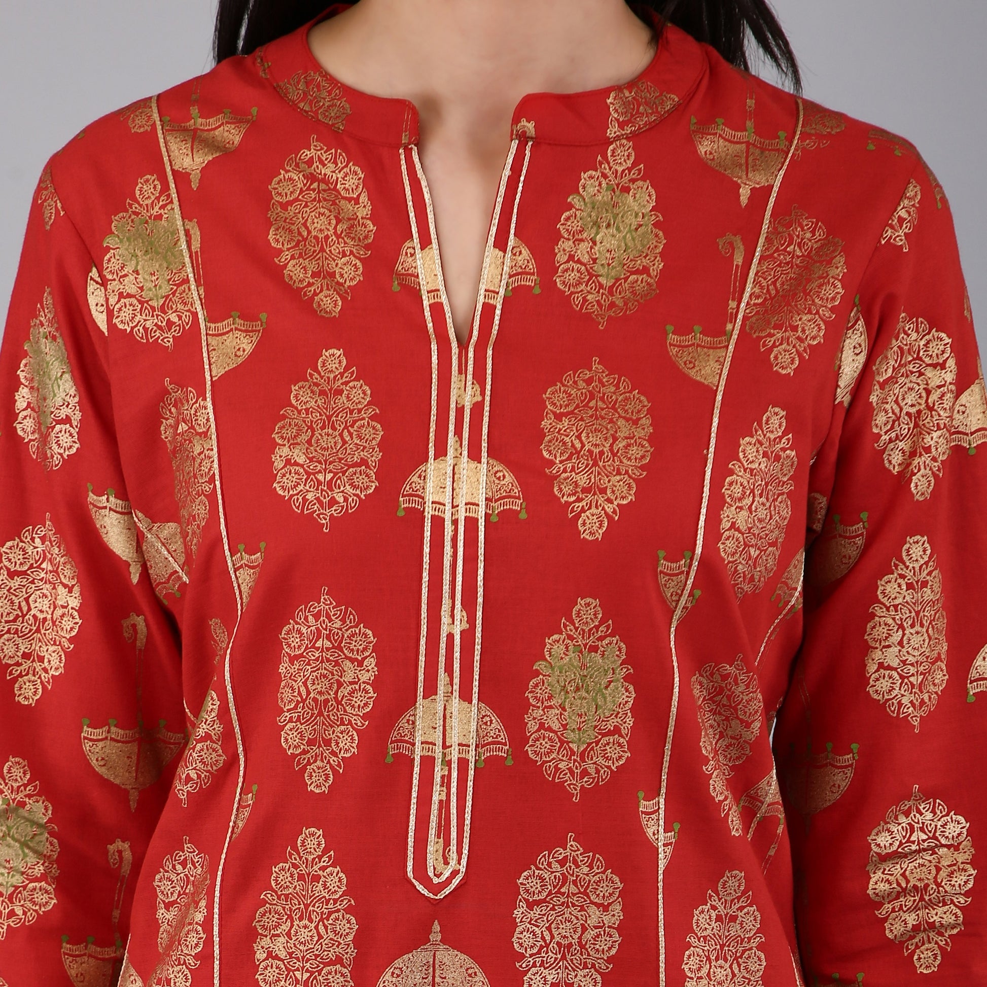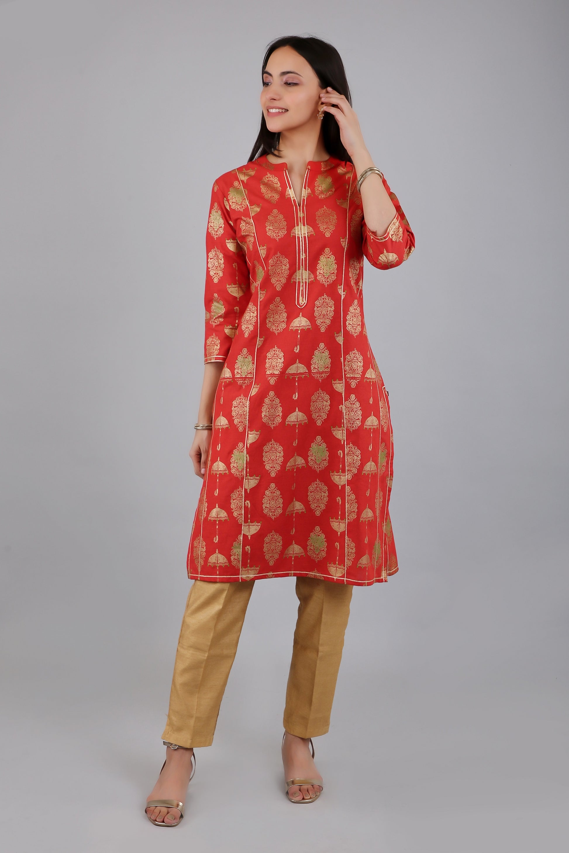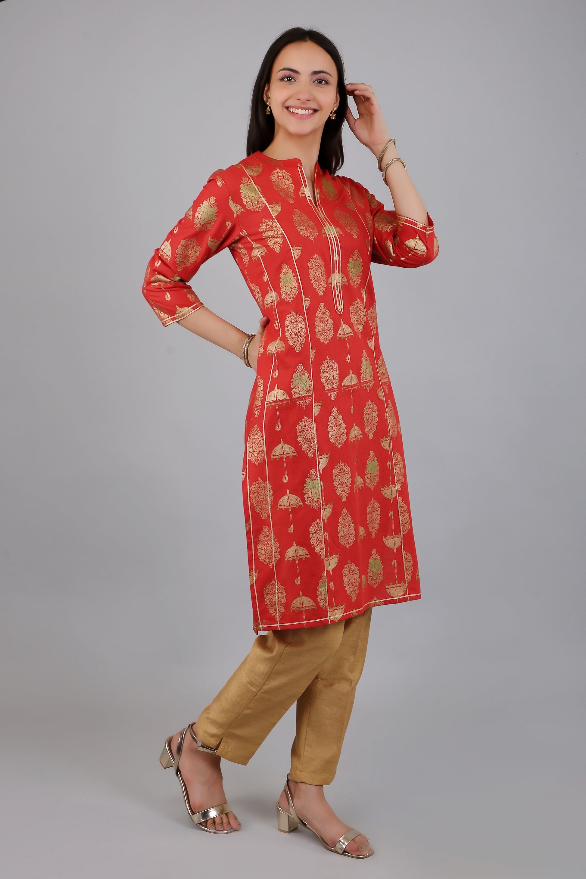 VAPPS Cotton Printed Kurta for Women and Girls - Red
