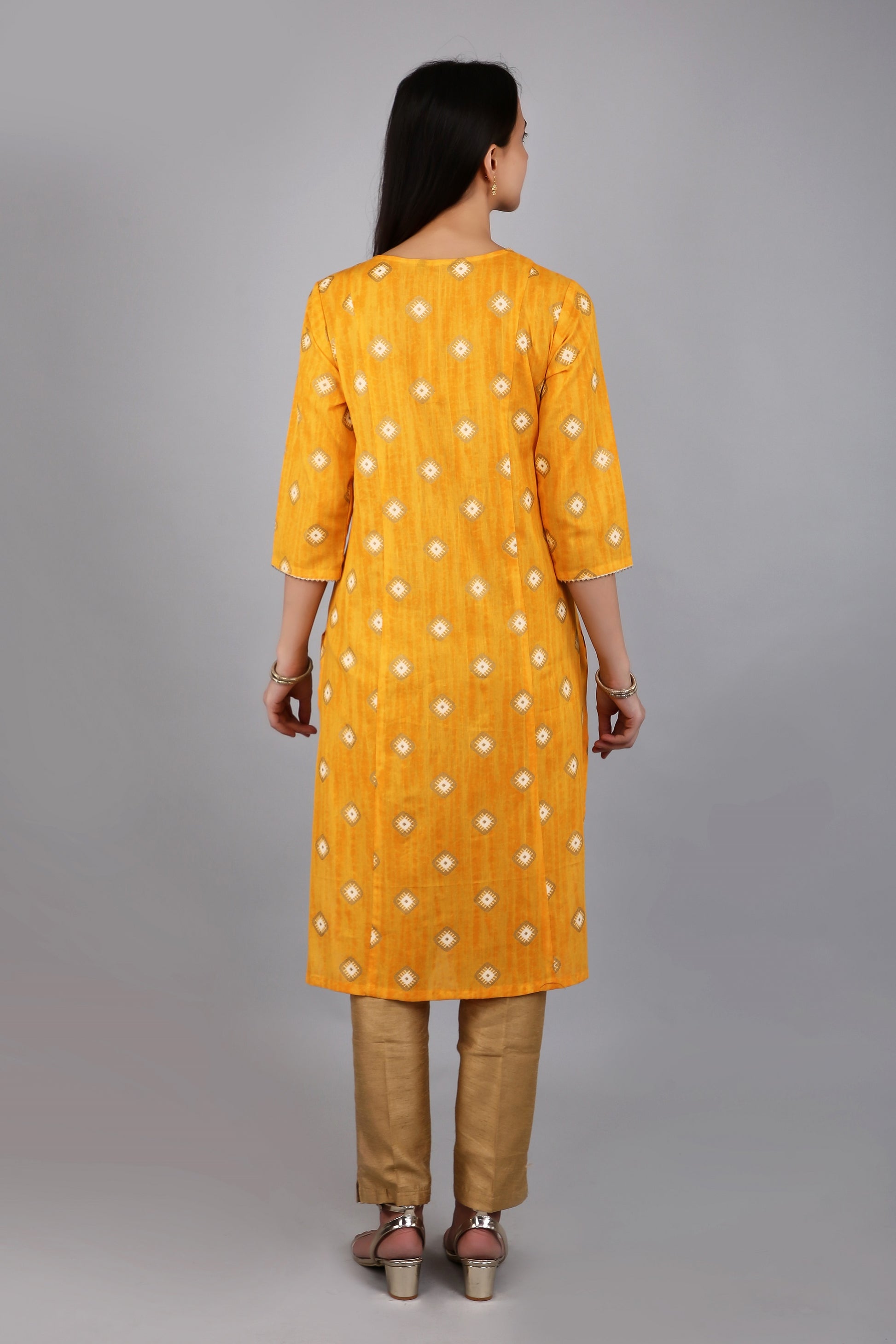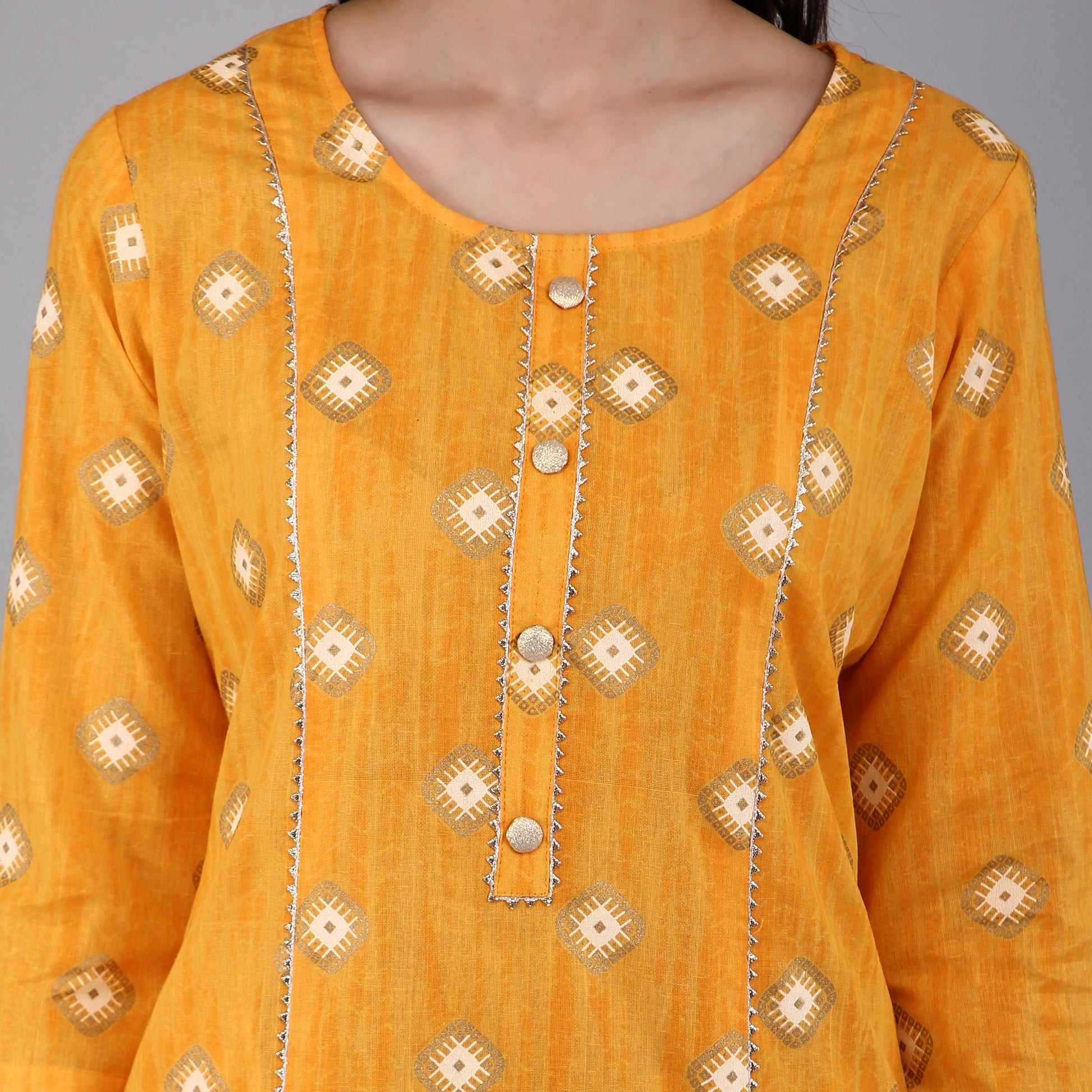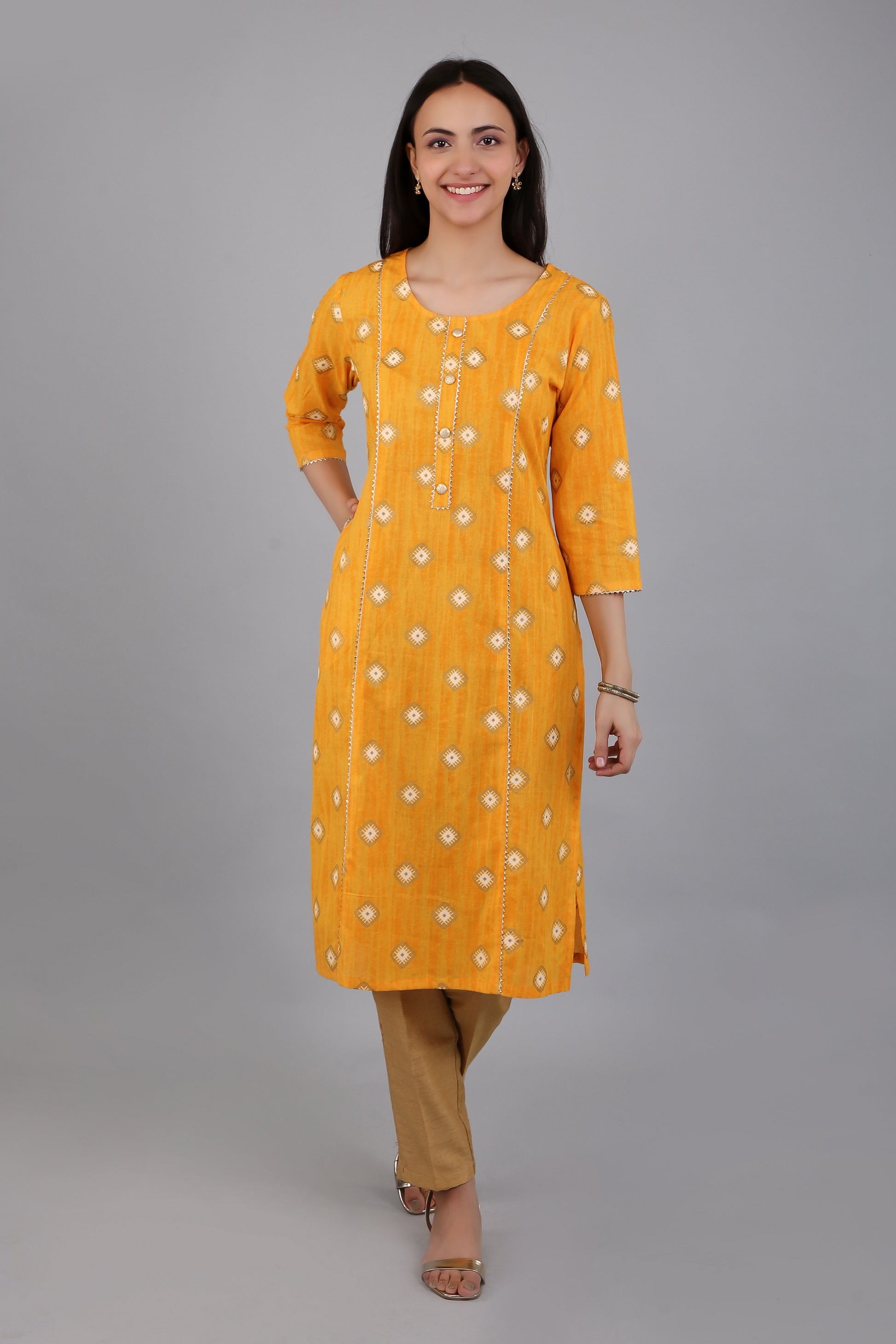 VAPPS Cotton Printed Kurta for Women and Girls - Yellow