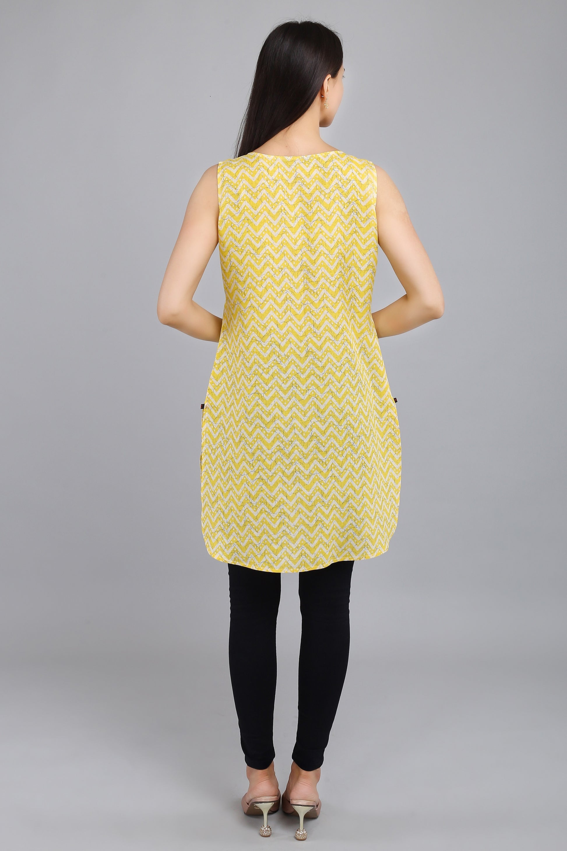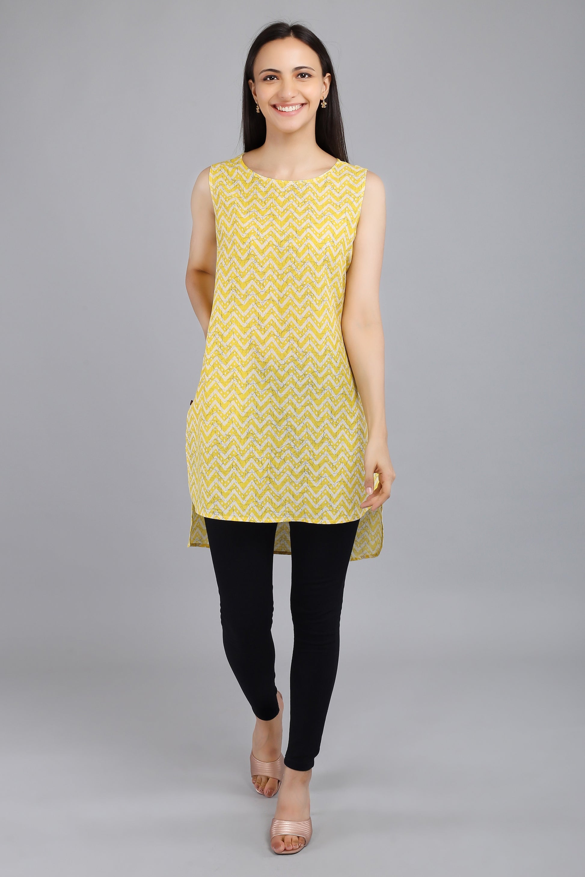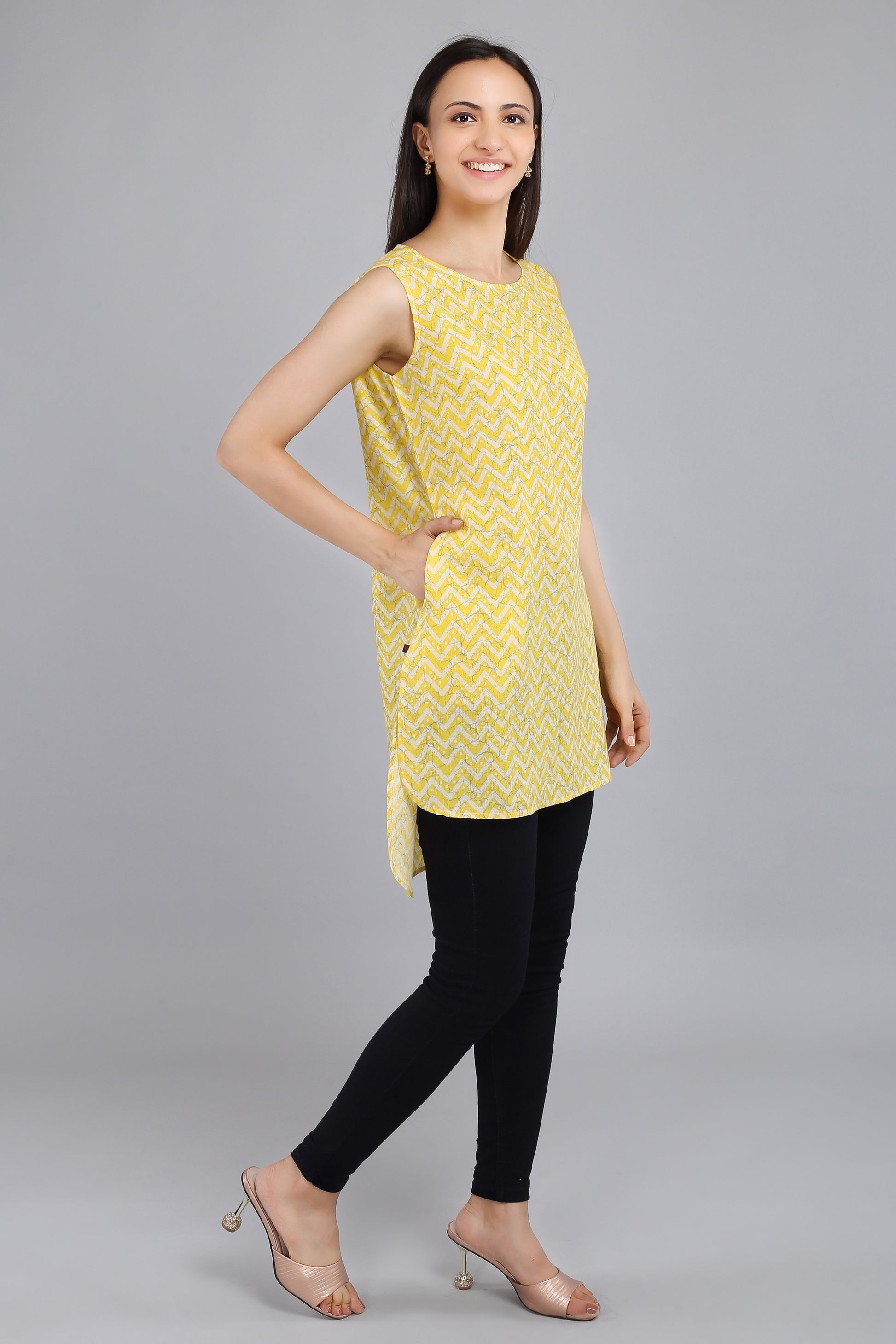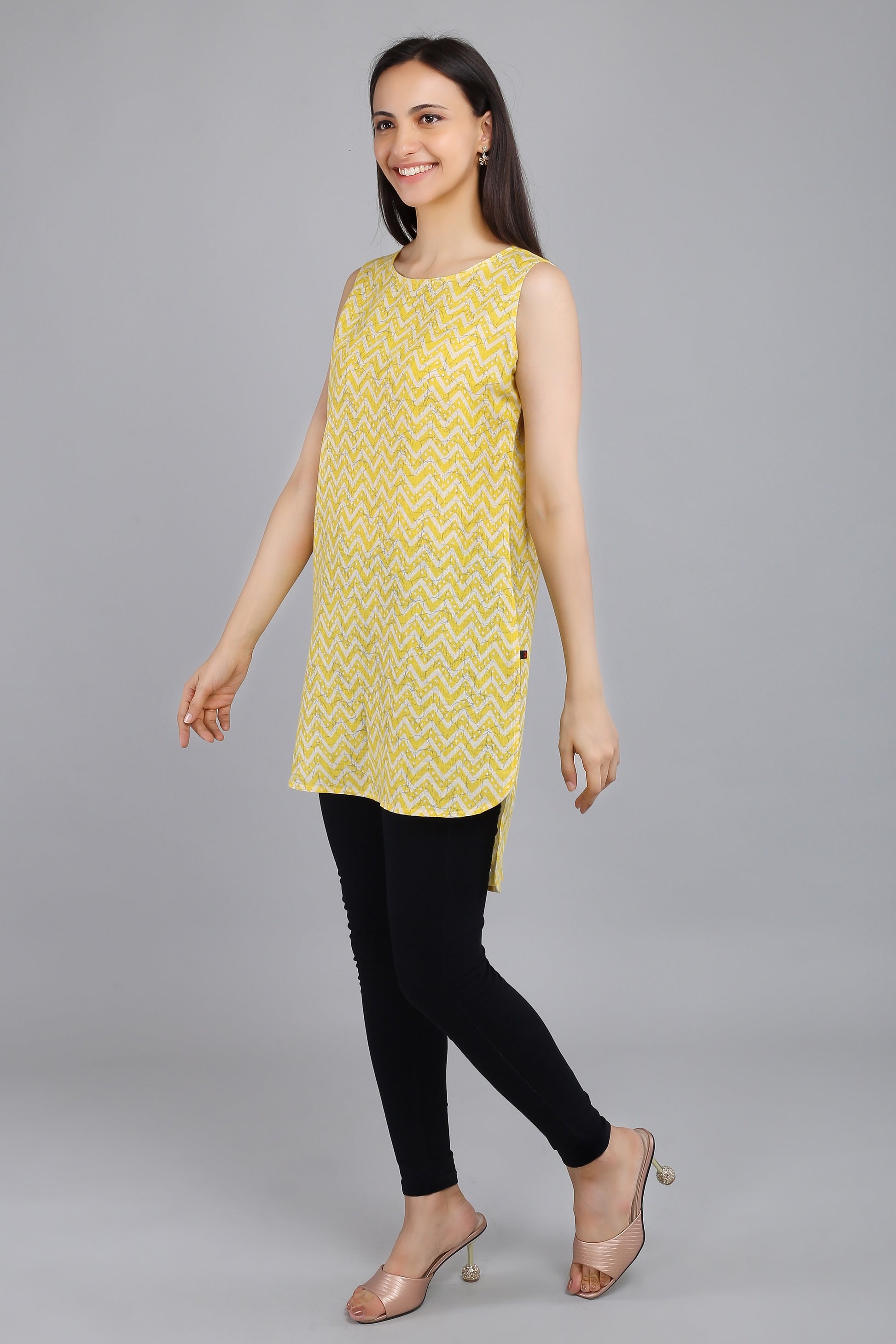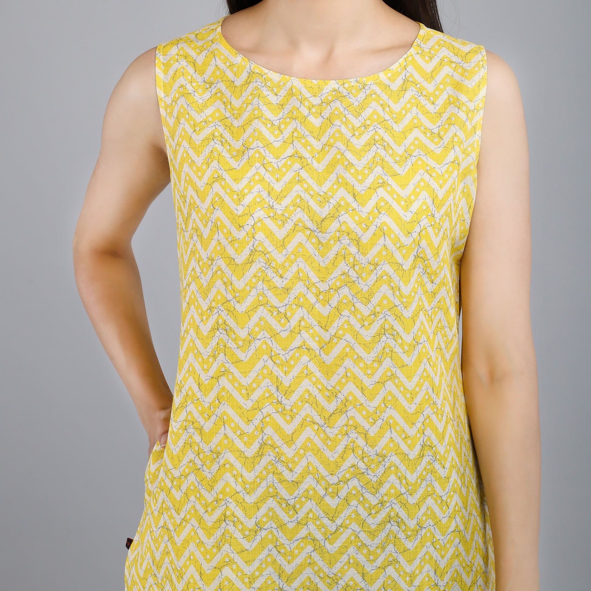 VAPPS Cotton Zig Zag Print Sleeveless Tunic - Yellow