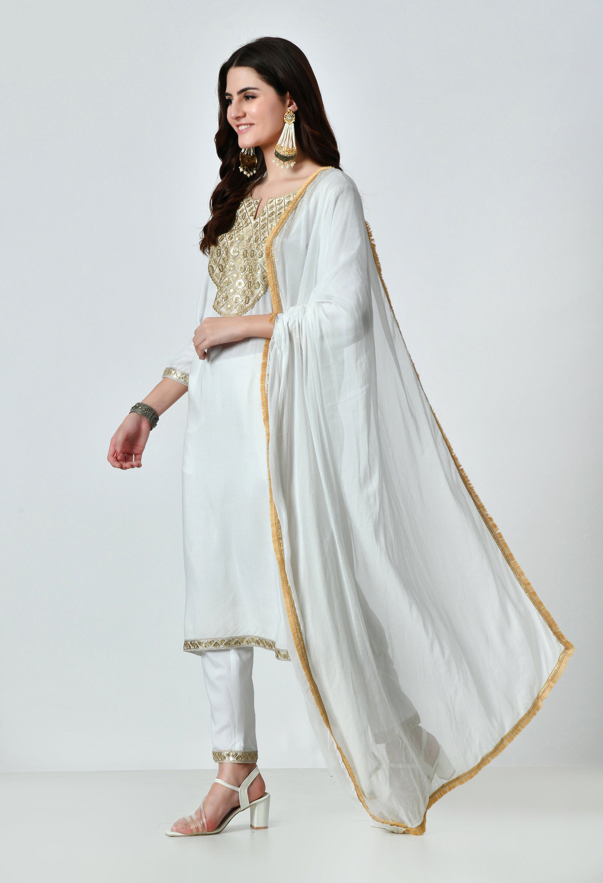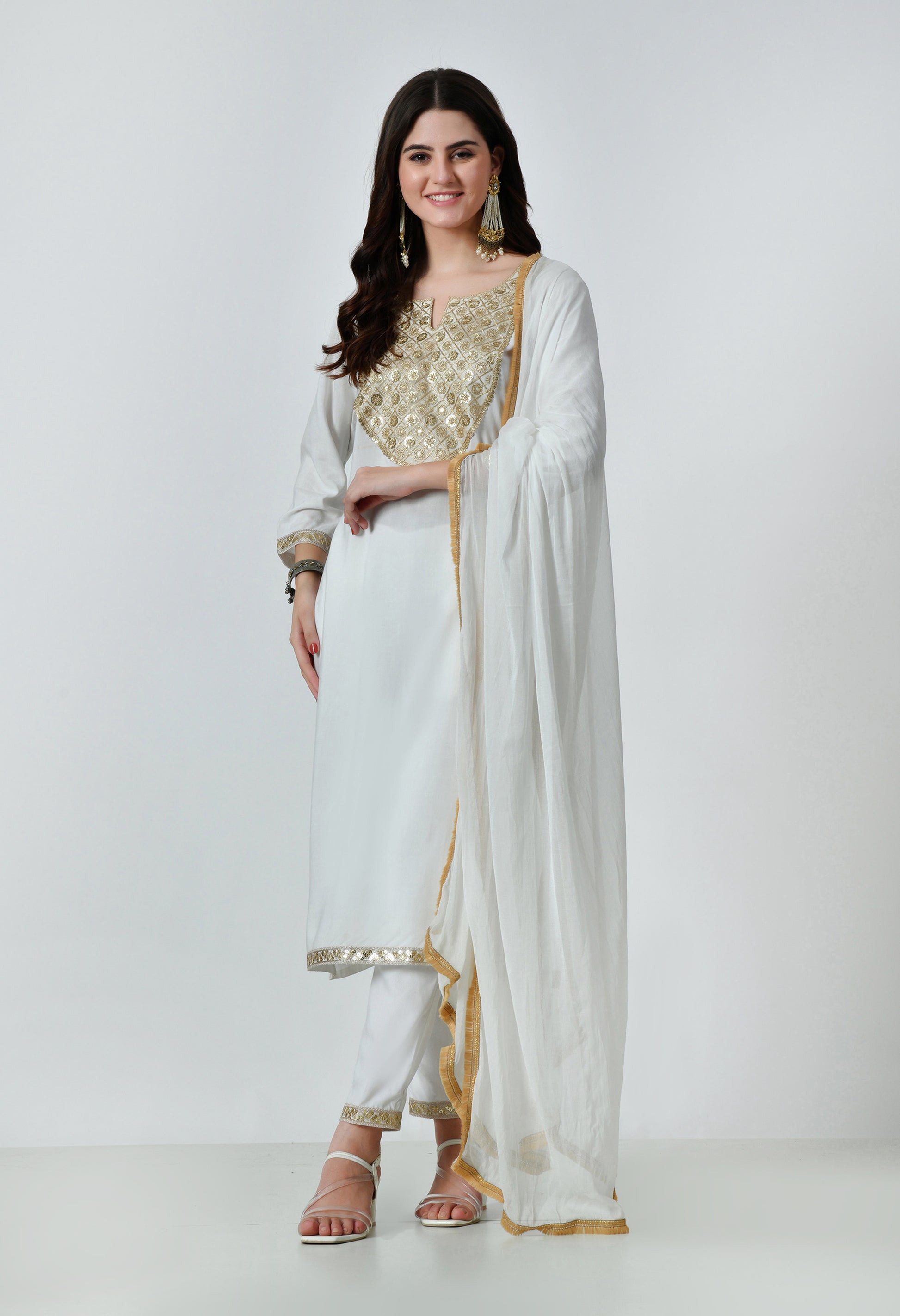 Crafted with the utmost care, our Kurta with Pant and dupatta set is made of premium quality fabric that is breathable and comfortable, making it ideal for all-day wear.