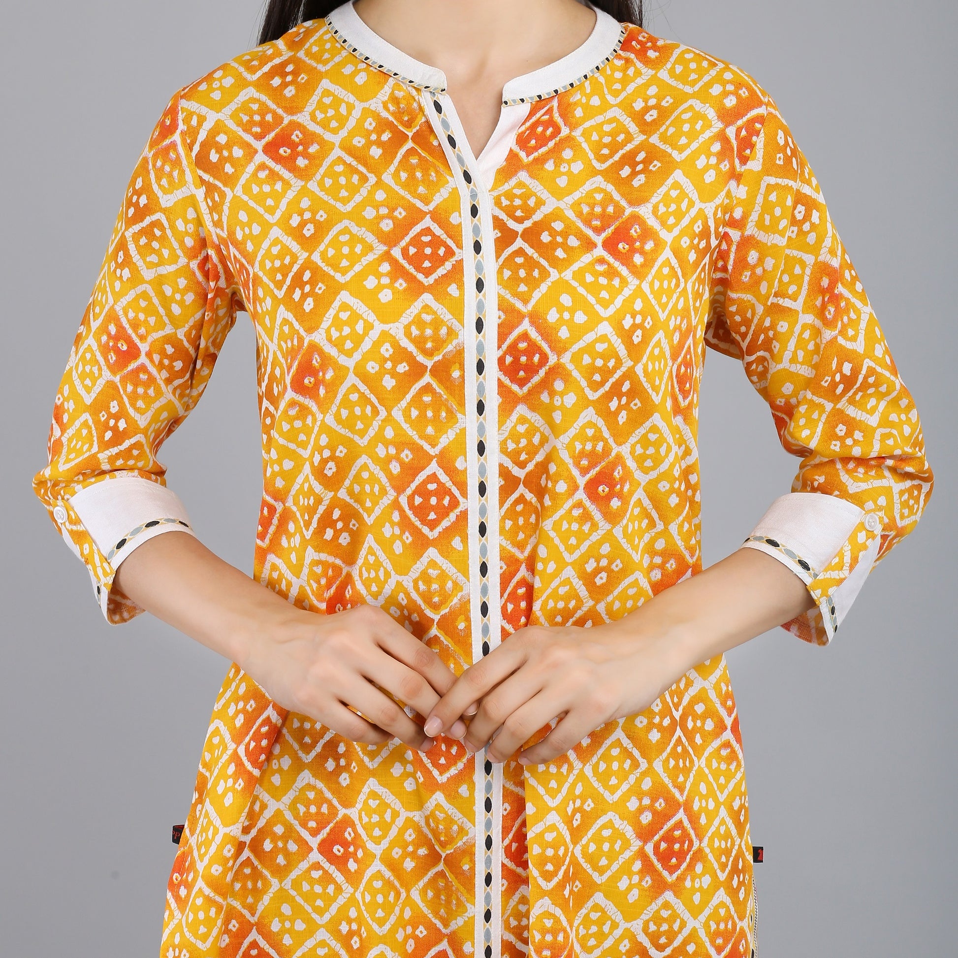 VAPPS Printed Cotton Kurta and Pant Set - Orange