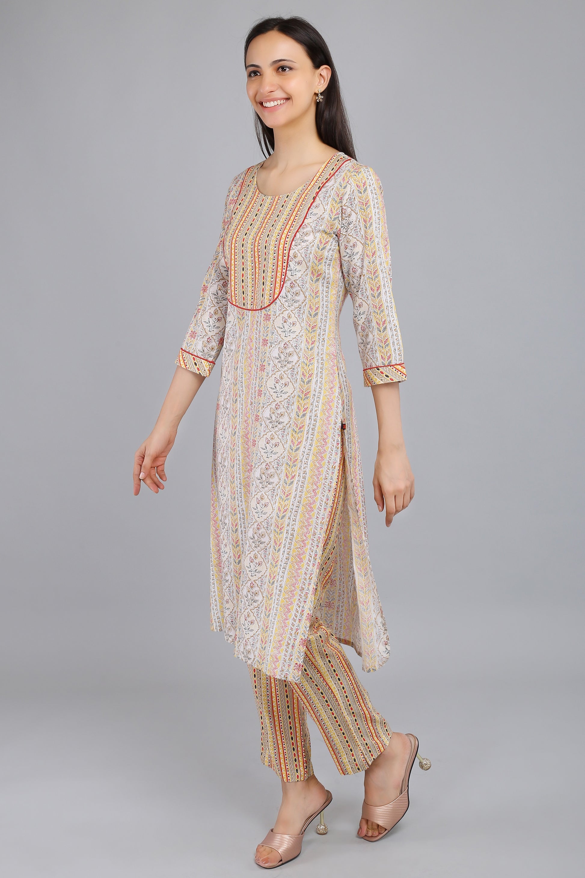 VAPPS Printed Cotton Kurta and Pant Set - Yellow