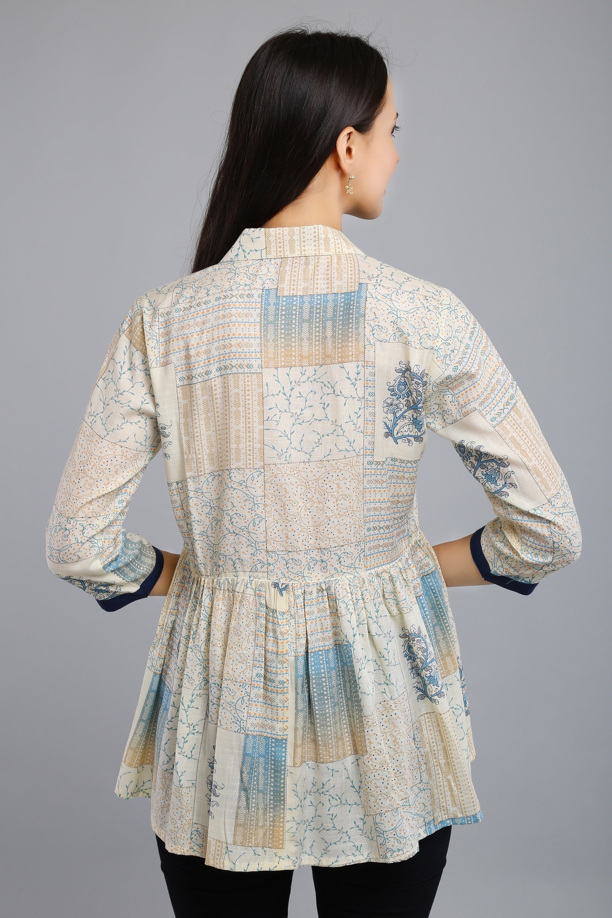 VAPPS Printed Cotton Shirt Collar Flared Tunic - Blue