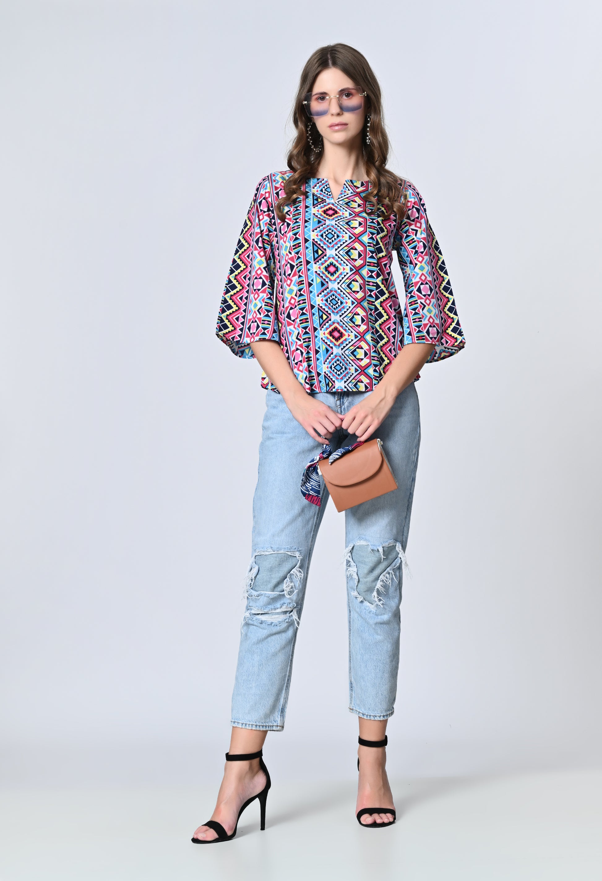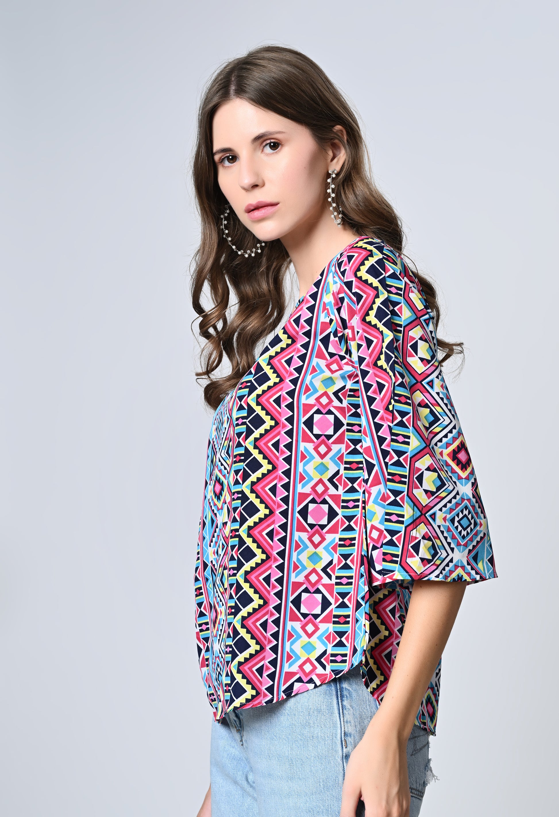 This beautiful printed Top is the perfect addition to any fashion-forward wardrobe. The Top features a stunning all-over print in bright and bold colours that will have heads turning wherever you go.