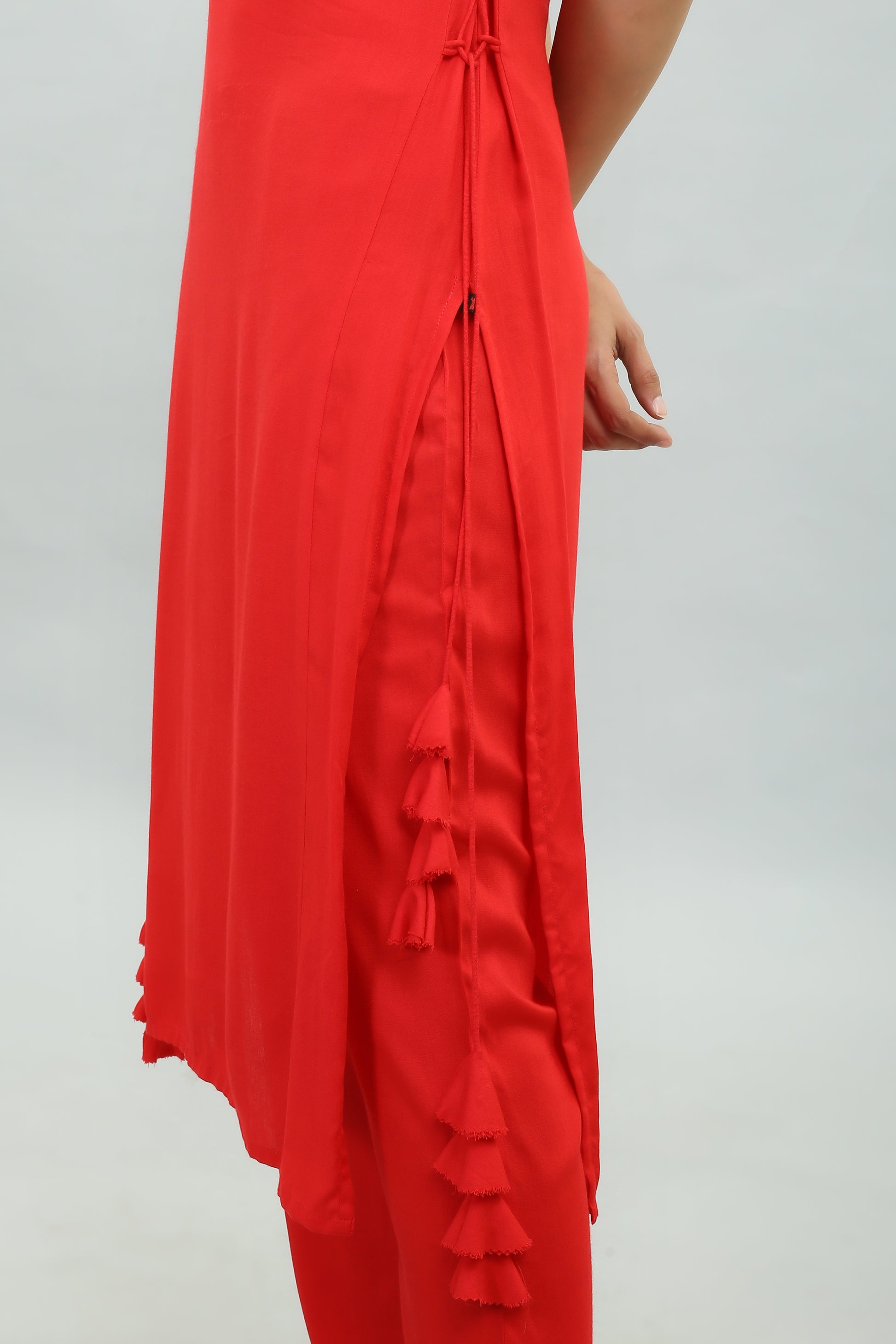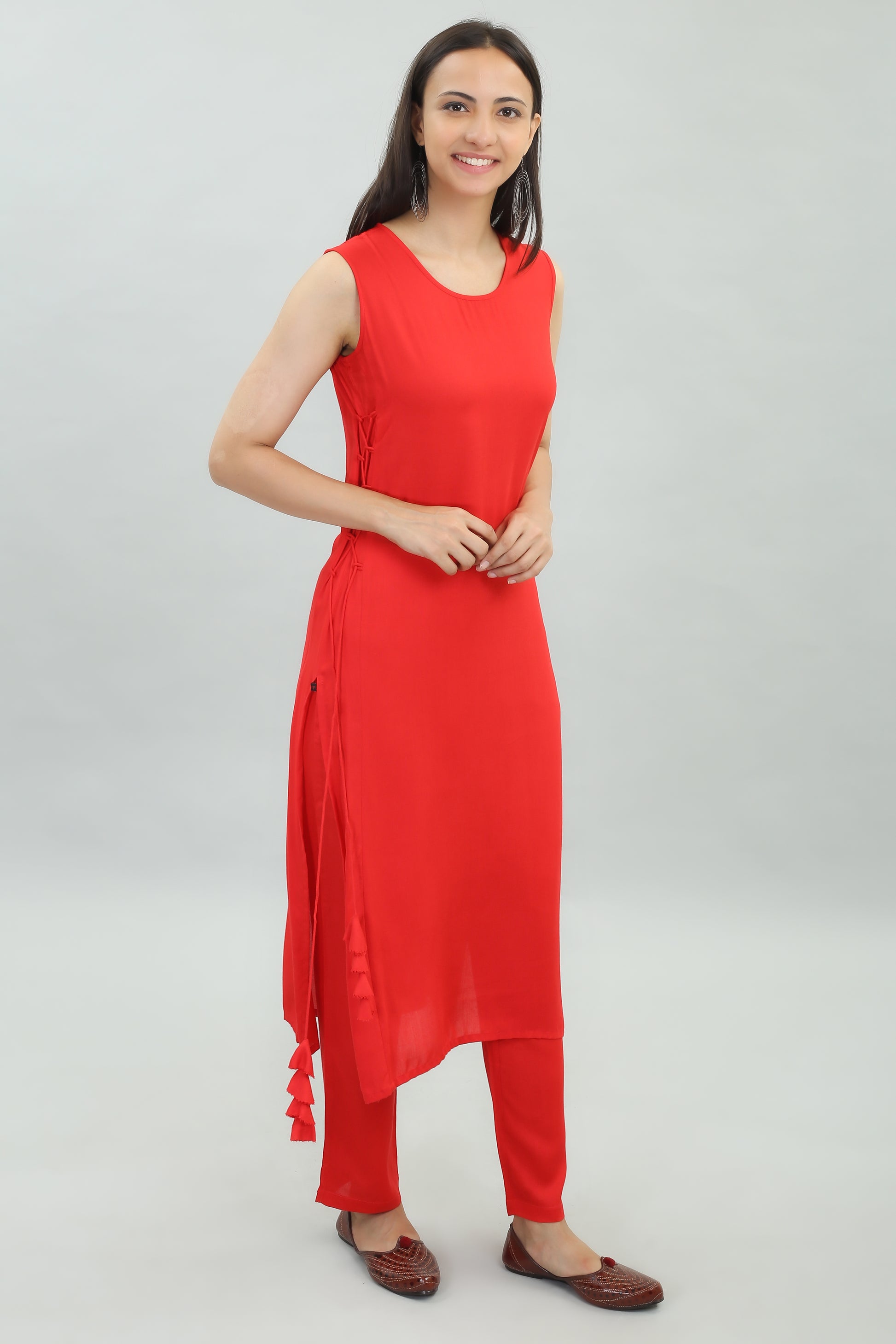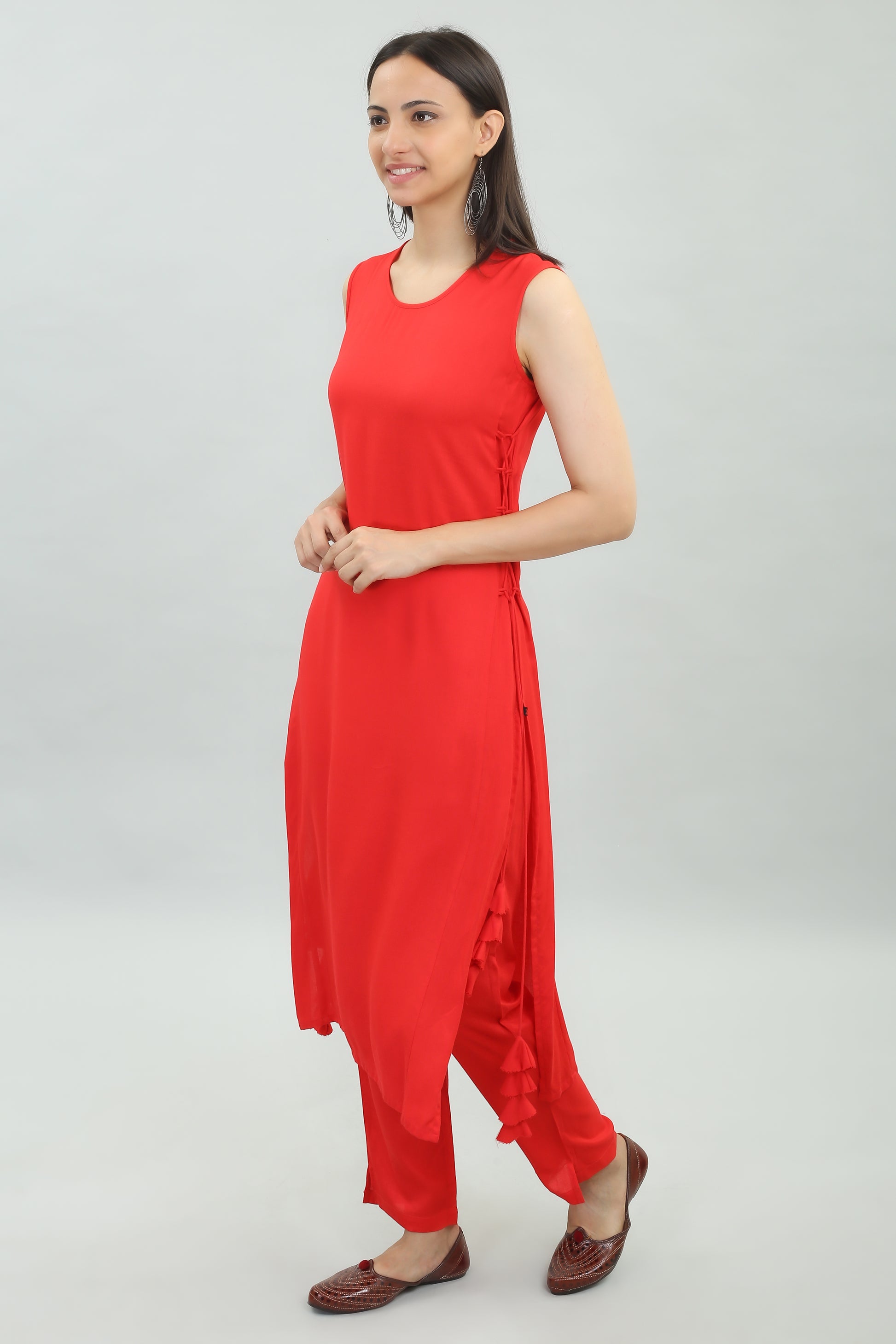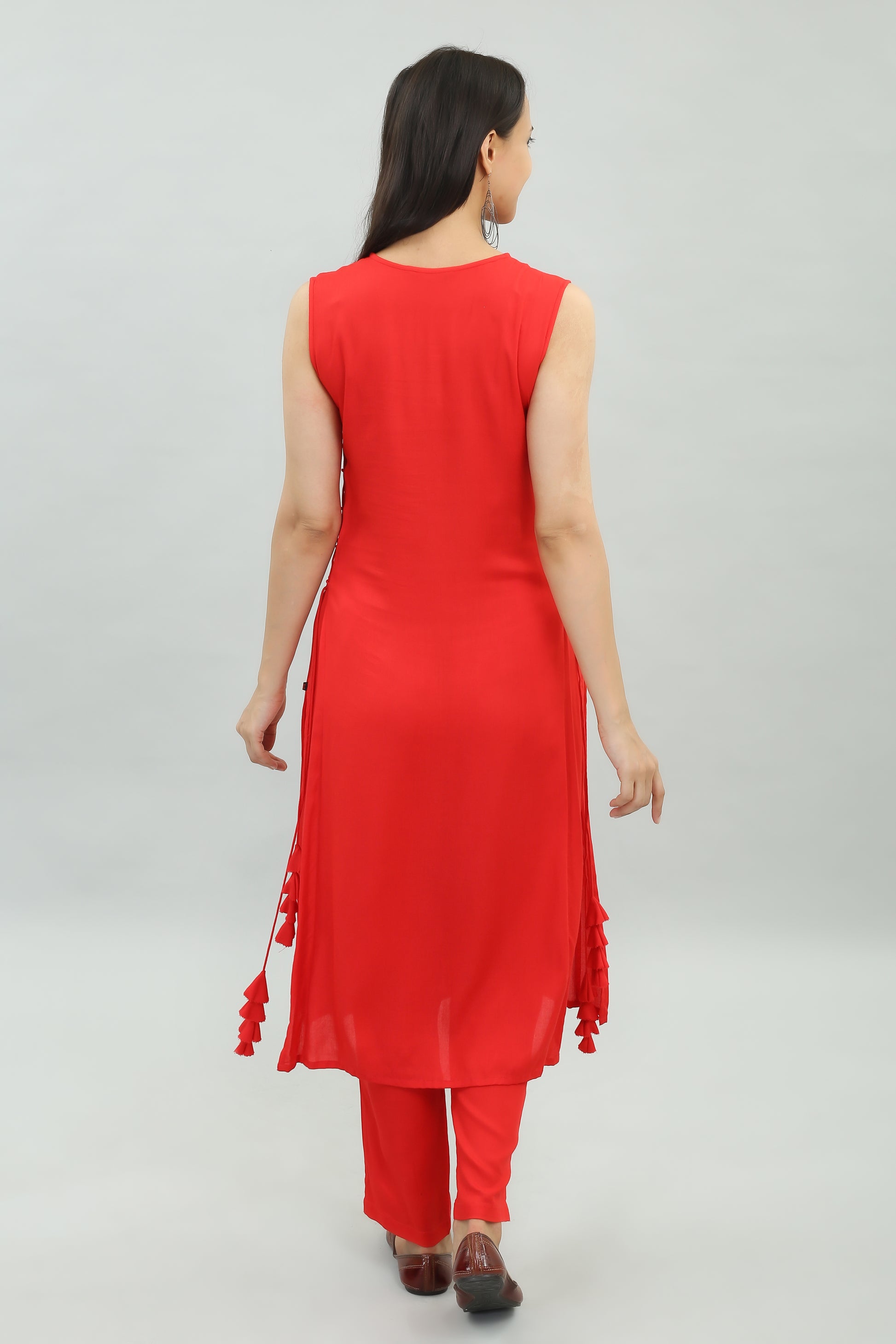 VAPPS Printed Rayon Kurta and Pant Set - Red
