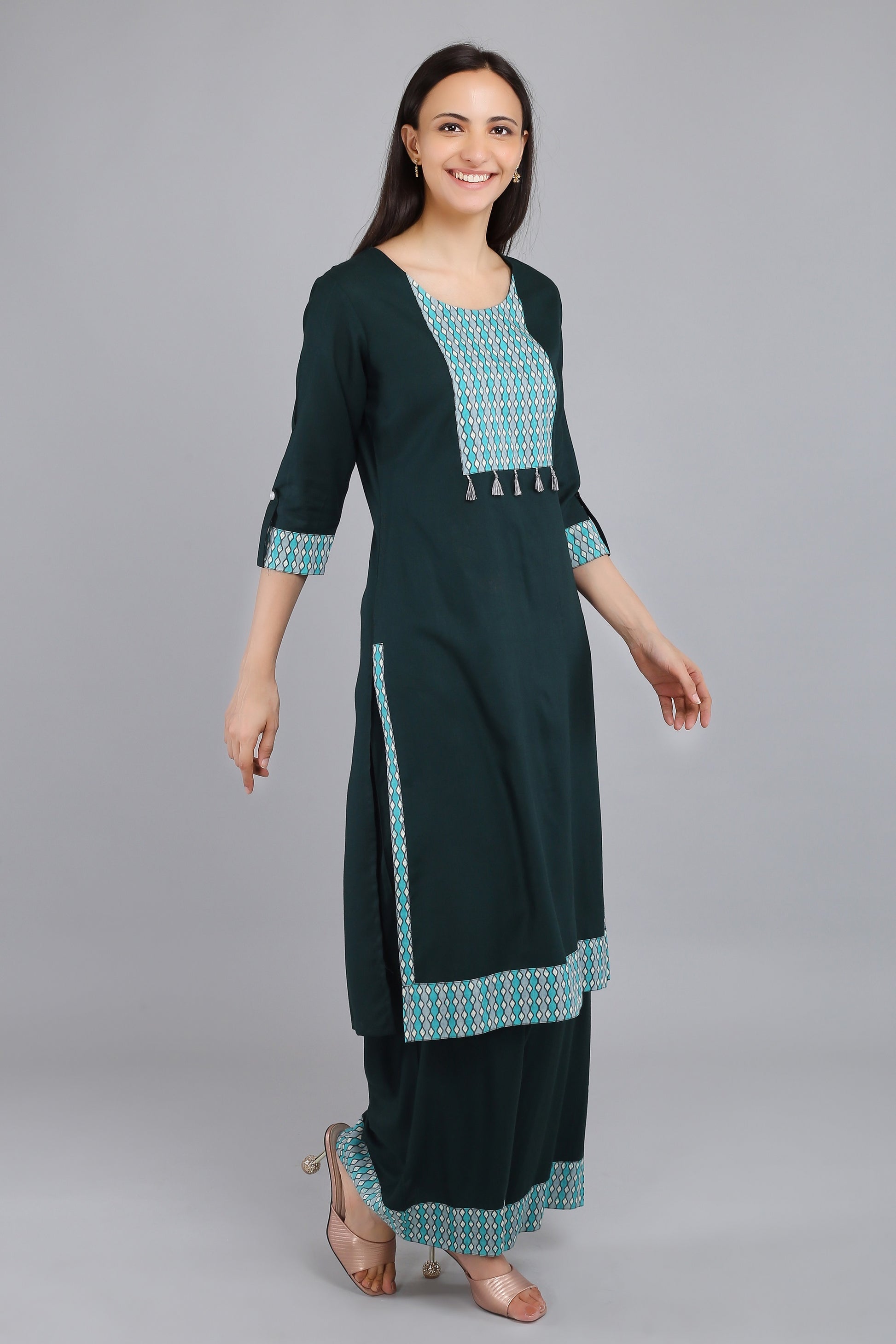VAPPS - your go-to destination for fashionable and trendy women's clothing! Our latest addition to our collection is the Rayon Kurta with Palazzo, perfect for any occasion.