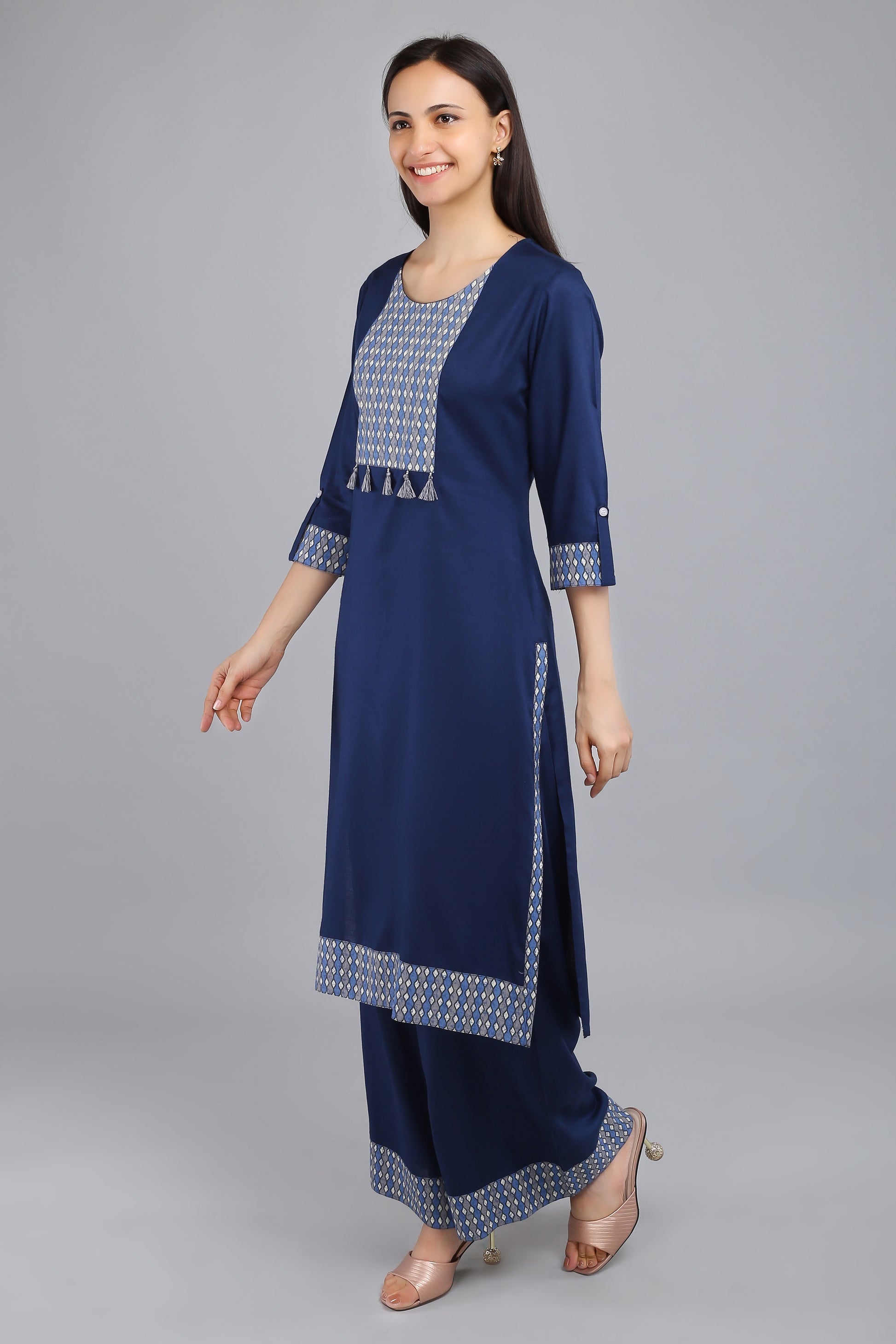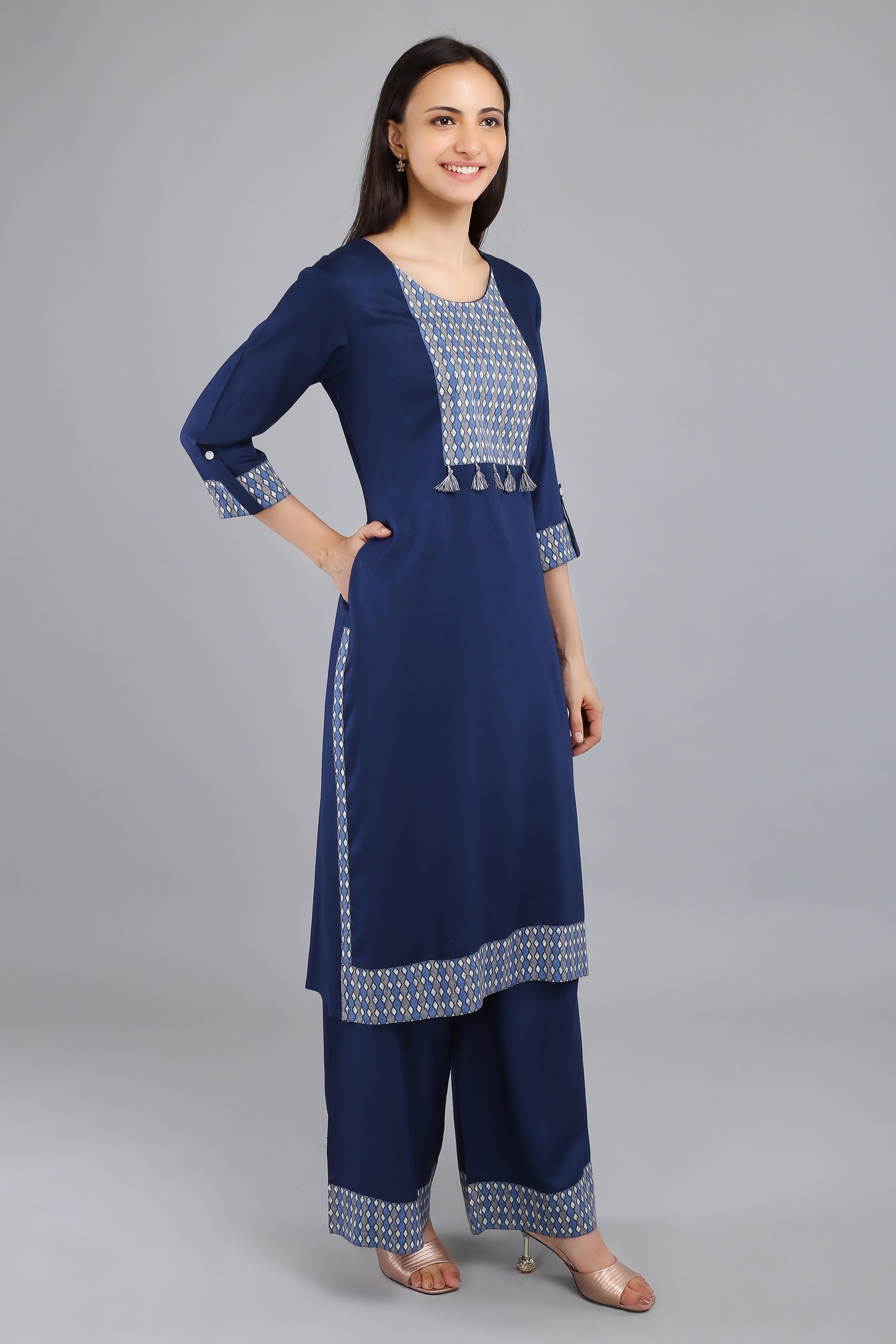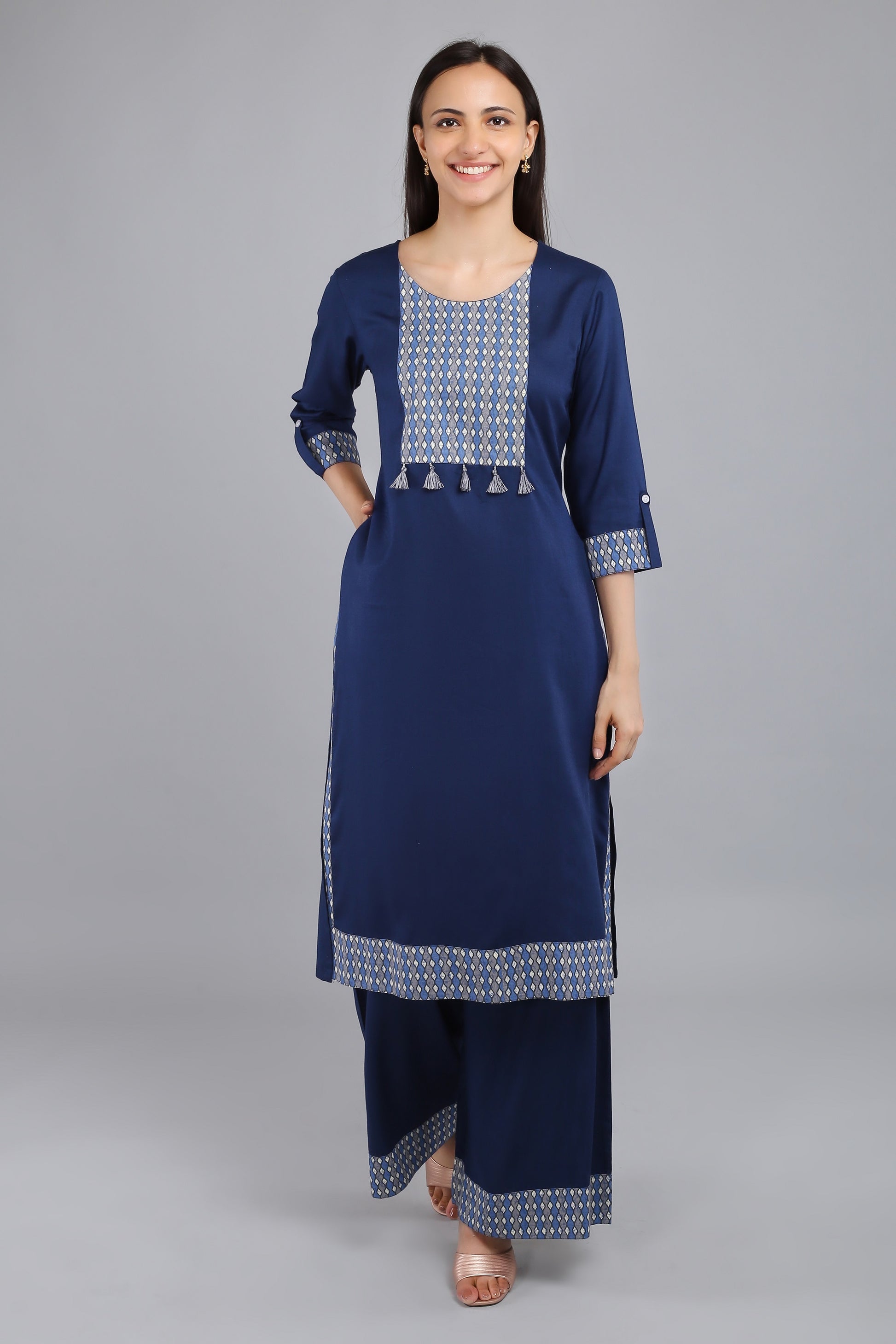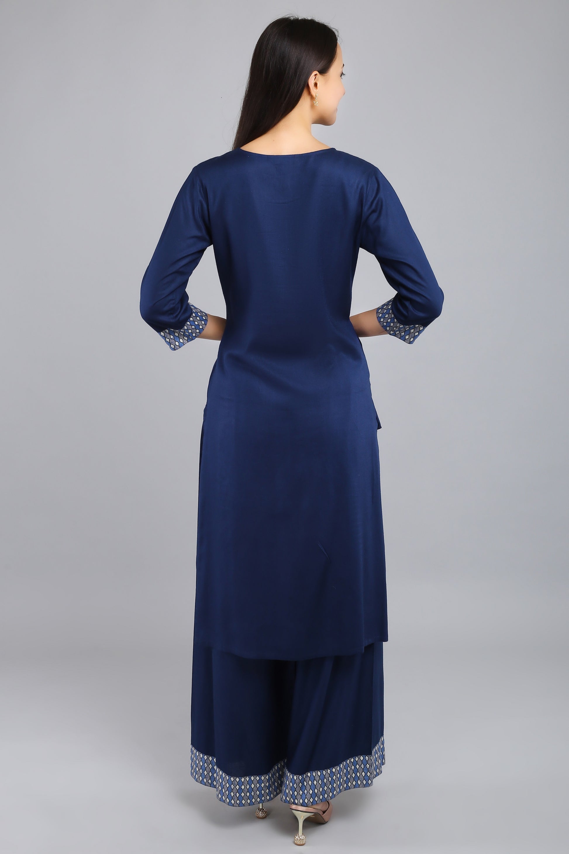 VAPPS Rayon Kurta and Palazzo Set - Navy Blue