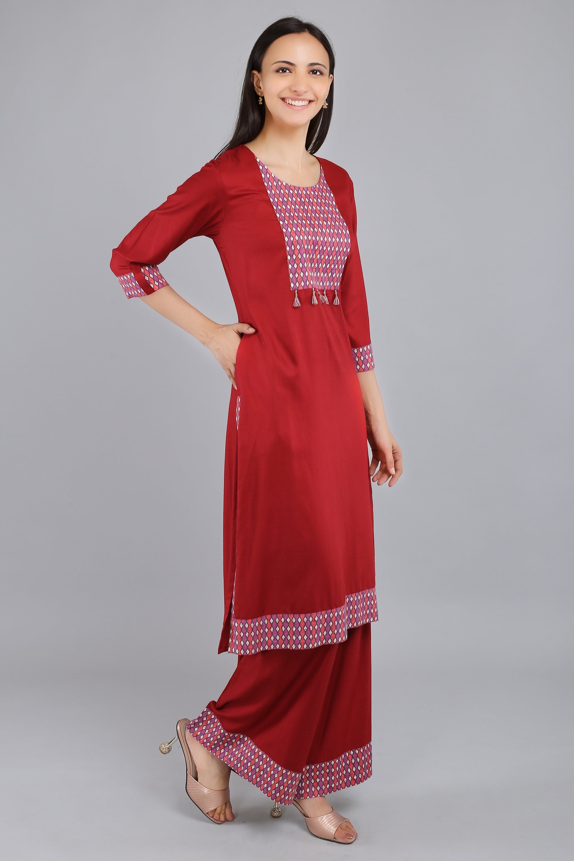 VAPPS - your go-to destination for fashionable and trendy women's clothing! Our latest addition to our collection is the Rayon Kurta with Palazzo, perfect for any occasion.
