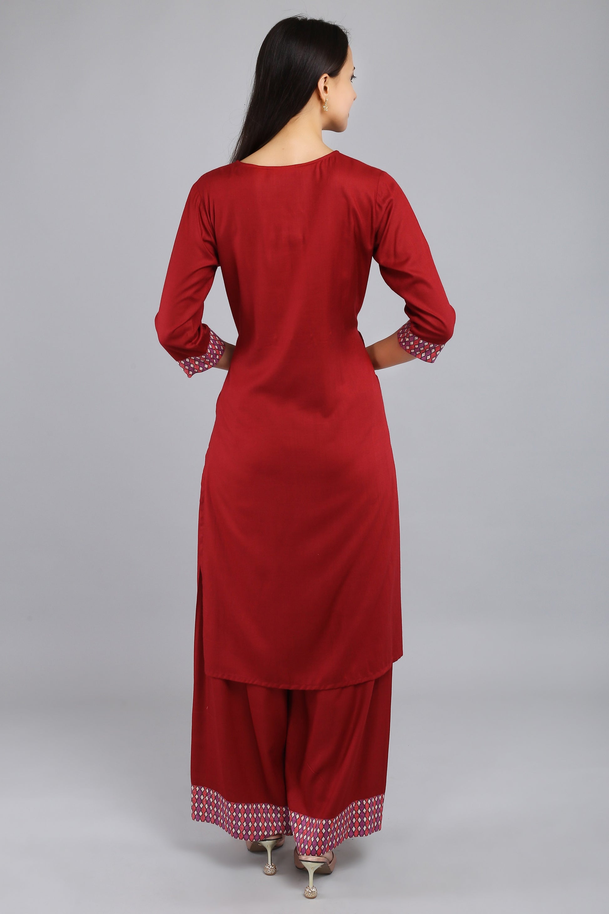 VAPPS Rayon Kurta and Palazzo Set - Red