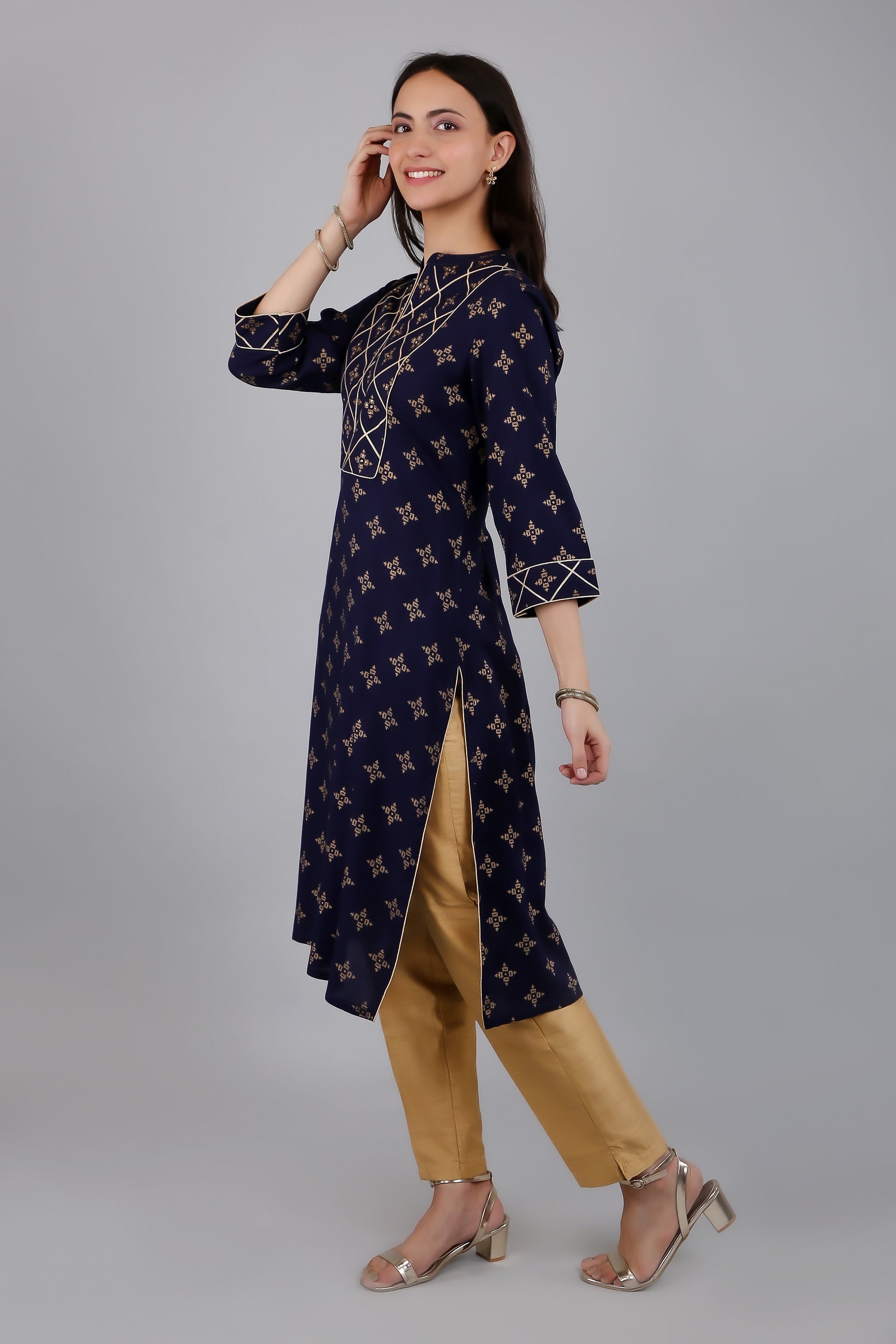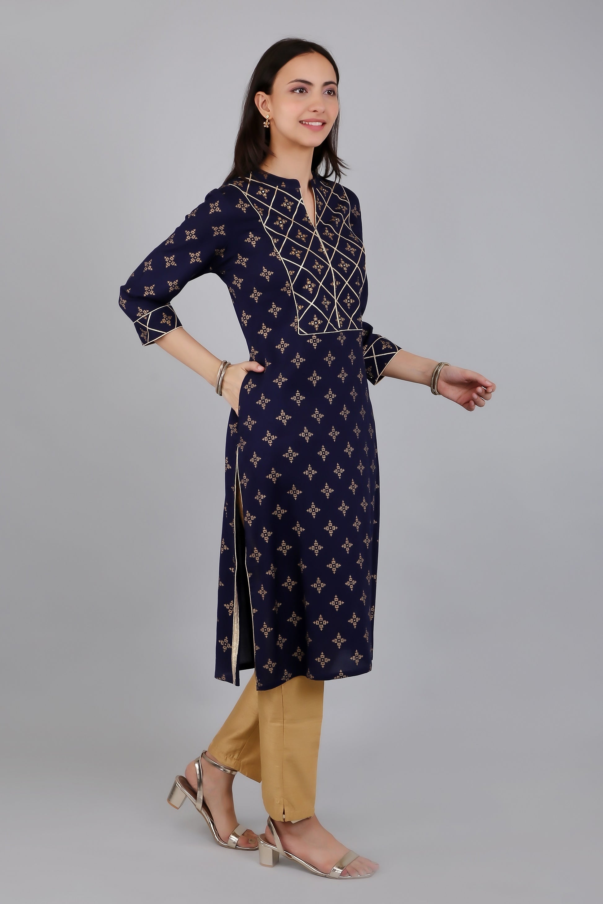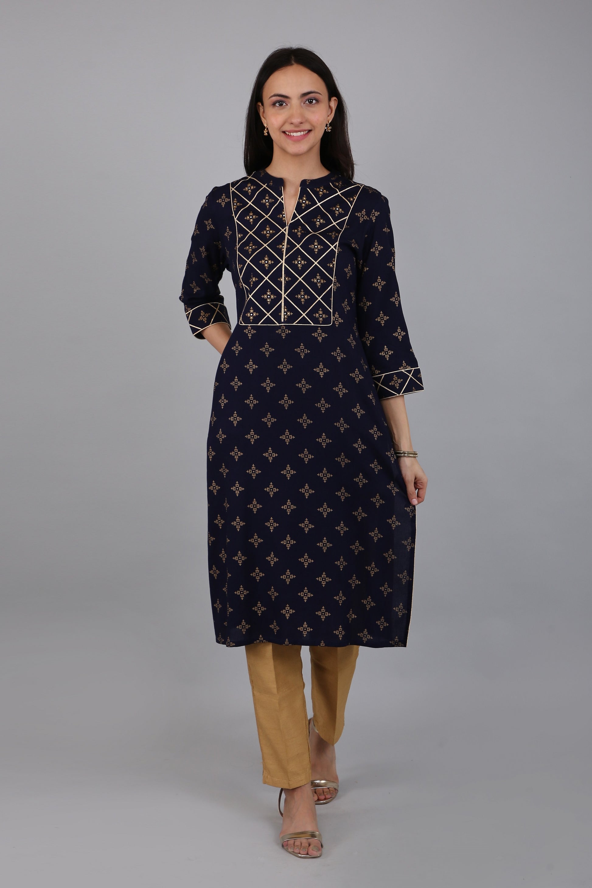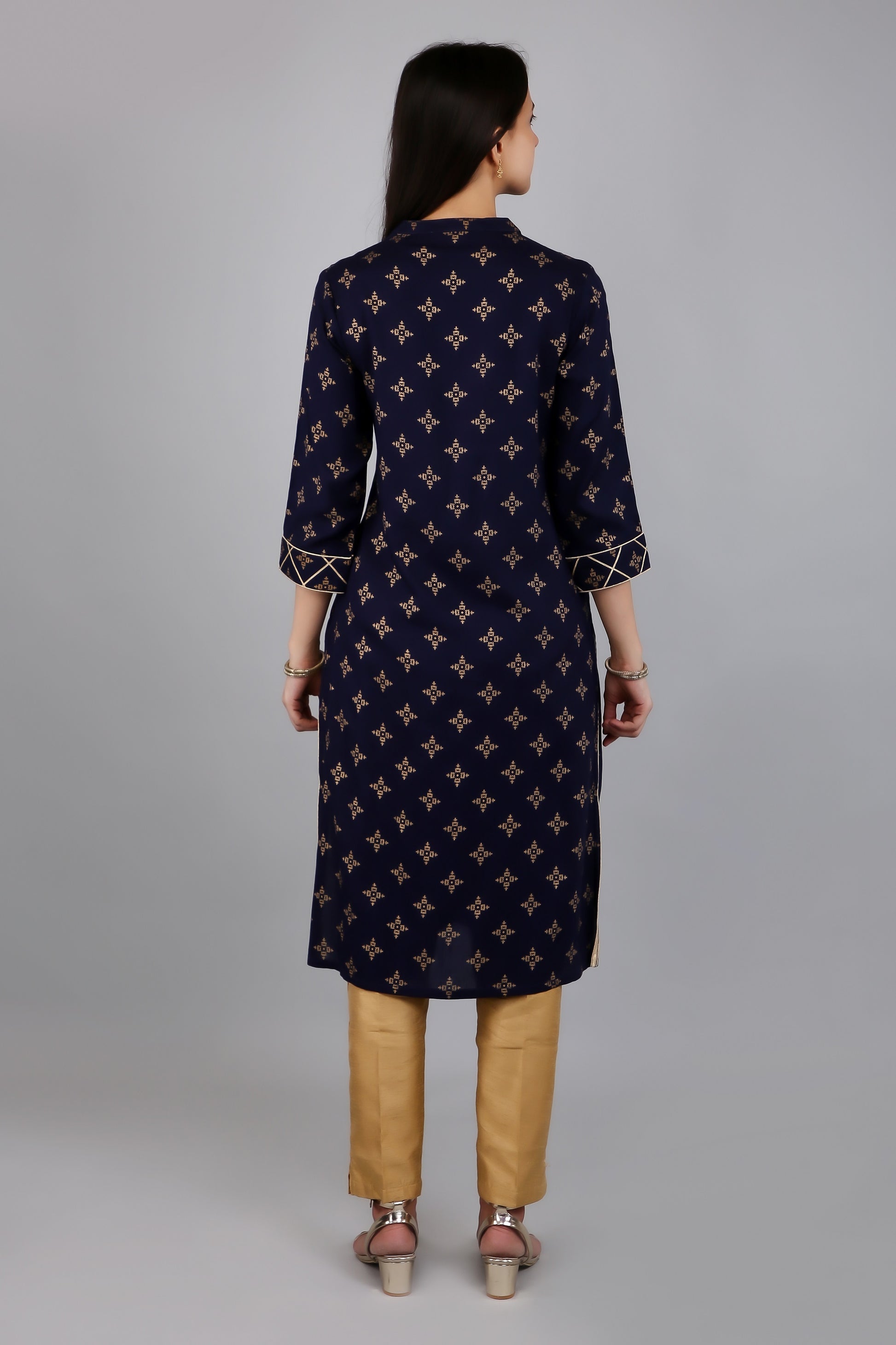 VAPPS Rayon Printed A Line Kurta for Women and Girls - Navy Blue