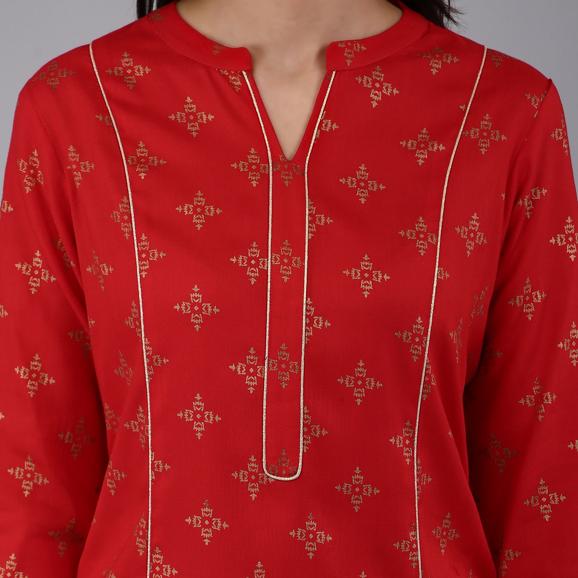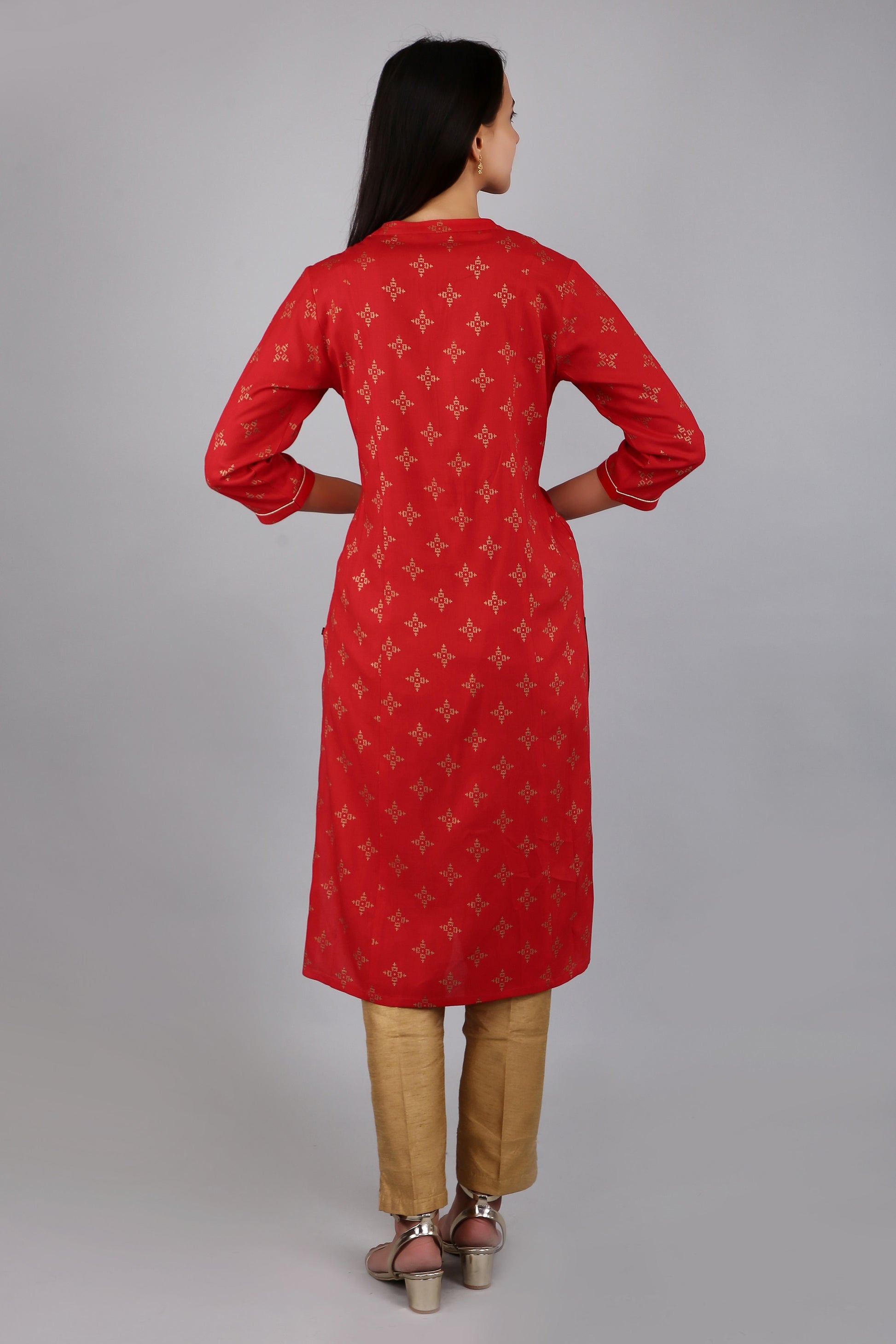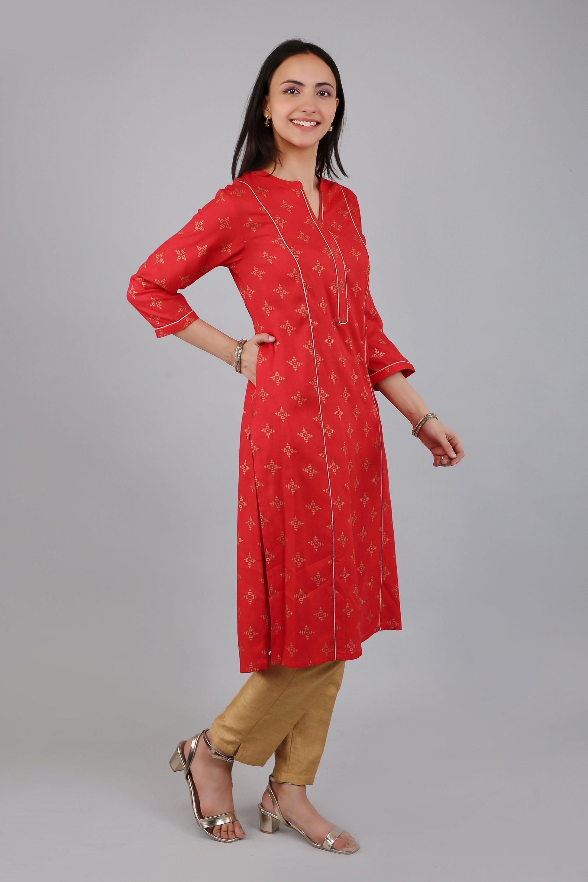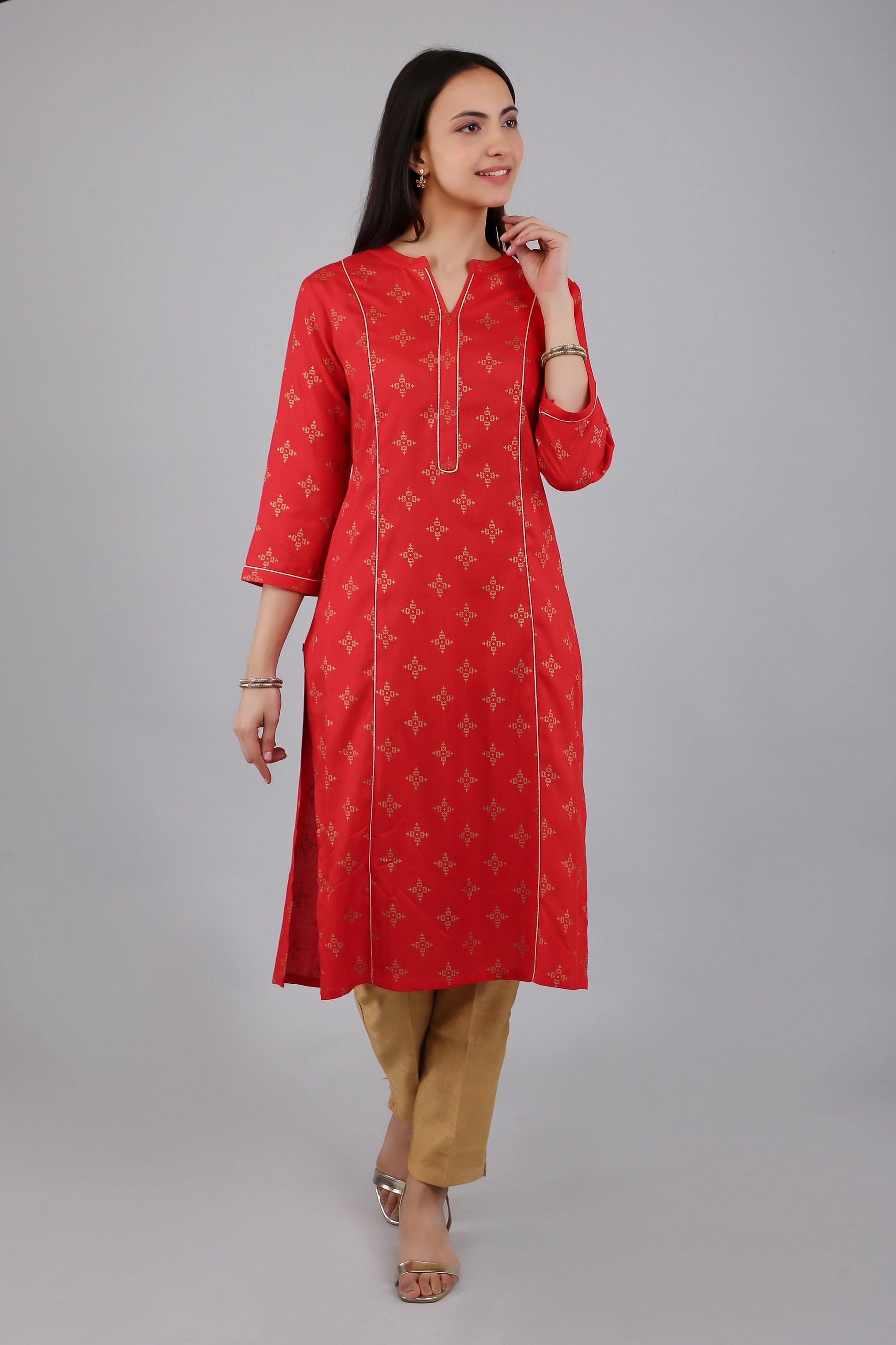 VAPPS Rayon Printed A Line Kurta for Women and Girls -Red
