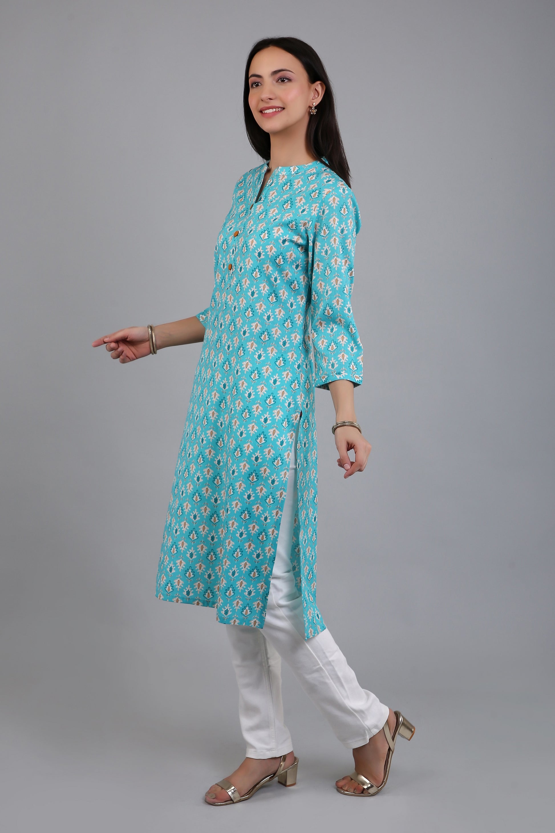 Overall, this printed kurta is a must-have in any fashion-conscious woman's wardrobe. With its beautiful print, comfortable fit, and high-quality fabric, it's sure to become a favorite for years to come.