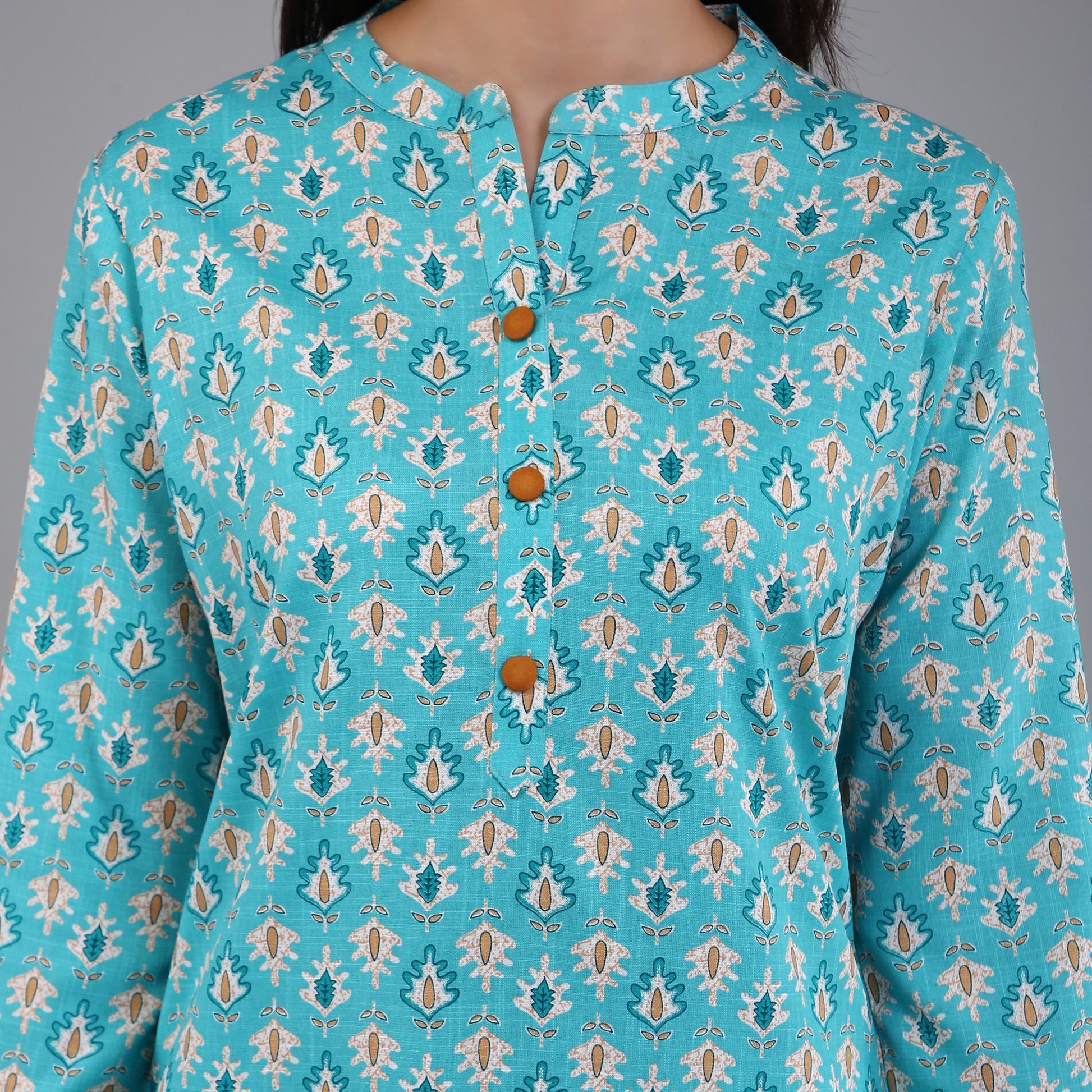VAPPS Women's Cotton Printed A Line Kurta for Women and Girls - Blue