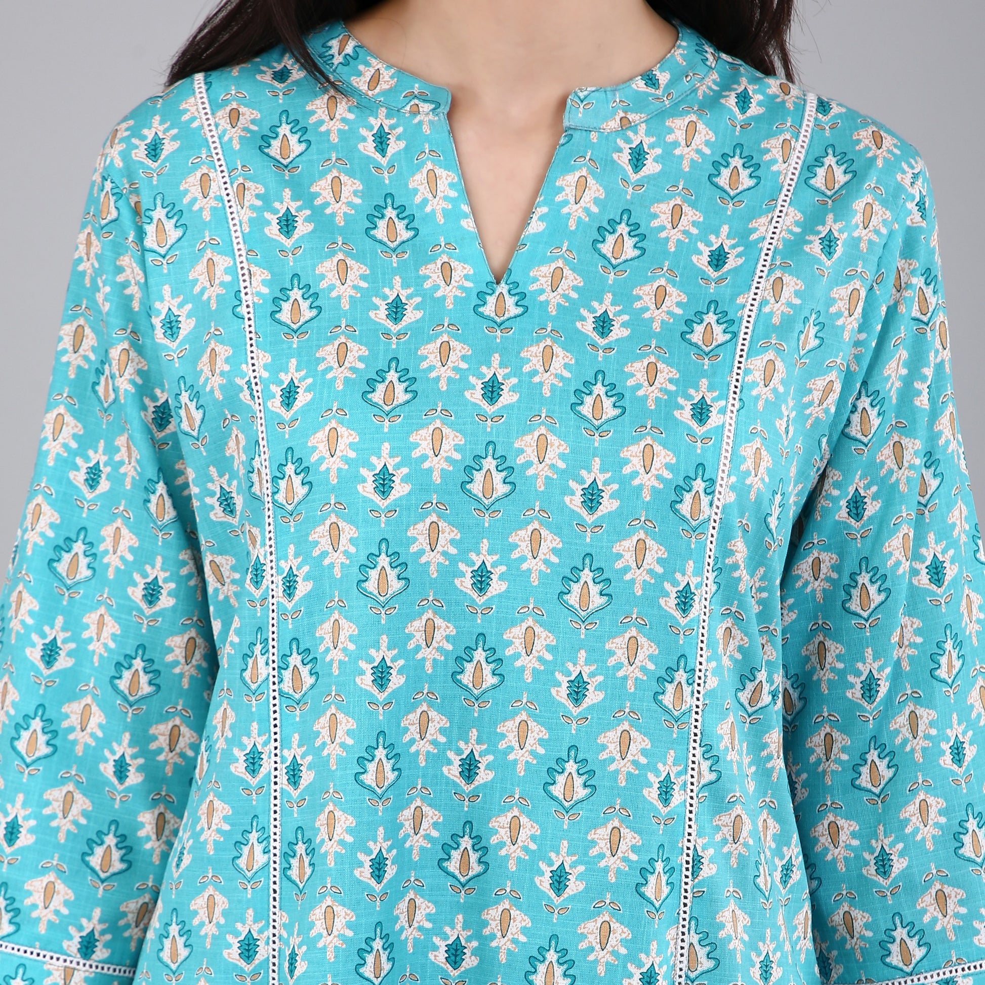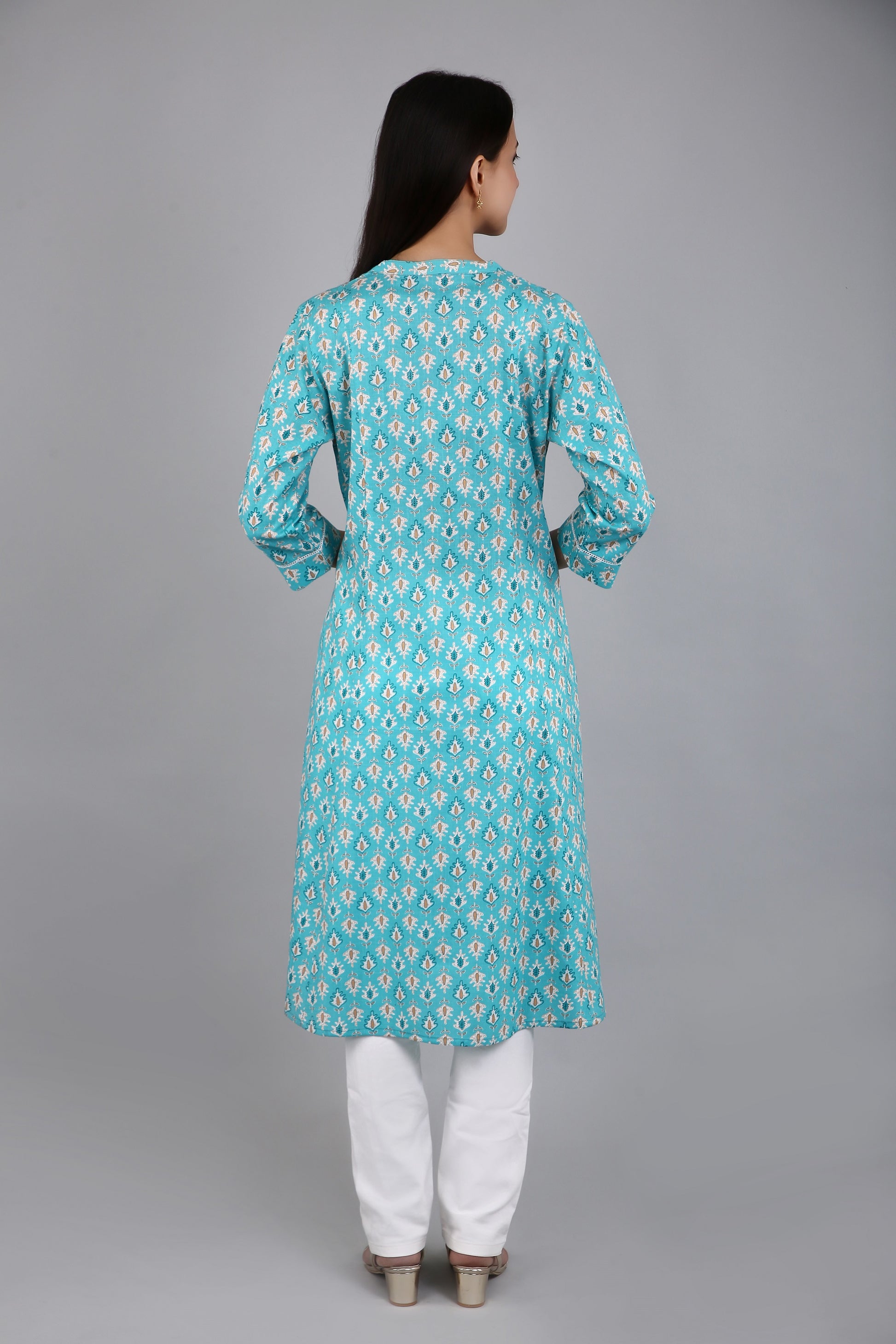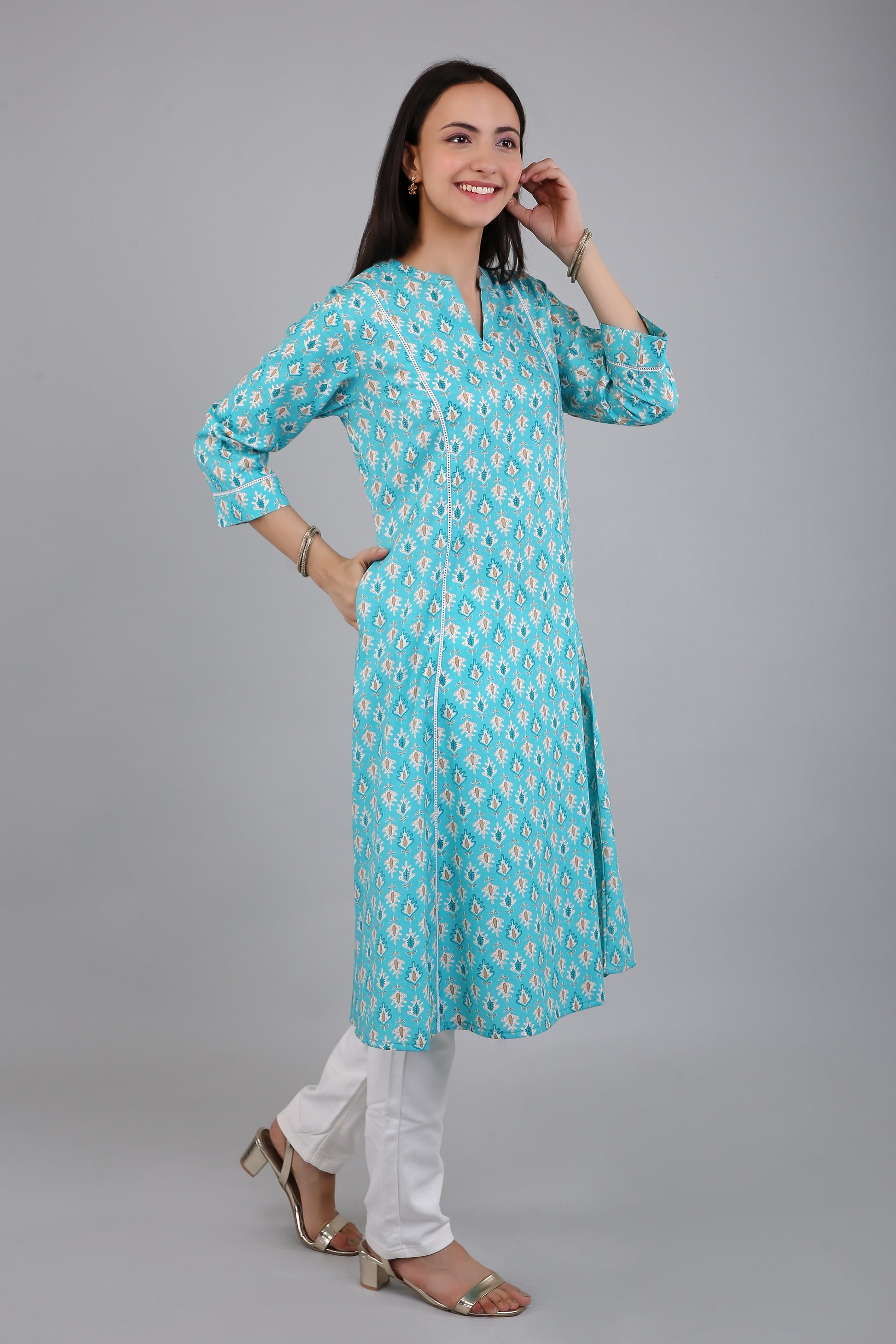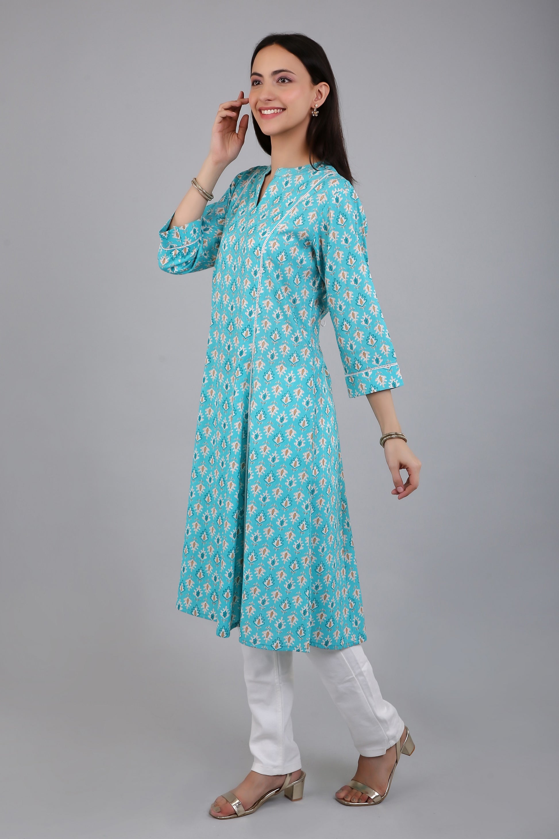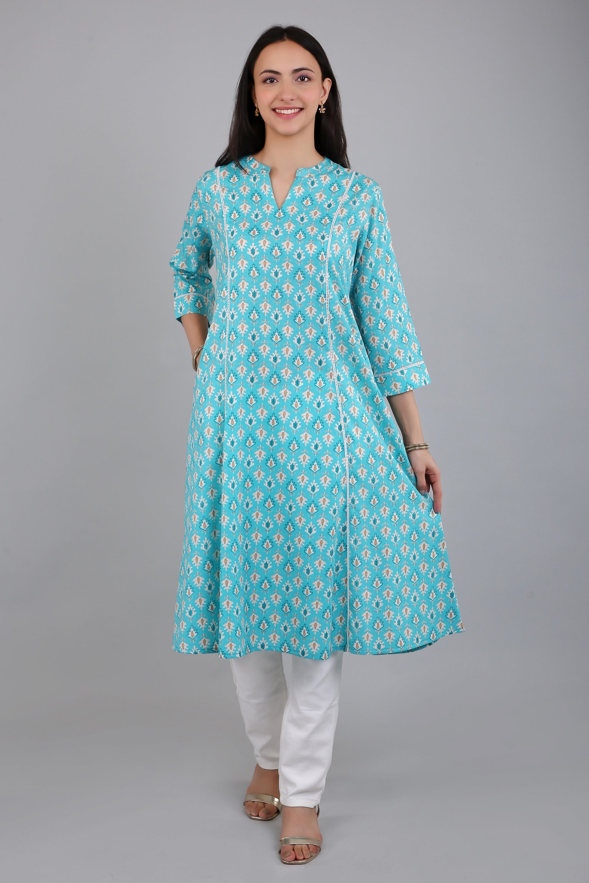 VAPPS Women's Cotton Printed A Line Kurta for Women and Girls -S1 - Blue