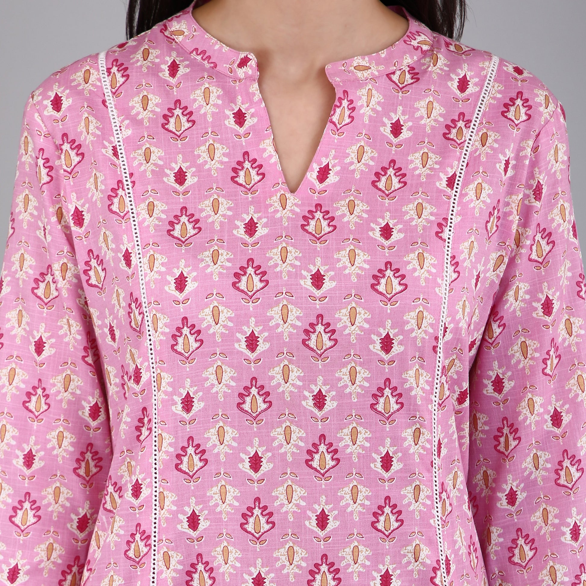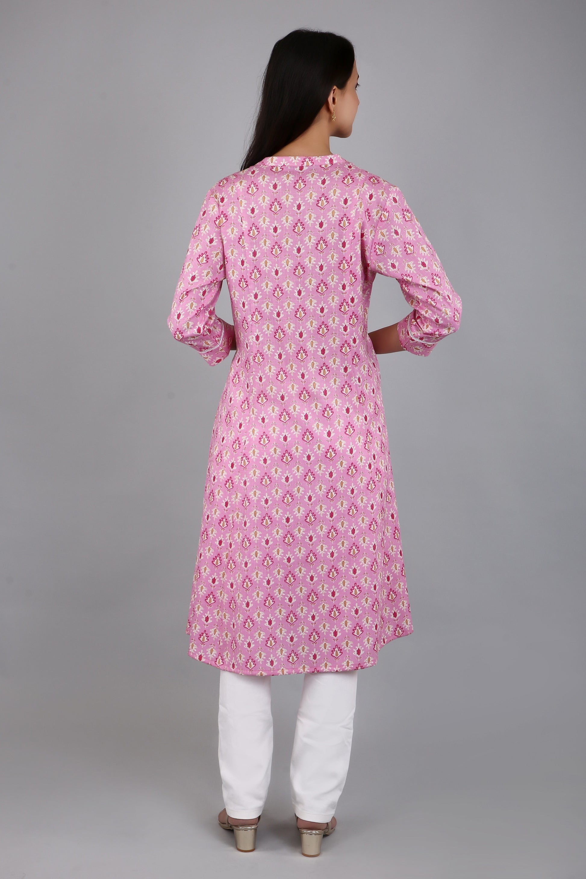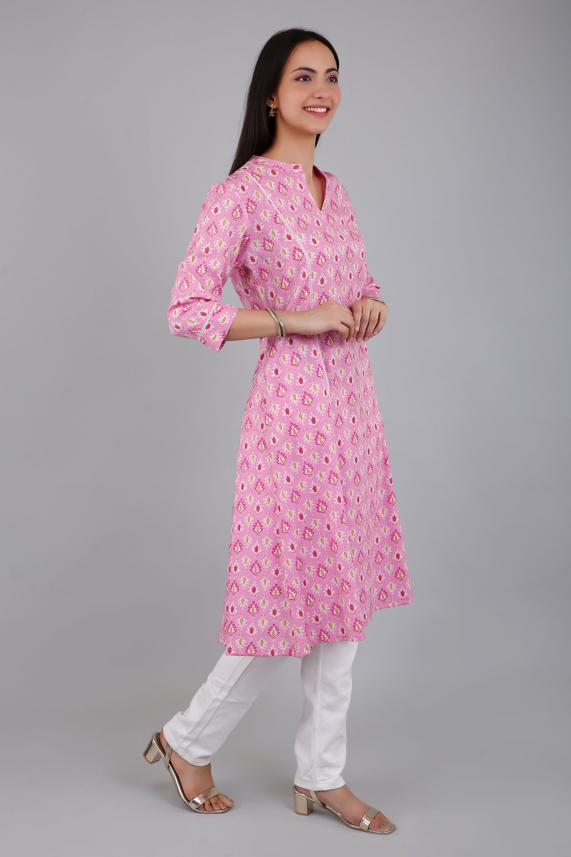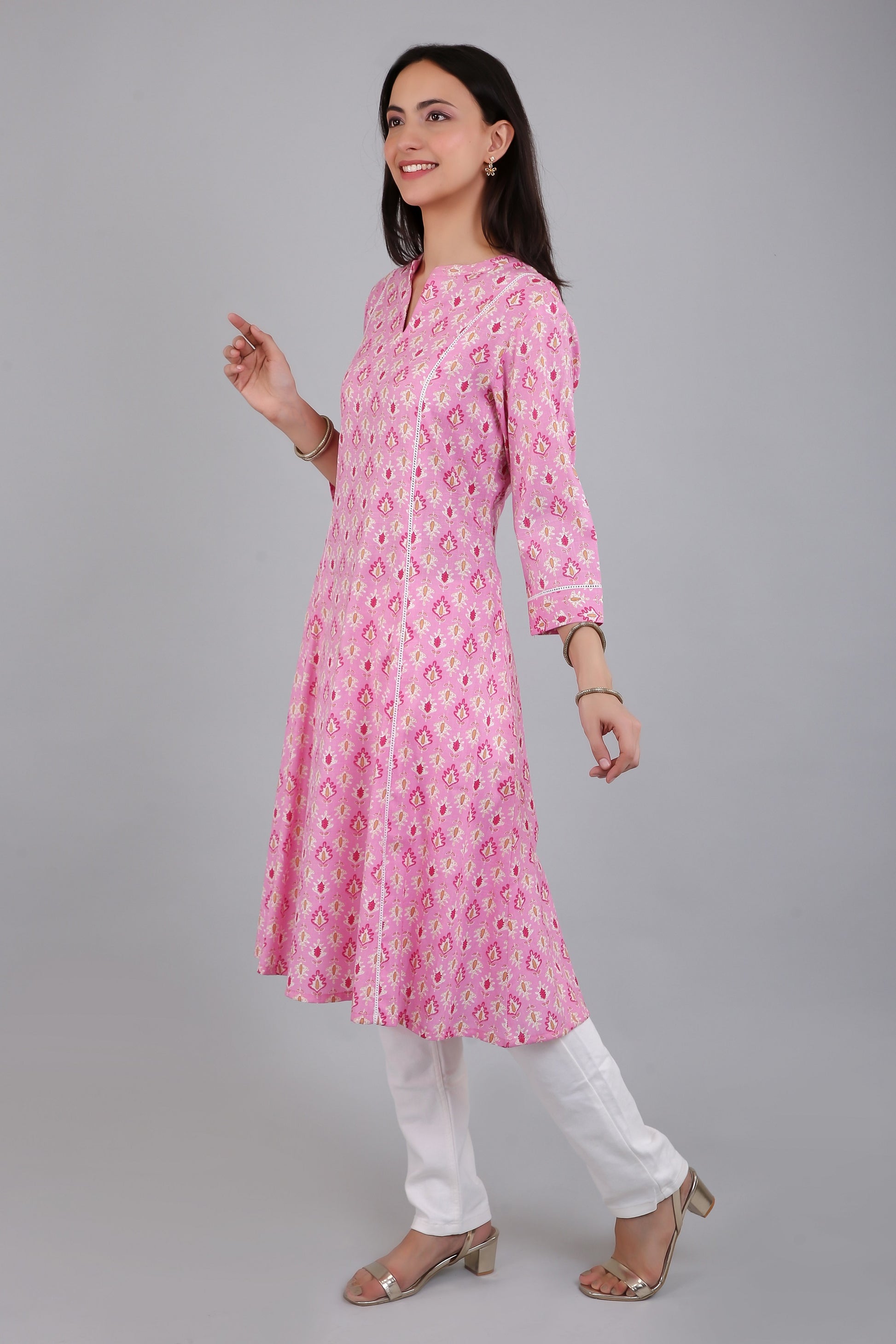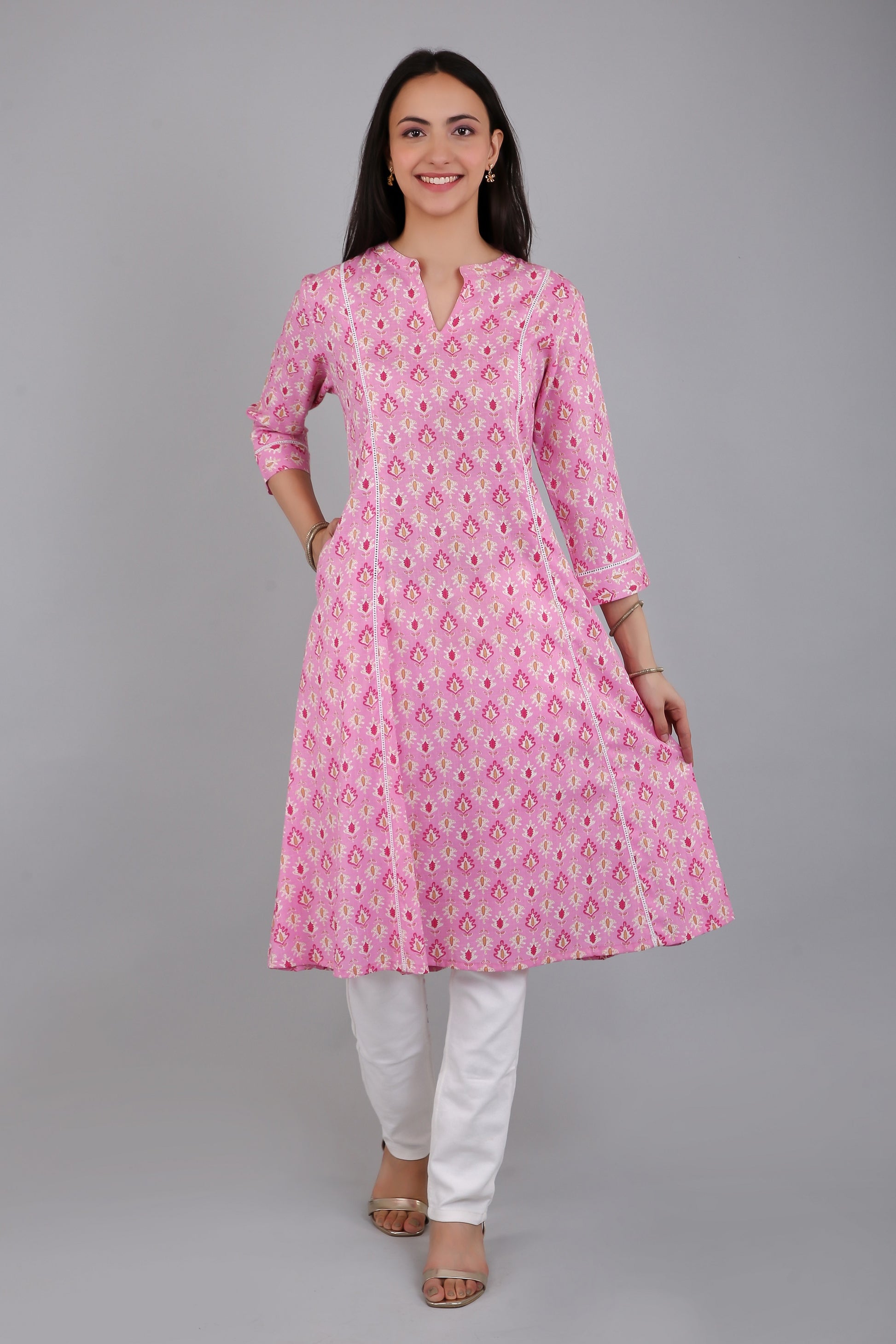 VAPPS Women's Cotton Printed A Line Kurta for Women and Girls -S1 - Pink