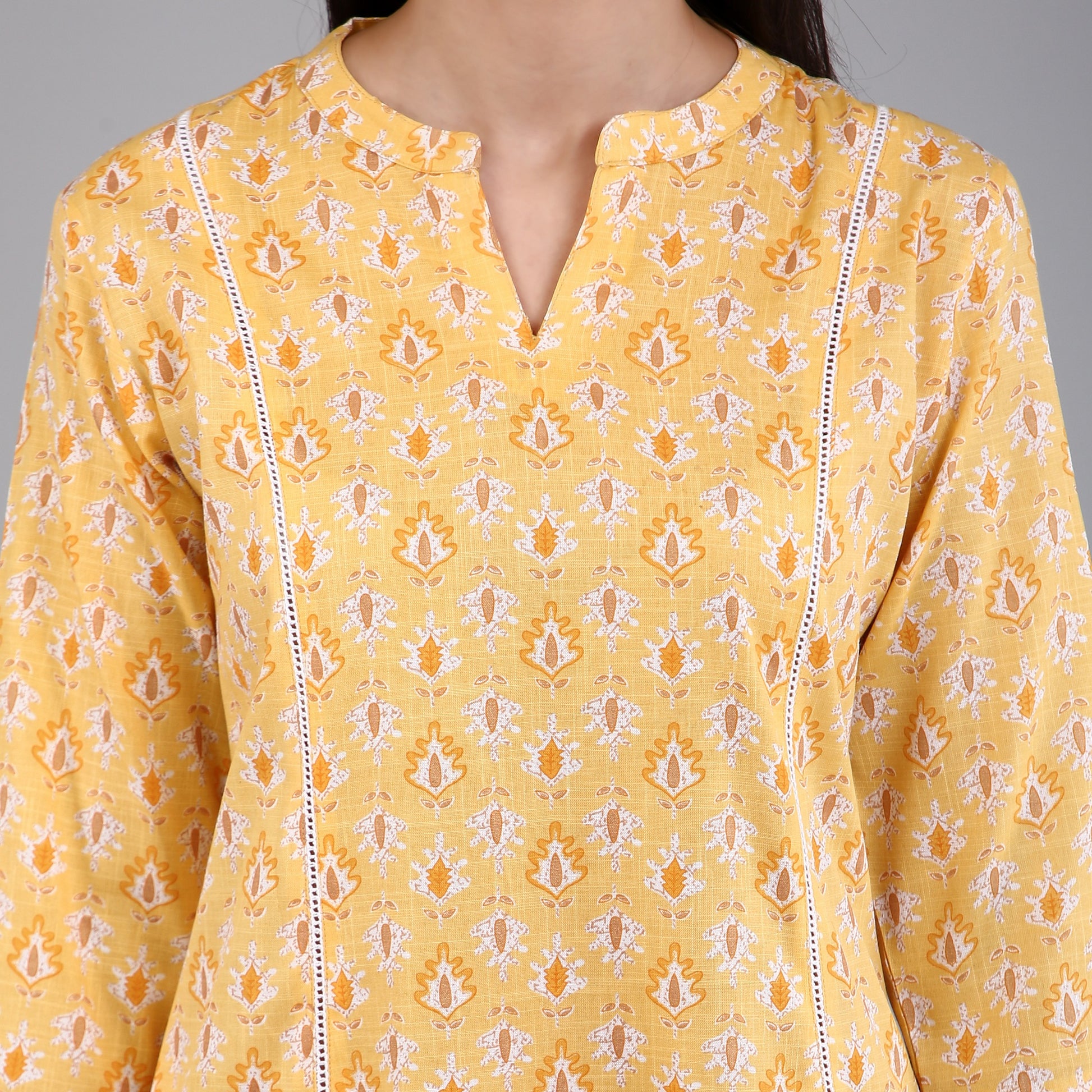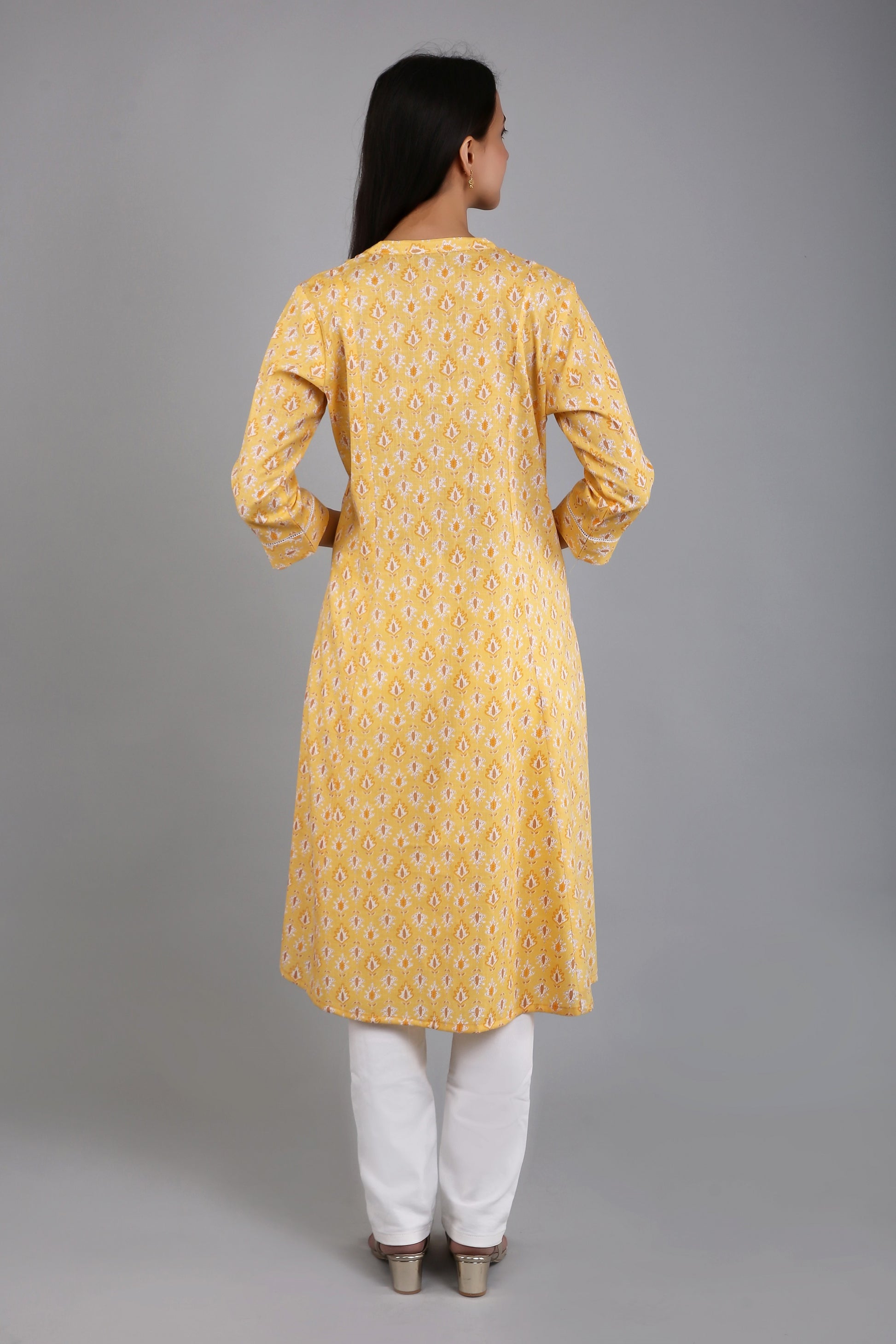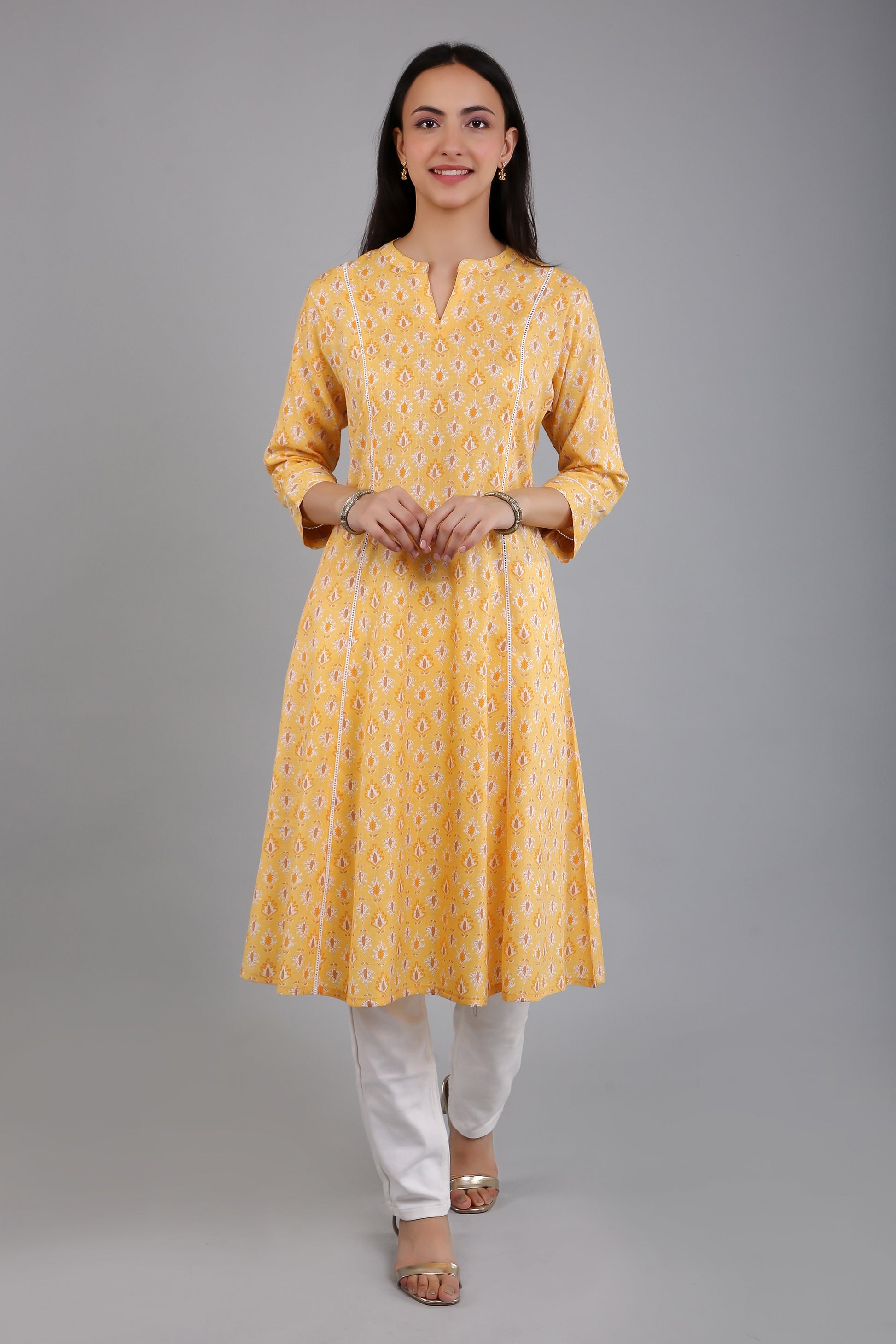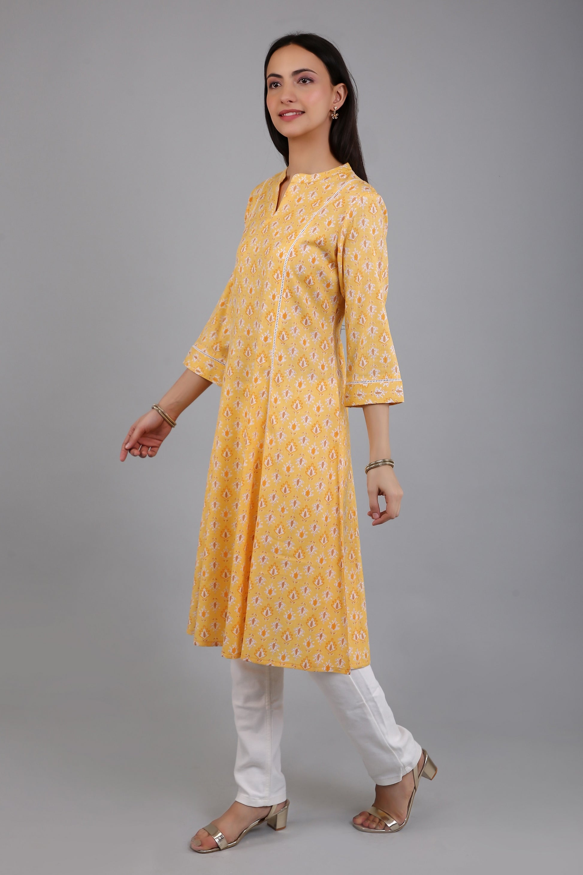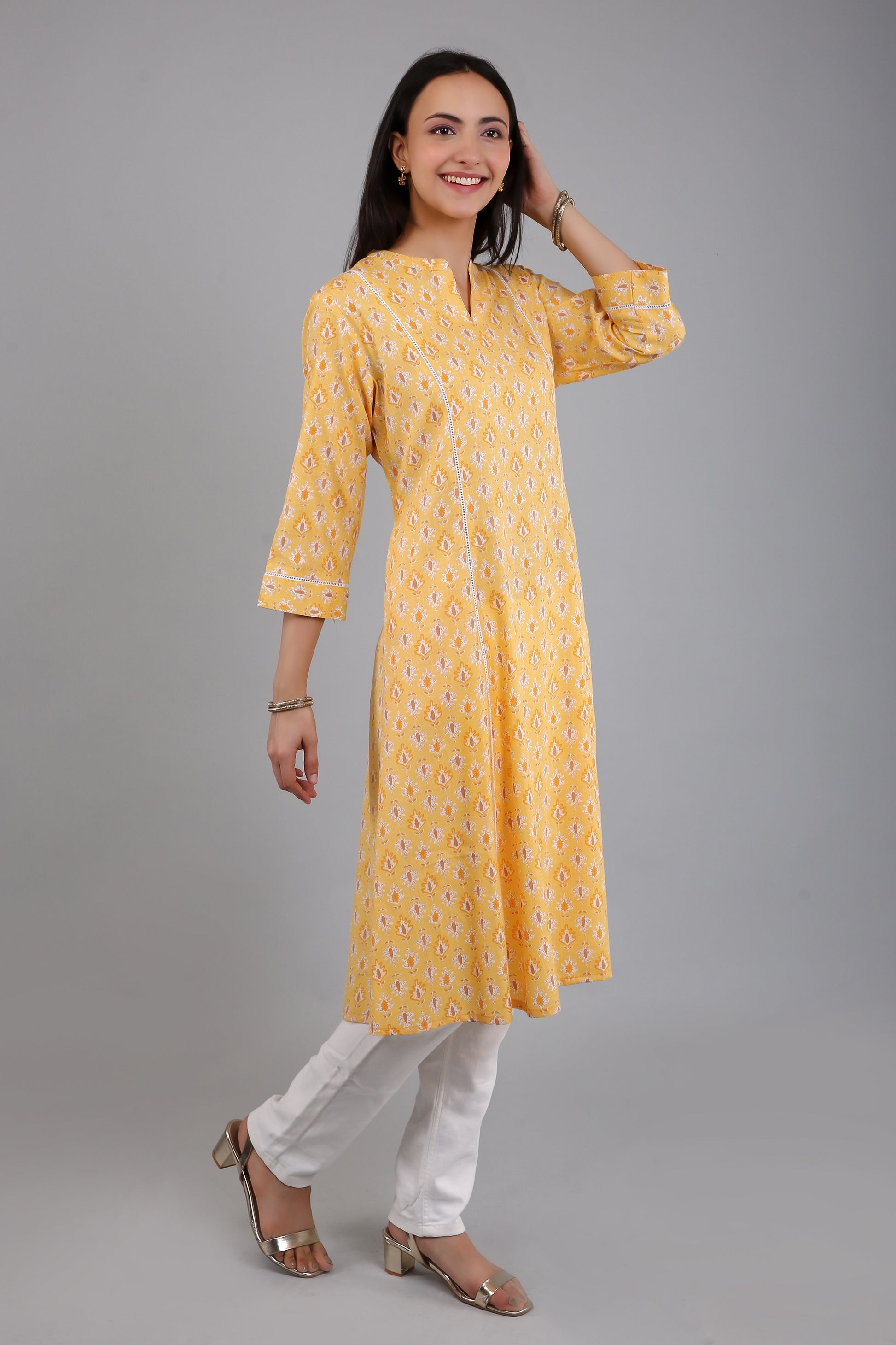 VAPPS Women's Cotton Printed A Line Kurta for Women and Girls -S1 - Yellow