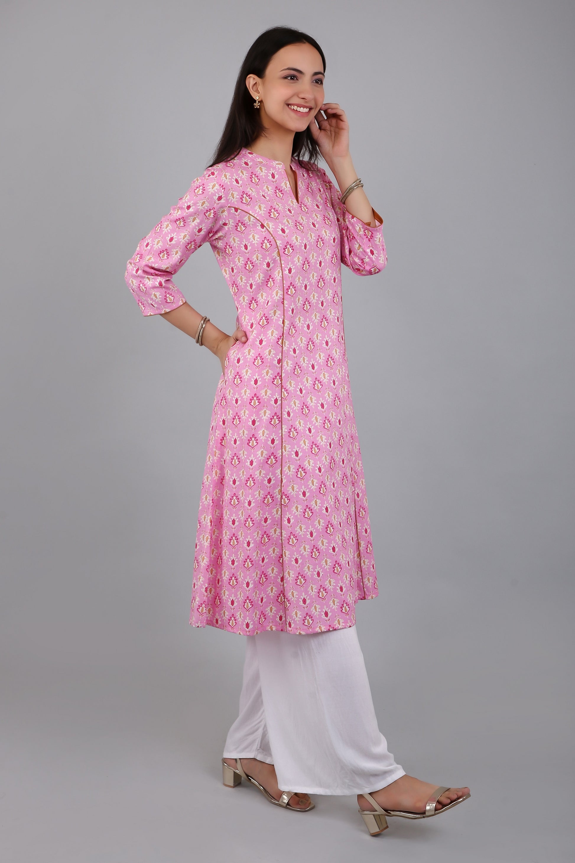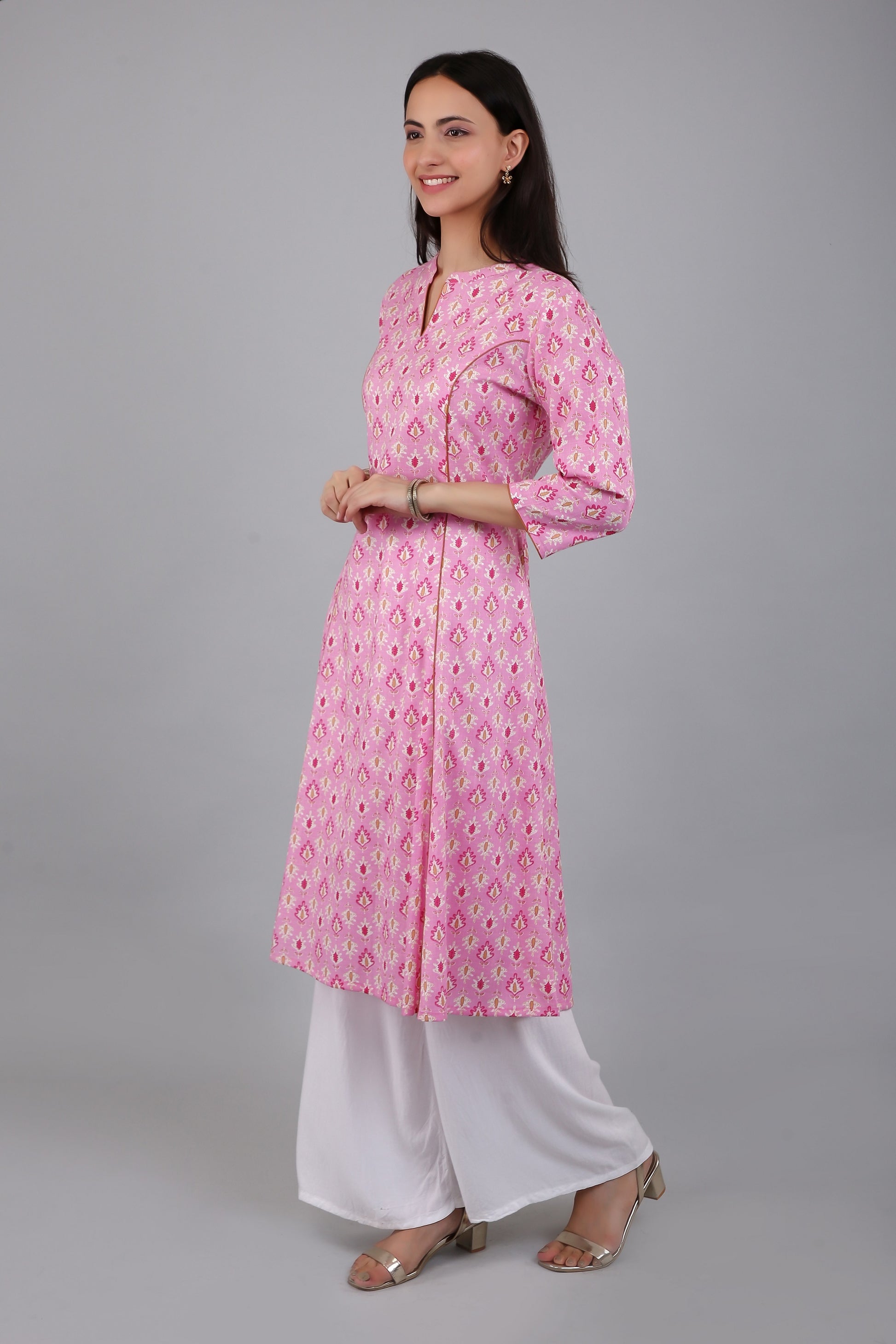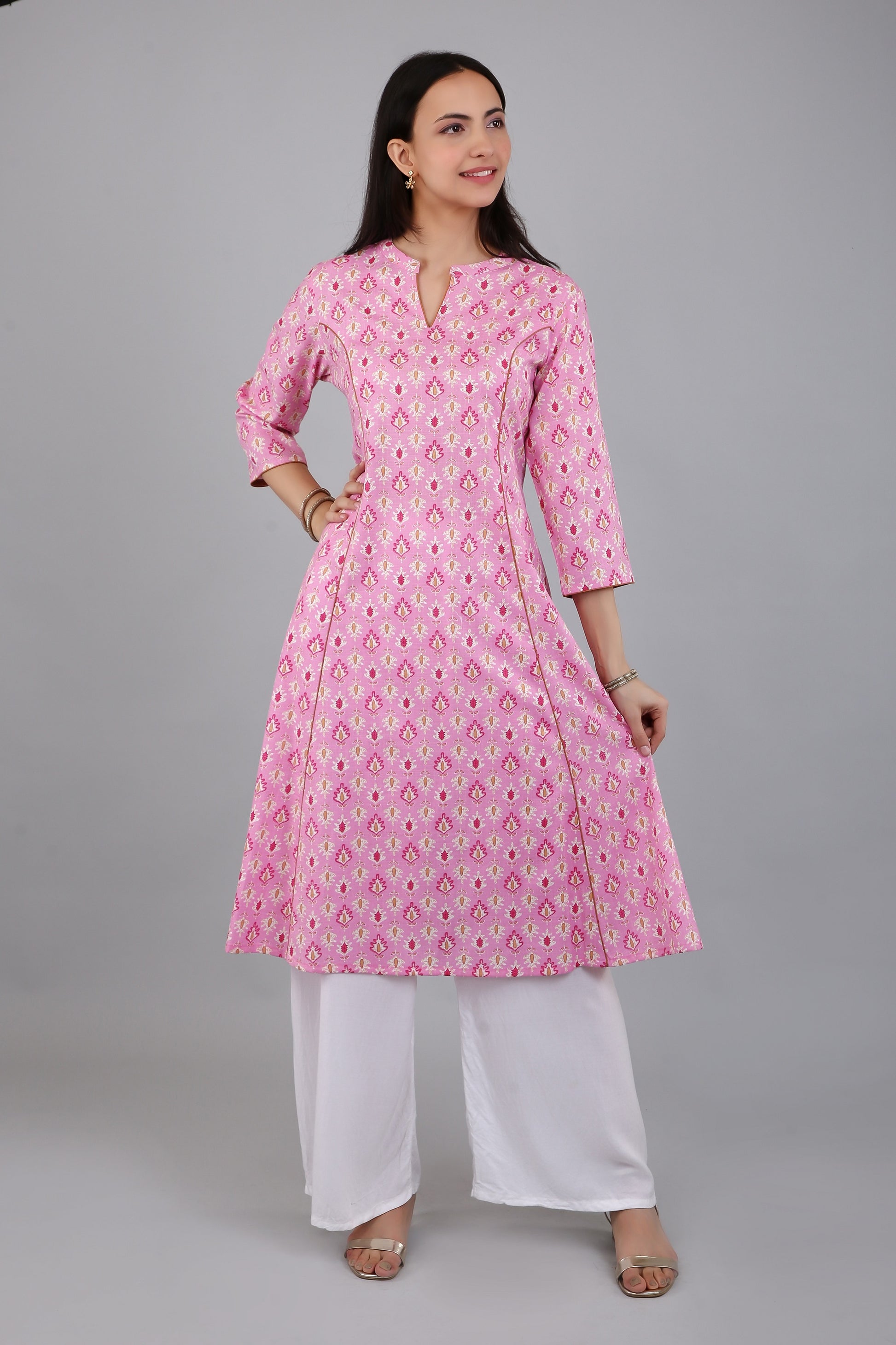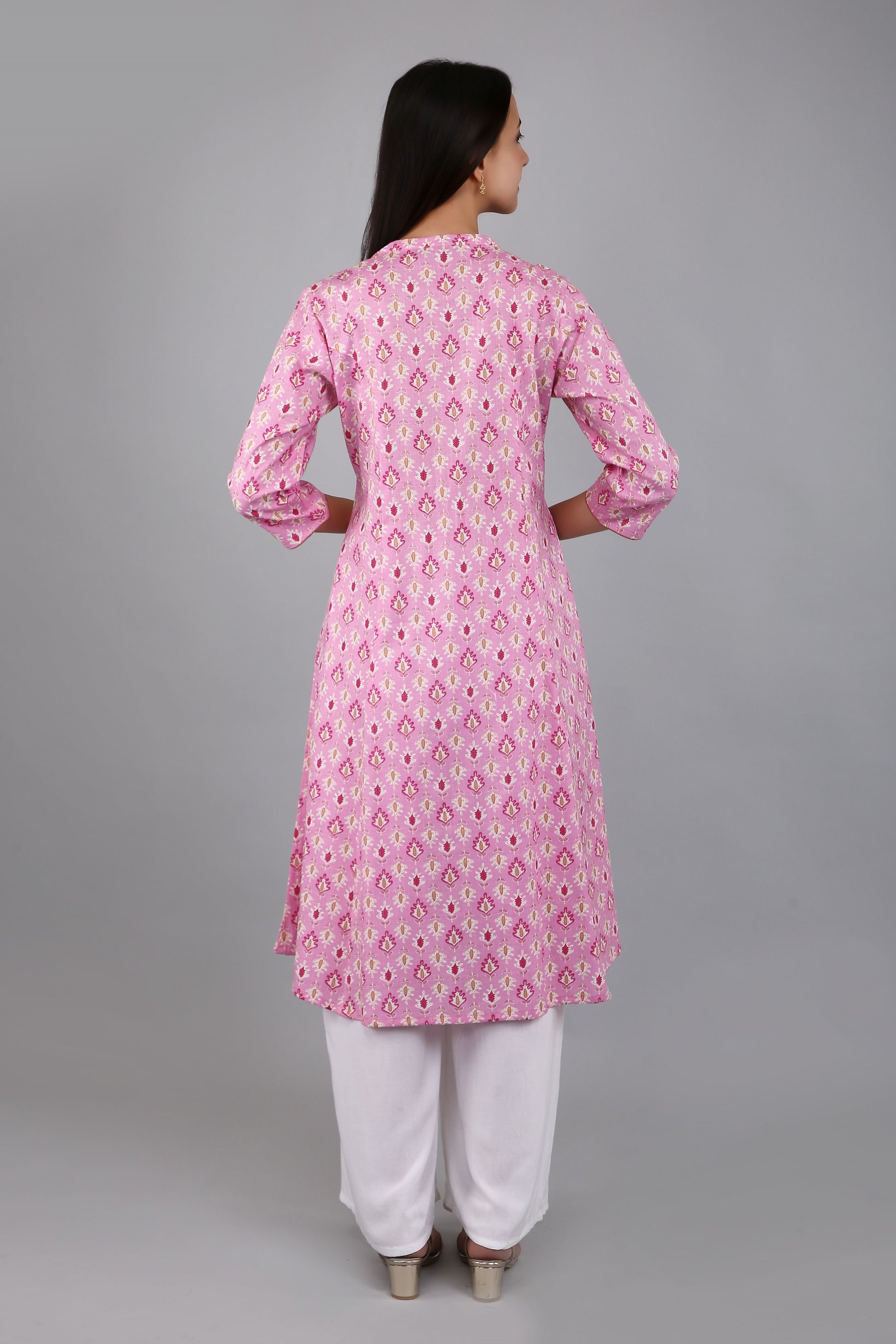 VAPPS Women's Cotton Printed A Line Kurta for Women and Girls -S2 - Pink