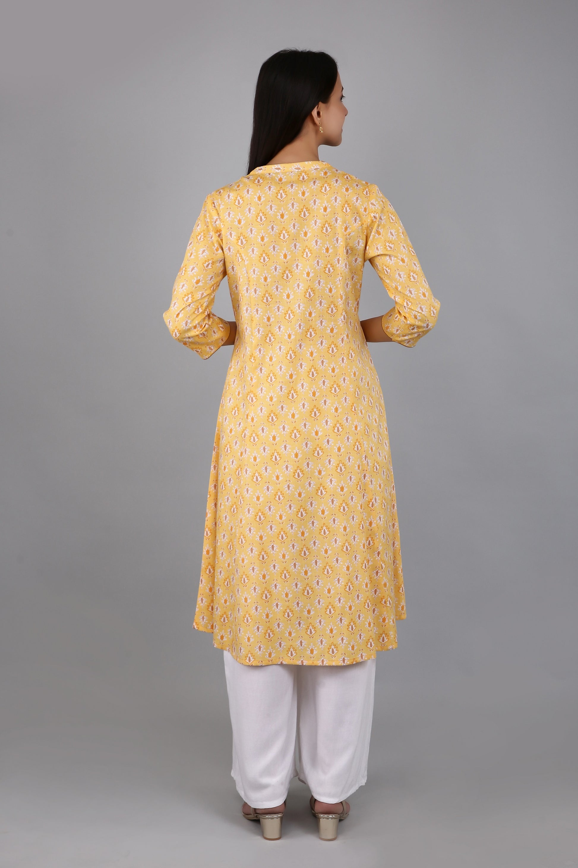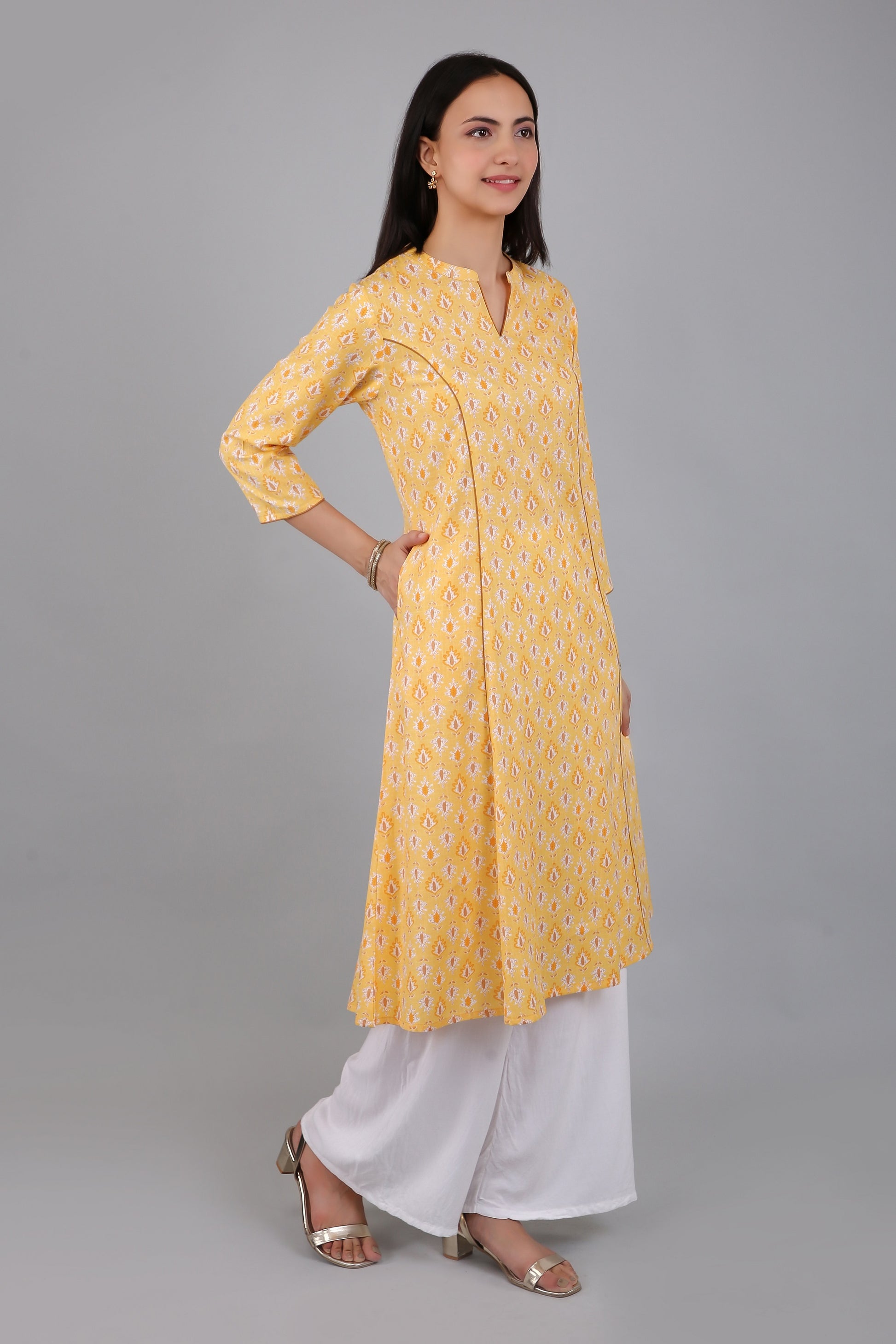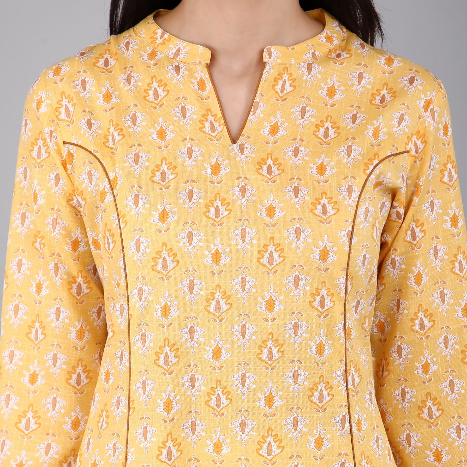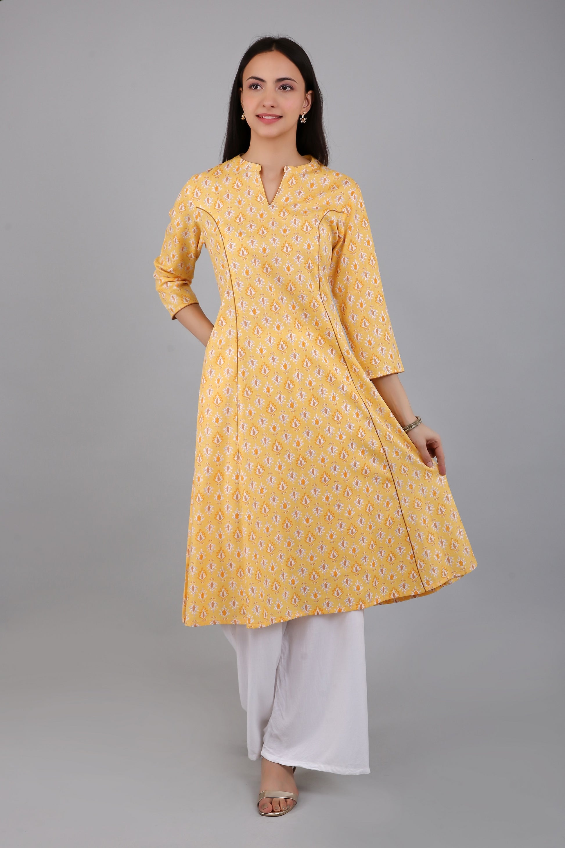 VAPPS Women's Cotton Printed A Line Kurta for Women and Girls -S2 - Yellow