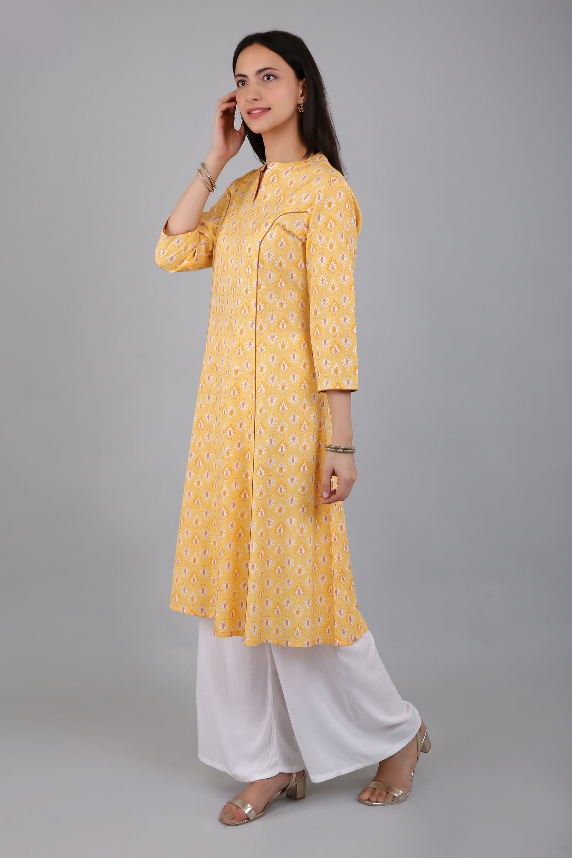 The A-line silhouette of the kurta flares out gracefully from the waist, providing a comfortable fit for all body types. The side slits add a touch of elegance and sophistication to the kurta, while also allowing for ease of movement.
