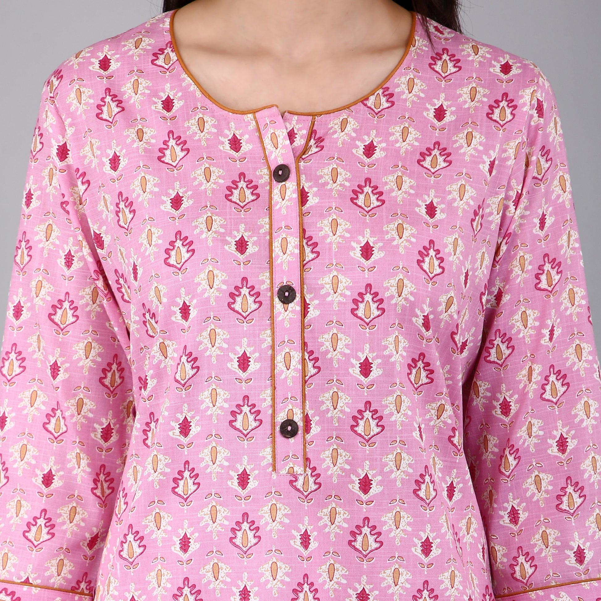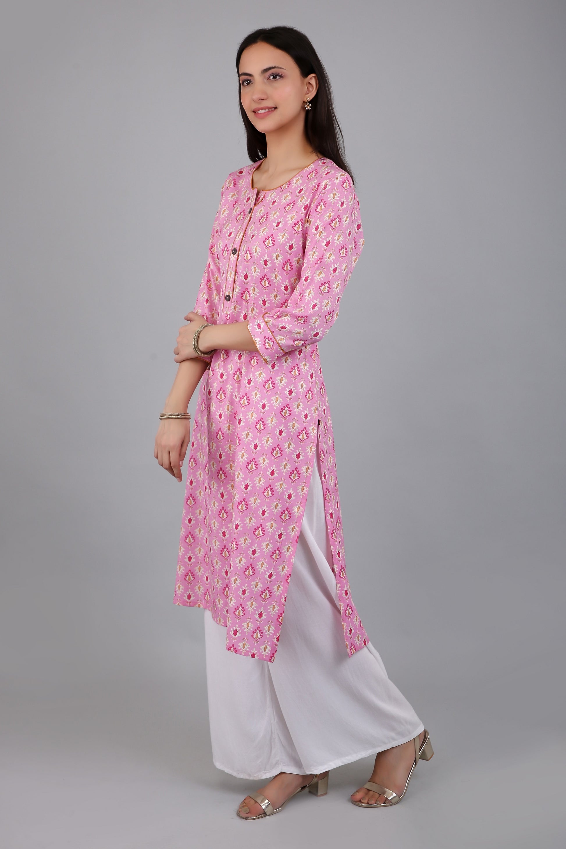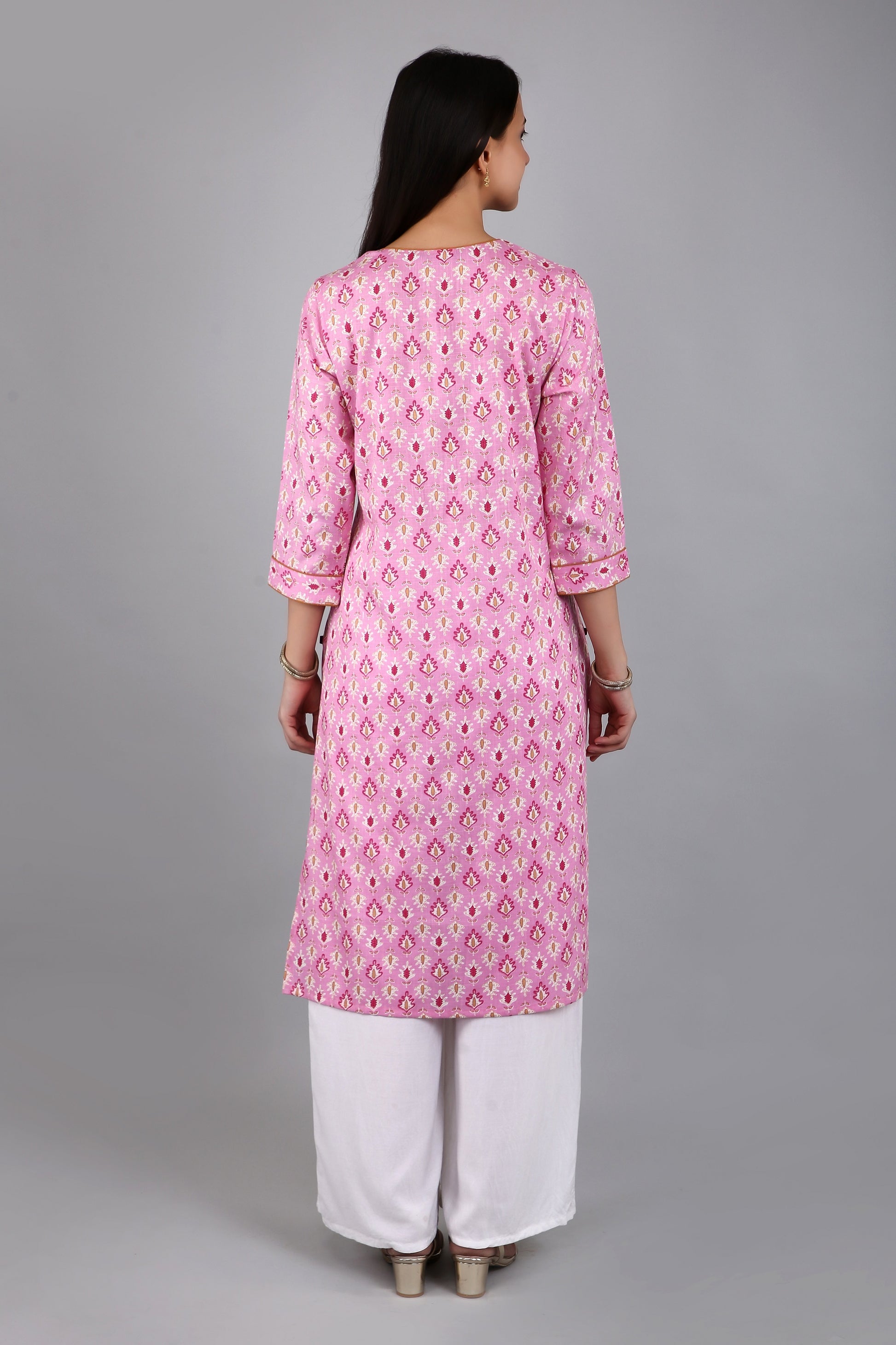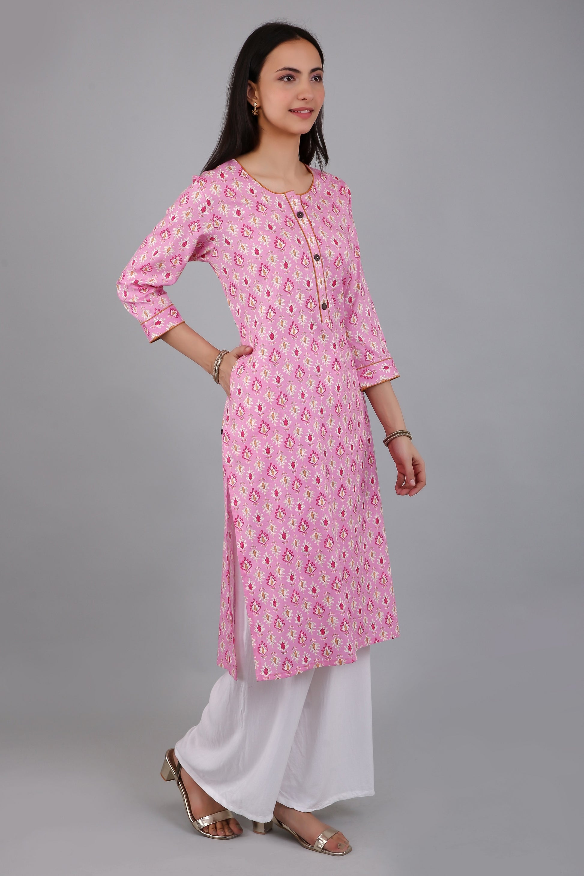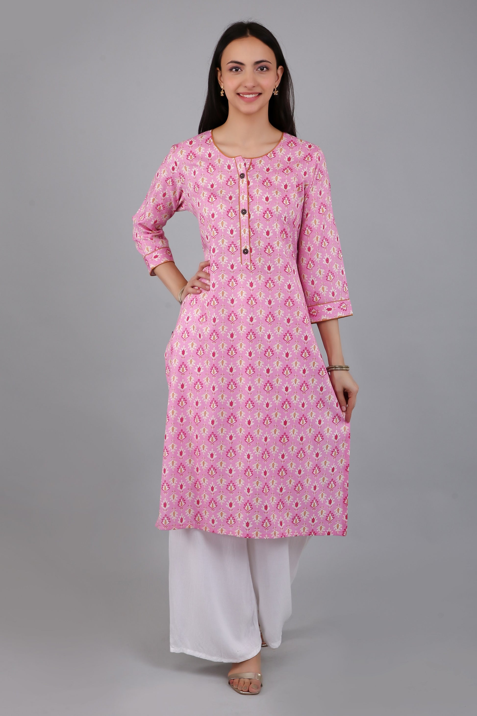VAPPS Women's Cotton Printed A Line Kurta for Women and Girls -S3 - Pink